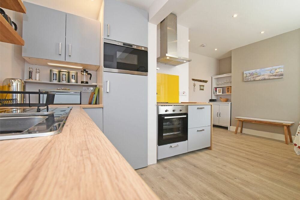 Accomodation Details Three bedrooms: 1 x king-size, 1 x twin, 1 x bunk. Bathroom with bath, shower over, basin, heated towel rail and WC. Cloakroom with WC. Kitchen/diner. Sitting room with woodburning stove.