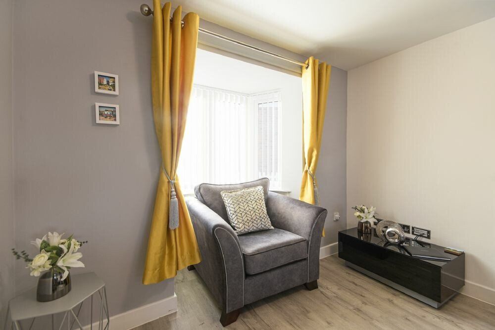 Separate snug area with sofa, arm chair and Smart TV.