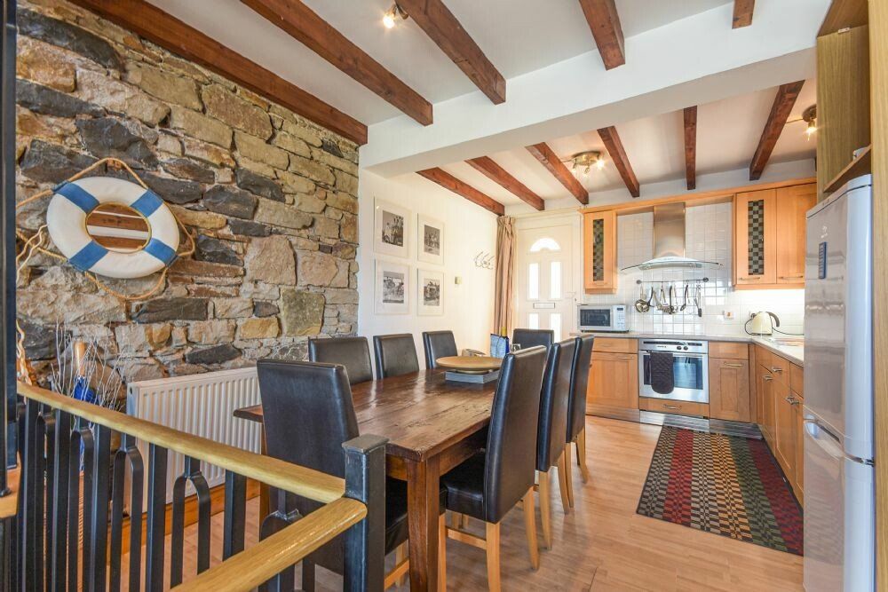 Amenities Oil heating. Electric oven, ceramic hob, microwave, fridge/freezer, fridge, washing machine, tumble dryer, dishwasher. Smart TV, WiFi, pool table, games, selection of books. Fuel and power inc. in rent. Bed linen and towels inc. in rent. Highchair and travel cot available on request. On-road parking to the rear of the property. Enclosed rear patio on second floor with furniture. One well behaved dog welcome. Sorry, no smoking. Shop 0.2 miles, pub 0.3 miles. Note: Oil heating not available in games room. Note: Not suitable for those with mobility issues due to staircases