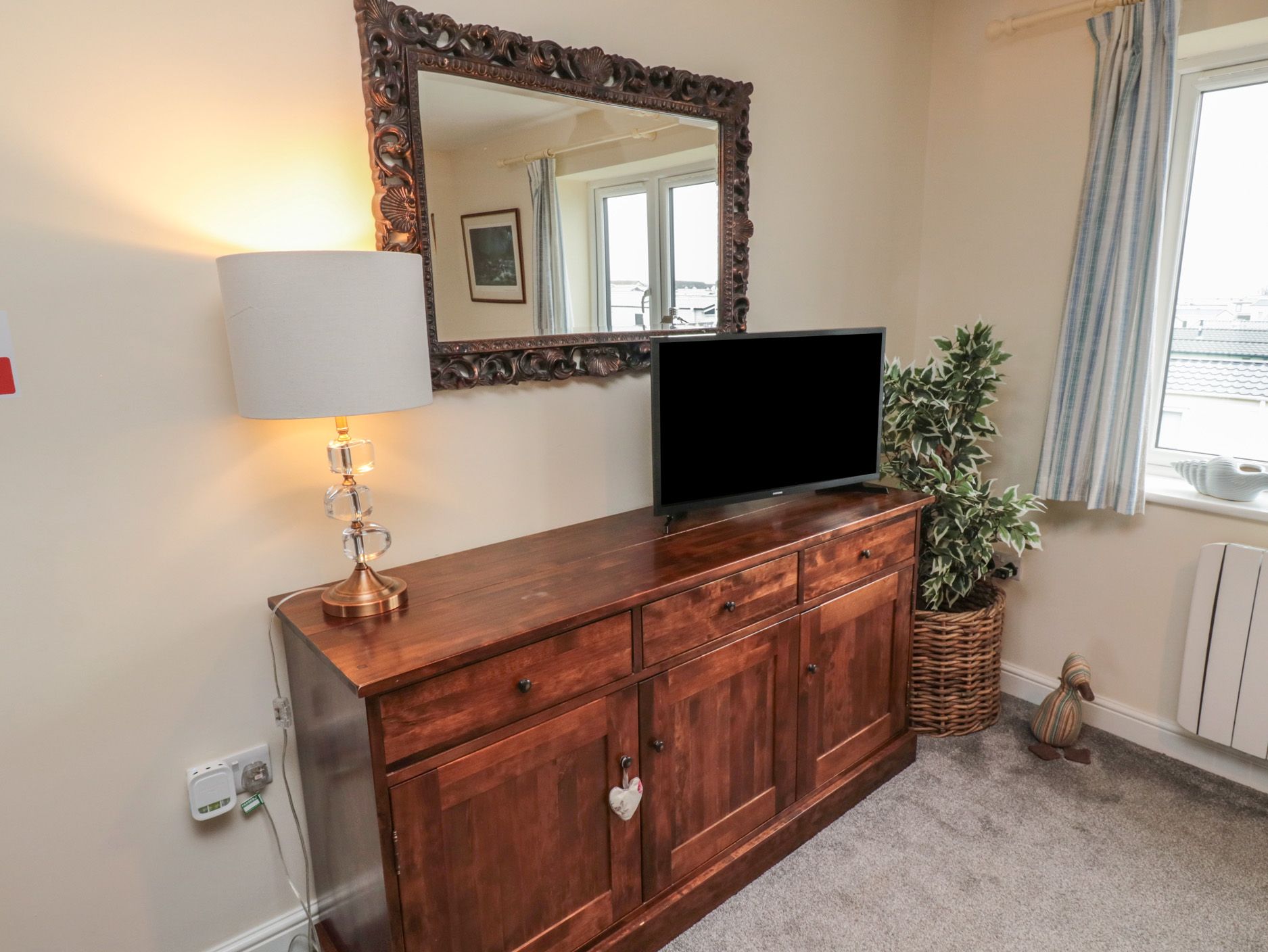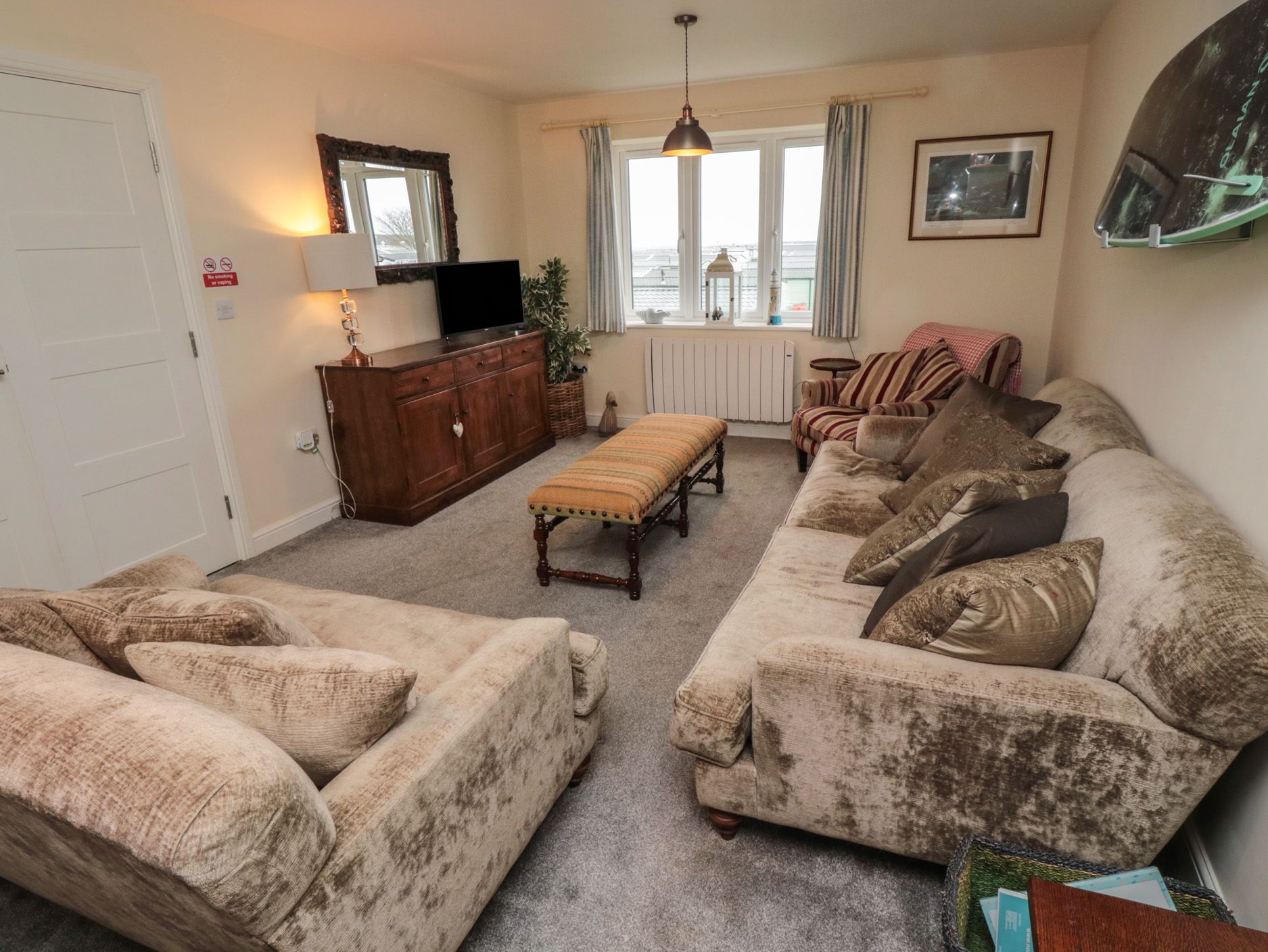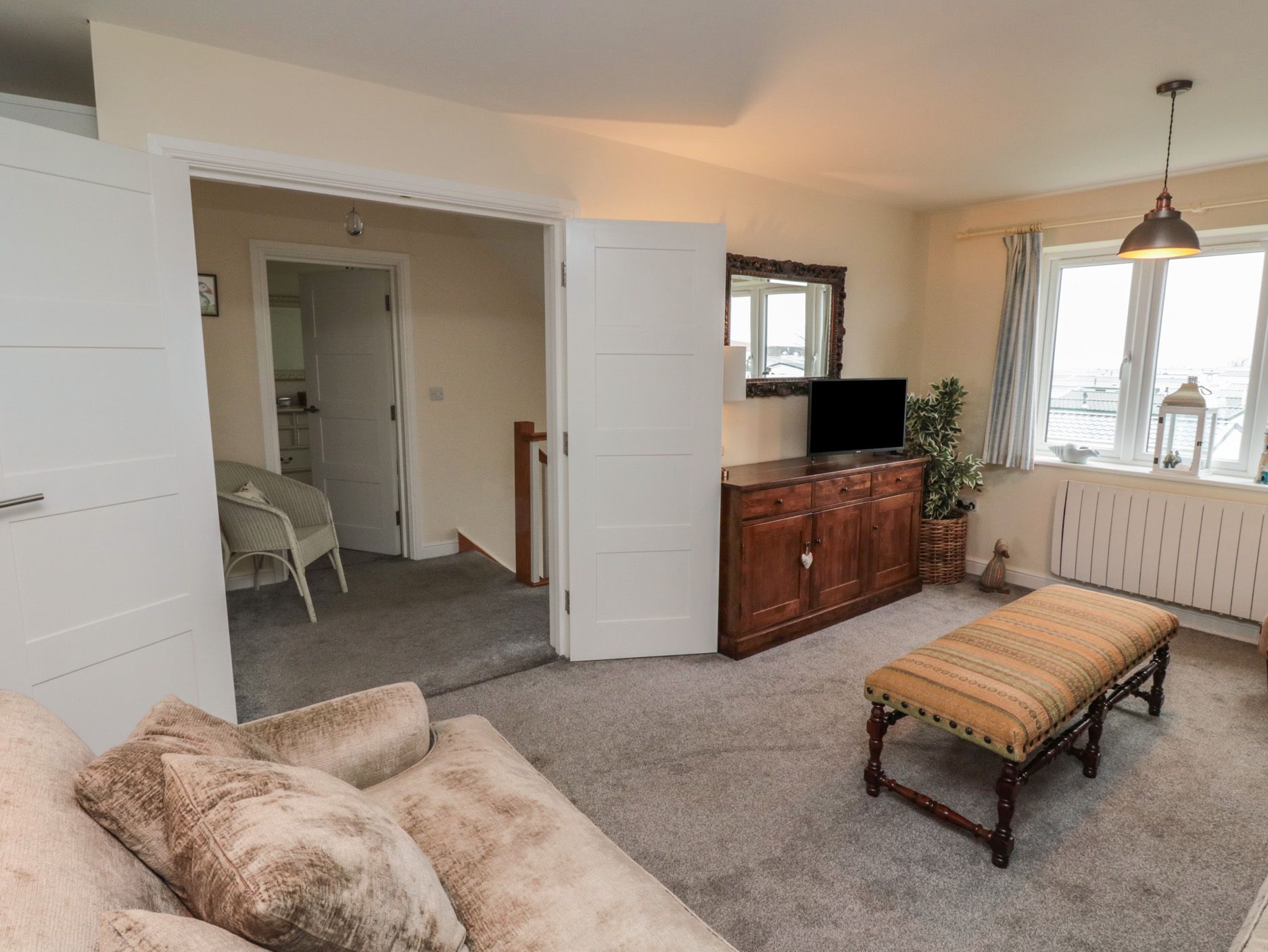 Accomodation Details Over three floors. Four bedrooms: 1 x second-floor super-king-size with Smart TV, 1 x second-floor king-size with Smart TV, 1 x ground-floor double with Smart TV, 1 x double with Smart TV and en-suite bath, walk-in shower, basin, and heated towel rail and WC. Second-floor bathroom with bath, basin, heated towel rail and WC. Cloakroom with basin and WC. First-floor open-plan living space with kitchen, dining area and sitting area