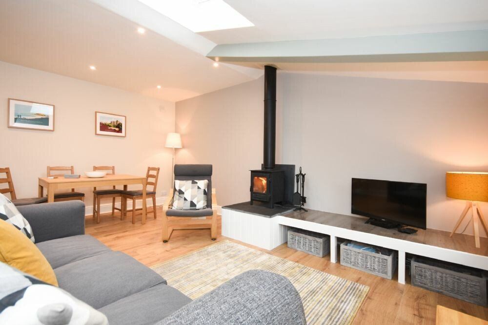 Amenities Electric heating with woodburning stove. Electric oven, ceramic hob, microwave, fridge/freezer, washing machine, slimline dishwasher. TV, DVD player, WiFi. Fuel and power inc. in rent. Bed linen and towels inc. in rent. Highchair and travel cot available on request. On-road parking beside property. Two well behaved dogs welcome. Sorry, no smoking. Shop 0.2 miles, pub 0.1 miles.