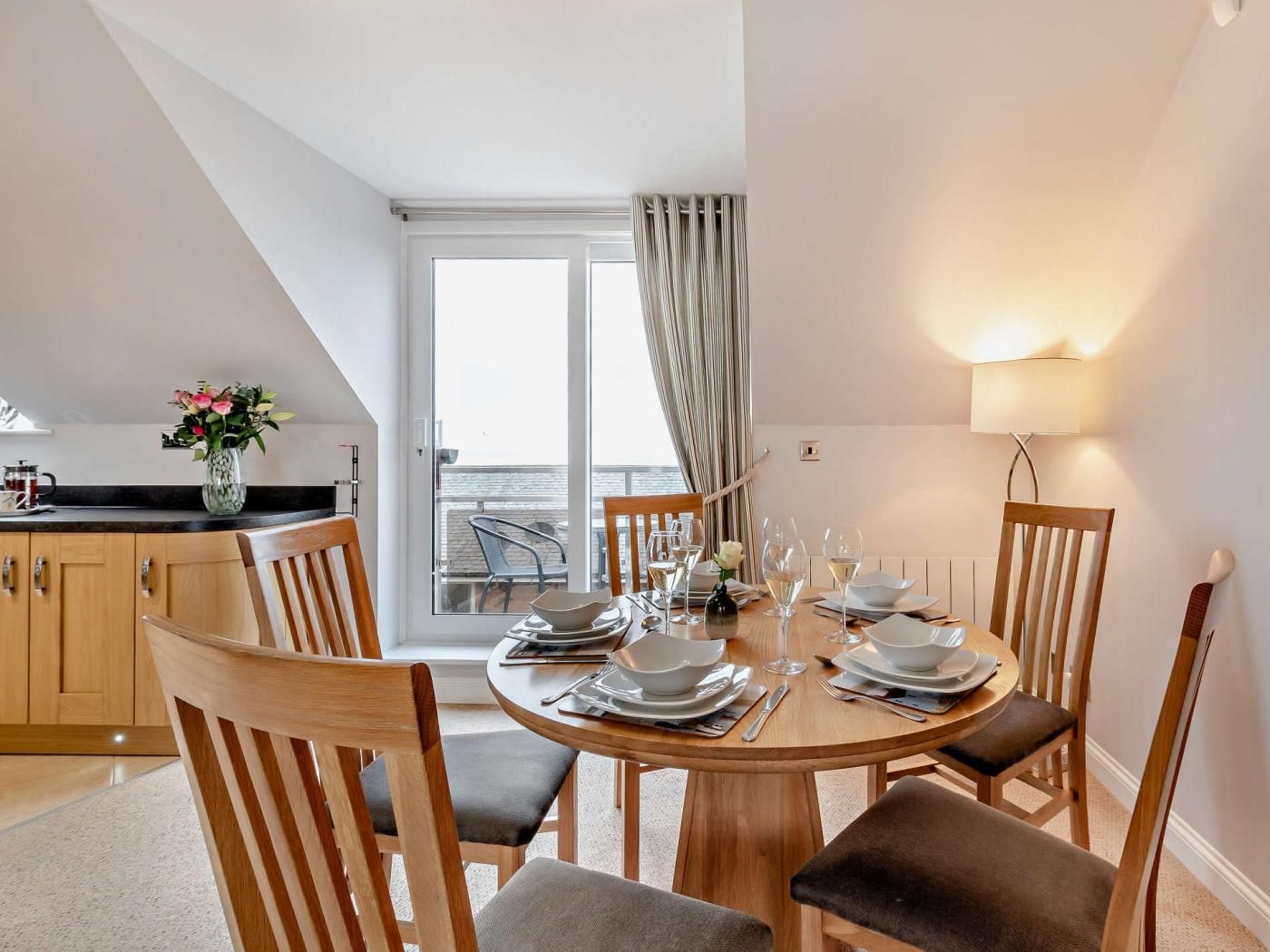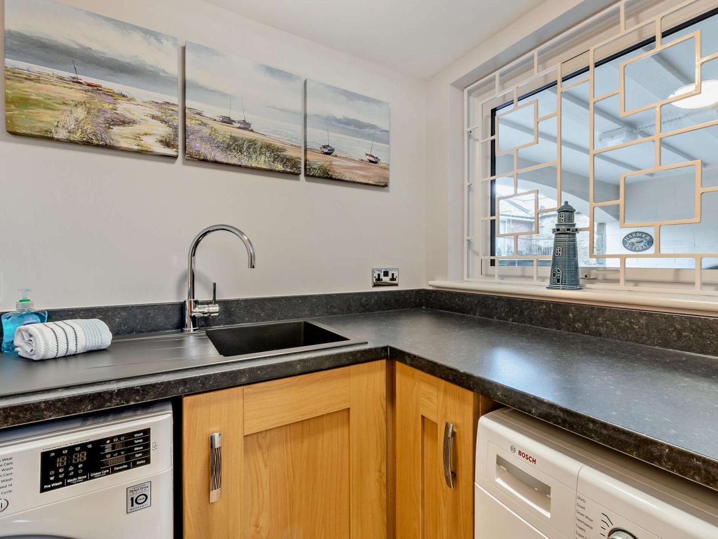 This inverted-level seaside holiday home is ideally situated in Seahouses, just one street back from the harbour front.