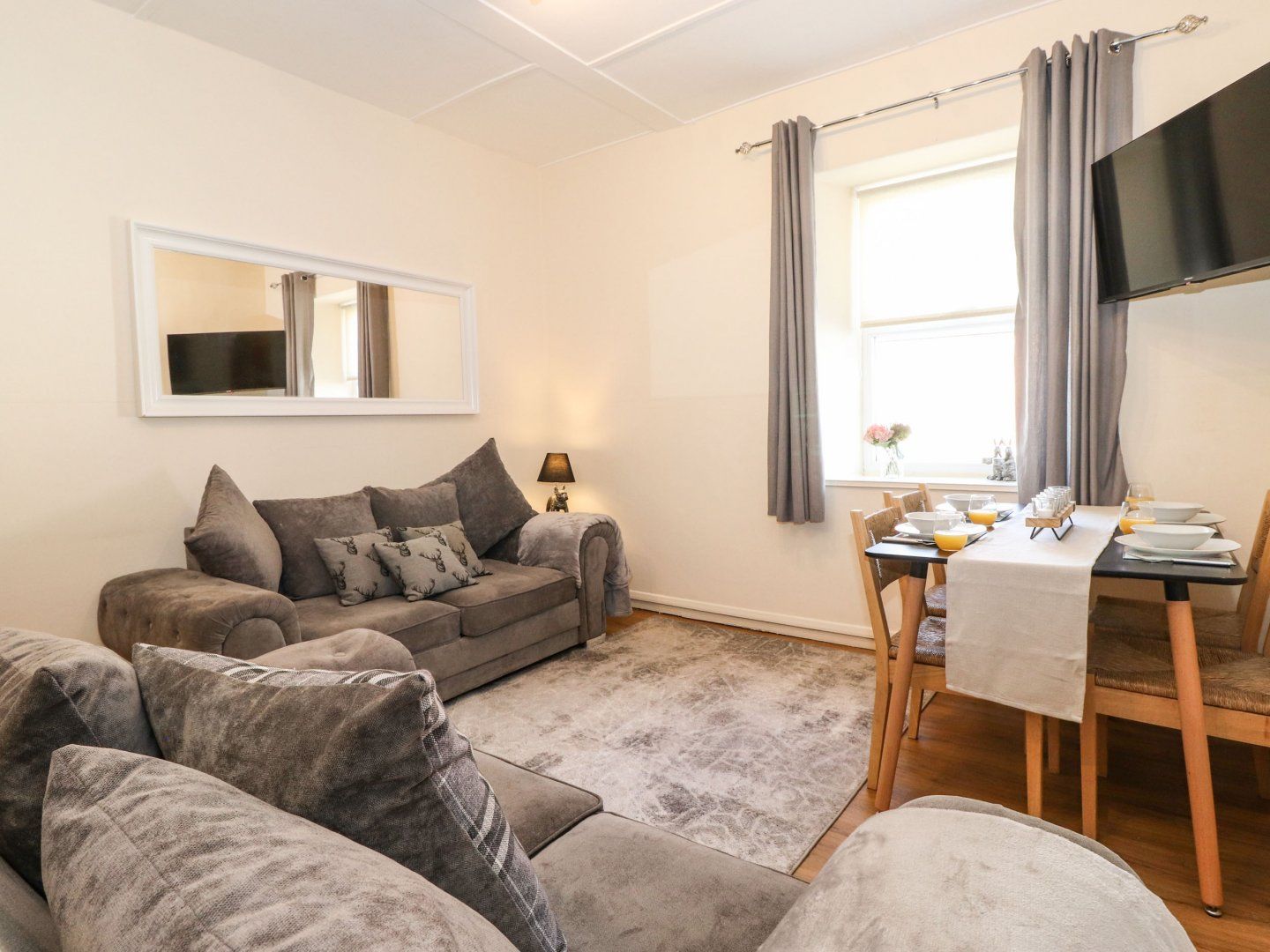 Accomodation Details First-floor apartment. Two double bedrooms. Bathroom with bath, shower over, basin, heated towel rail and WC. Open-plan living space with kitchen, dining and sitting area