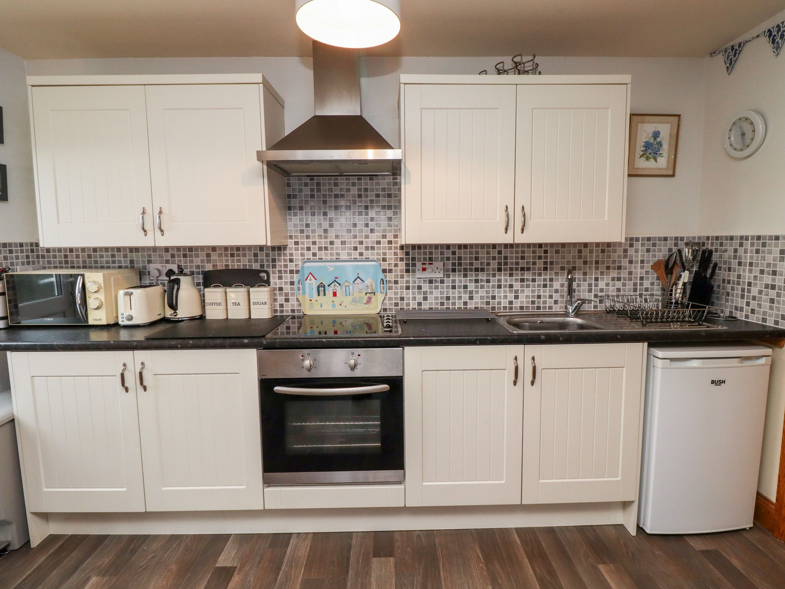 Holiday home The Nook is single-storey and has one king-size bedroom, along with a shower room and an open-plan living space with kitchen, dining area and sitting area. Appliances include an electric oven and hob, microwave, and fridge, and for entertainment there is a TV and WiFi. Outside, there is off-road parking for one car and an enclosed rear garden with lawn, patio and furniture. One well-behaved dog is welcome. Fuel, power, bed linen and towels are all included in the rent. Sorry, this is a smoke-free property. You can find a shop in 0.8 miles, a pub in 0.2 miles and Seahouses Marina in 1.1 miles. Choose The Nook for a romantic retreat to Northumberland.