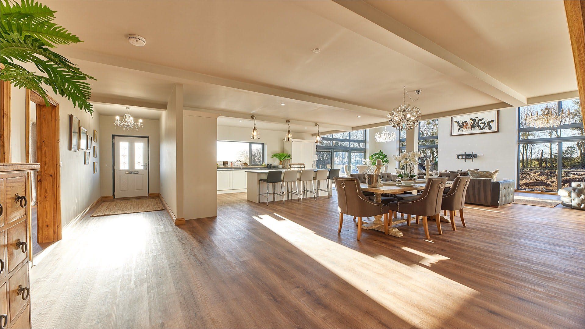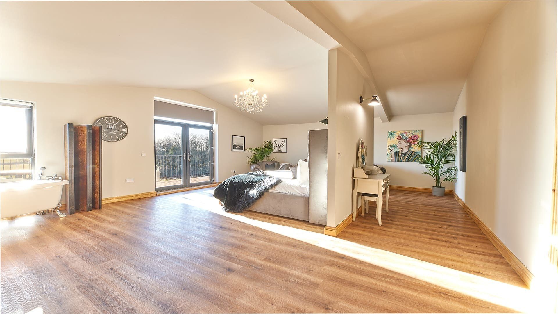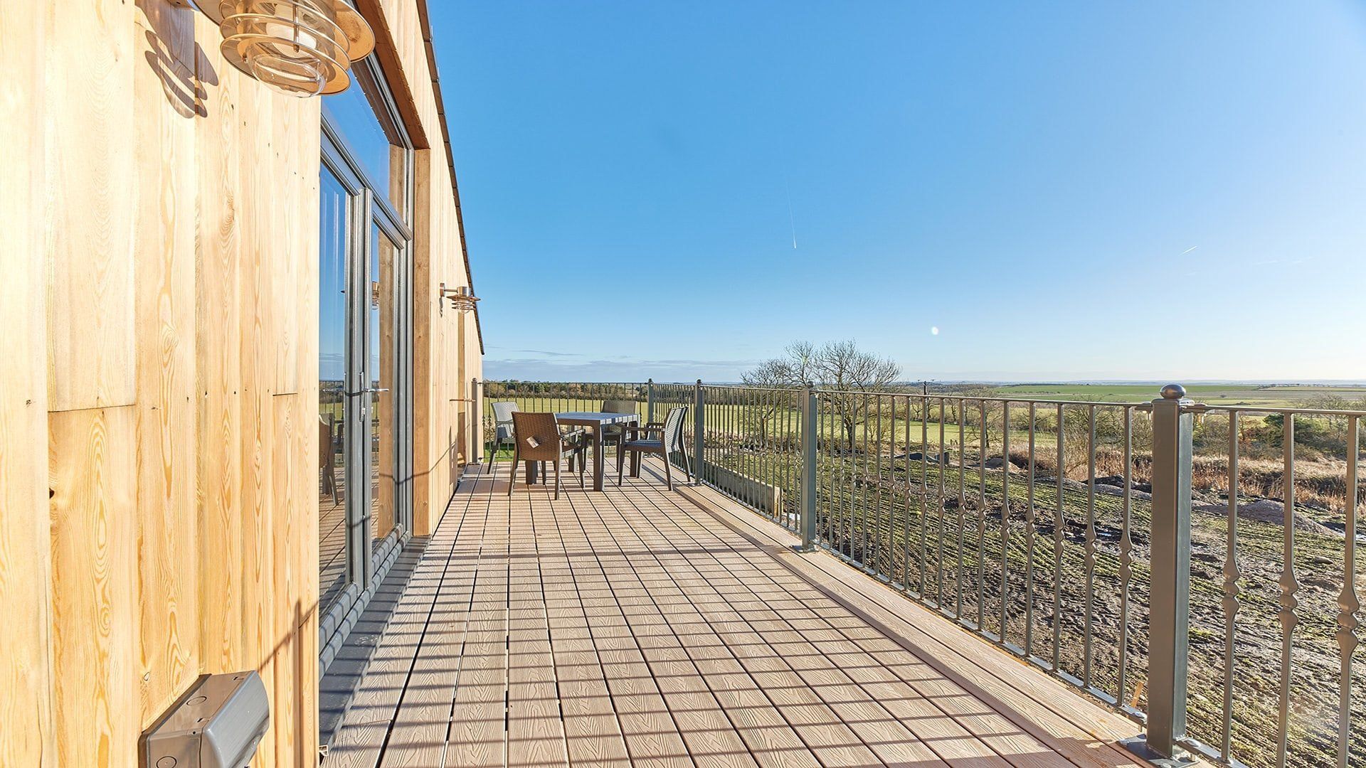 In the heart of the Northumberland countryside, this newly built lodge is packed with style and modern comforts. Amply sized windows show off the views of rolling fields, while the lofty ceilings and open-plan living area create more than enough space for a small group to get comfortable. Sleek and sophisticated, the kitchen has everything you'll need to rustle up hearty breakfasts and Sunday roasts, best enjoyed around the table alongside a bottle of wine and good conversation. Upstairs, the main suite has oodles of room to relax. We love the balcony – the perfect spot to enjoy your coffee in the fresh air – as well as the freestanding bathtub, which beckons for relaxing soaks after a long walk through the country. And even better, guests will have access to the two hot tubs on-site – ideal for bubbling away under the starry night skies.