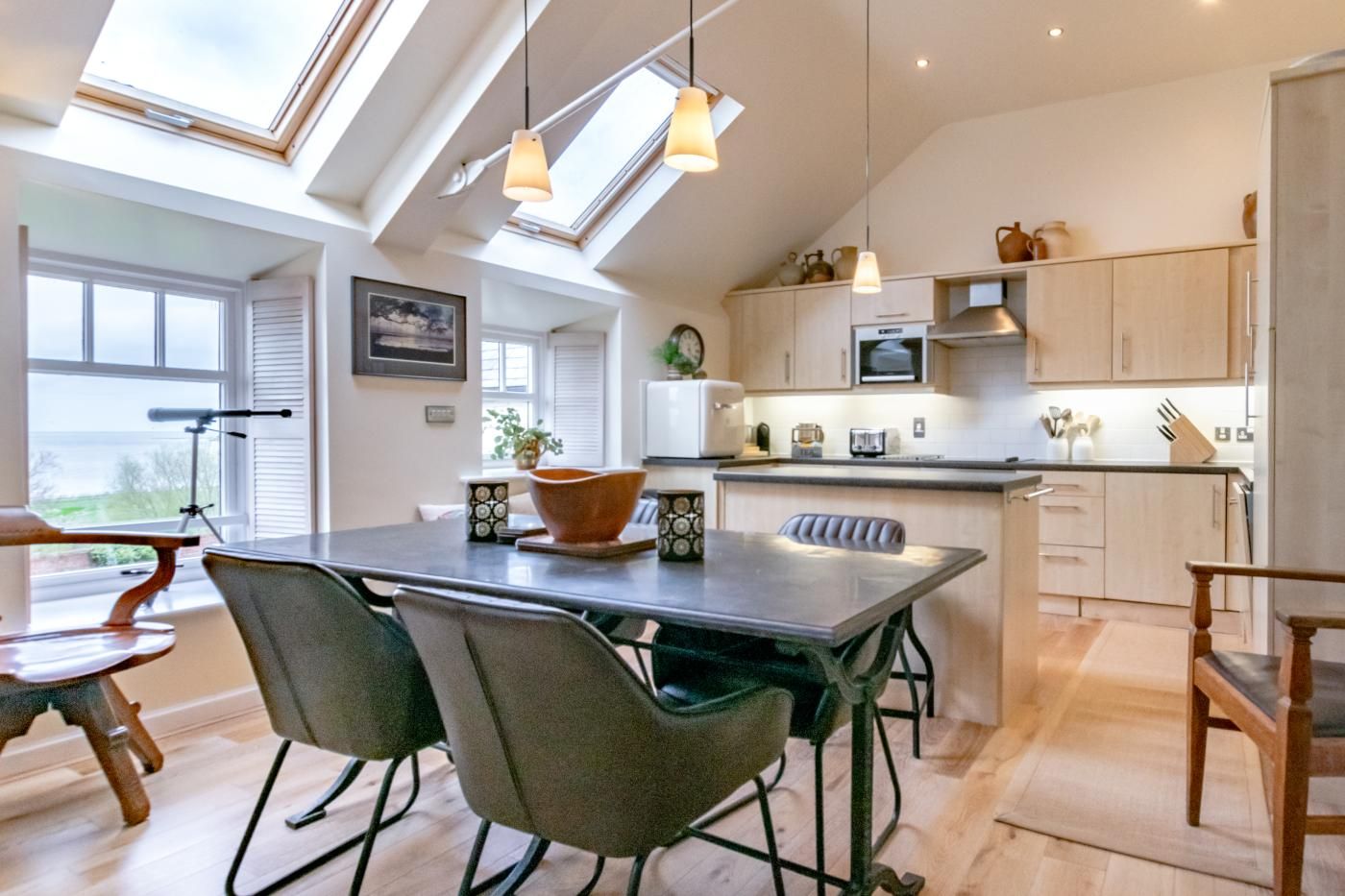 Located in the hamlet of Waren Mill, overlooking Budle Bay, this penthouse apartment for four guests is a great base to enjoy the amazing natural beauty of this part of the Northumberland coast.