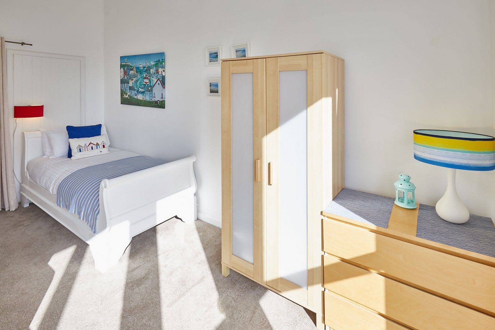 Nestled along Northumbria's picturesque coastline like a lighthouse calling to the ocean, this home will leave you feeling very well connected to the sea. Make the most of having your own personal watchtower where you can witness views of Budle Bay from different angles. We particularly adore the addition of a telescope, which will allow you to explore the distant scenery. Budle Bay has built a reputation as a bird sanctuary, so you might just spot birds like wildfowl and waders flying past. The home itself oozes a connection to the sea and the sandy bays that surround it – from the lush blues of the furnishings to the decorative touches.