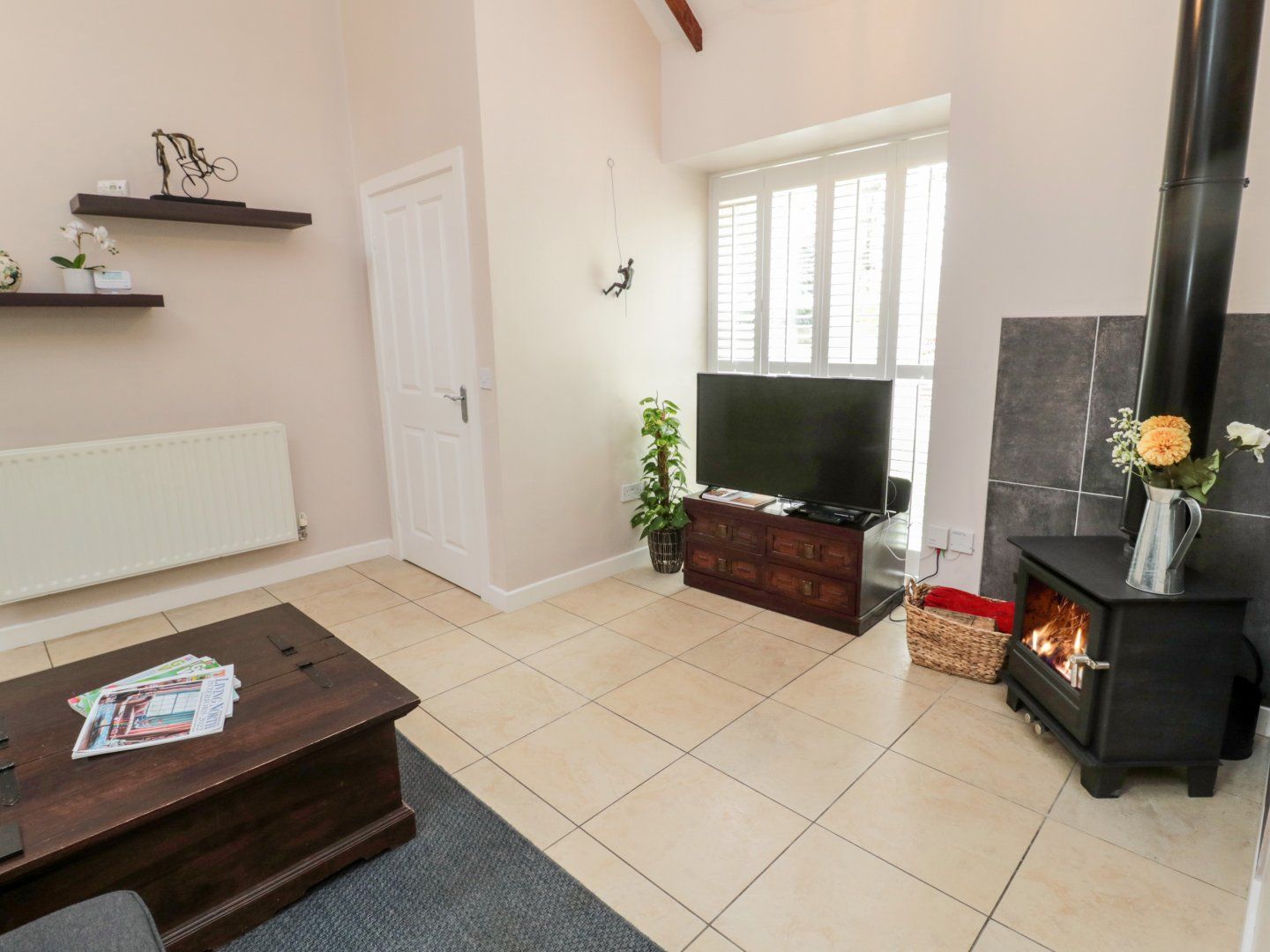 Gas central heating with woodburning stove. Electric oven, induction hob*, microwave, fridge (with ice box), washing machine, dishwasher, butler tap for instant boiling water and hairdryer. TV, TV with Freeview, CD/radio, full-fibre internet, selection of books and games. Fuel, power and starter pack for woodburning stove inc. in rent. Bed linen and towels inc. in rent. Ice Box available. Off road parking for 1 car. Front lawned area and enclosed rear lawned garden with patio, furniture and barbecue. Two well-behaved dogs welcome. Sorry, no smoking. Shop 3.8 miles, pub 3.4 miles. Note: Check-in is from 3pm, check-out by 9am