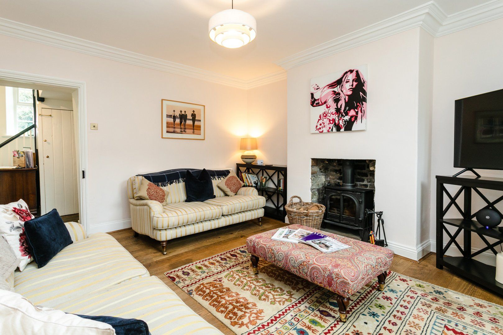 Amenities Gas central heating with woodburning stove. Range oven and grill, gas hob, microwave, fridge, freezer, washing machine, tumble dryer, dishwasher. 1 x TV, selection of books, WiFi. Fuel and power inc. in rent. Bed linen and towels inc. in rent. Unallocated roadside parking. Gardens, decking, patio furniture. One well-behaved dog welcome. Sorry, no smoking or vaping. Shop 0.1 miles, pub 0.1 miles, beach 1 miles. Refundable service charge applicable.