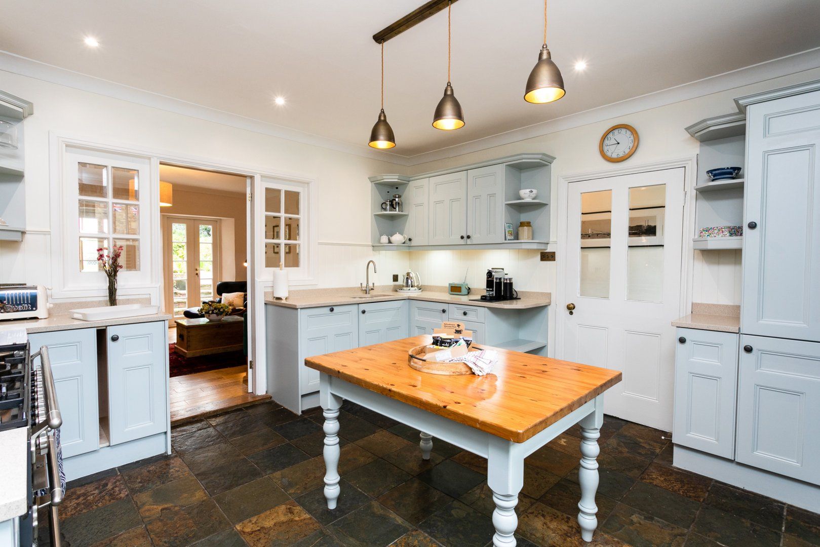 Accomodation Details Three bedrooms: 1 x king-size with en-suite with freestanding bath, walk-in shower, basin and WC, 1 x king-size, 1 x single. Bathroom with bath, shower over, basin and WC. Kitchen. Utility. Dining room. Sitting room with woodburning stove