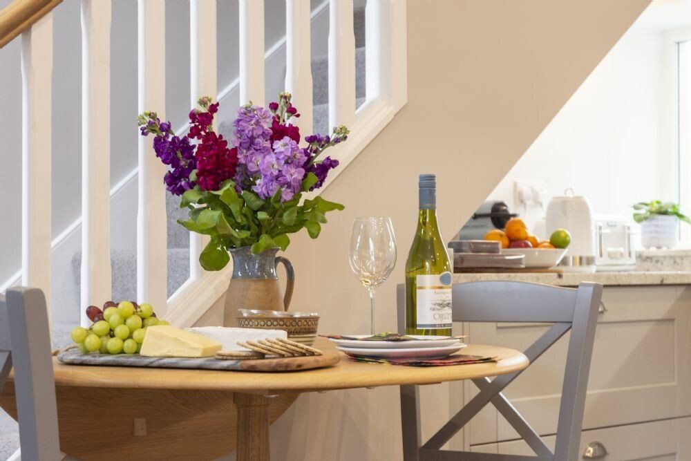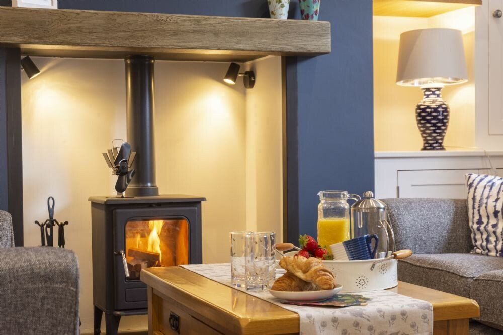 Amenities Gas central heating, underfloor heating with woodburning stove. Electric oven, grill and hob, microwave, fridge/freezer, dishwasher, coffee machine. Smart TV, DVD player, WiFi. Fuel and power inc. in rent. Bed linen and towels inc. in rent. Travel cot and highchair available on request at time of booking. Unallocated roadside parking nearby. Terrace, bike storage area, patio furniture. Sorry, no pets and no smoking. Shop 0.1 miles, pub 0.1 miles. Note: Starter pack of logs for woodburning stove provided between October and March. Note: If you wish a highchair or travel cot to be provided please let us know at time of booking