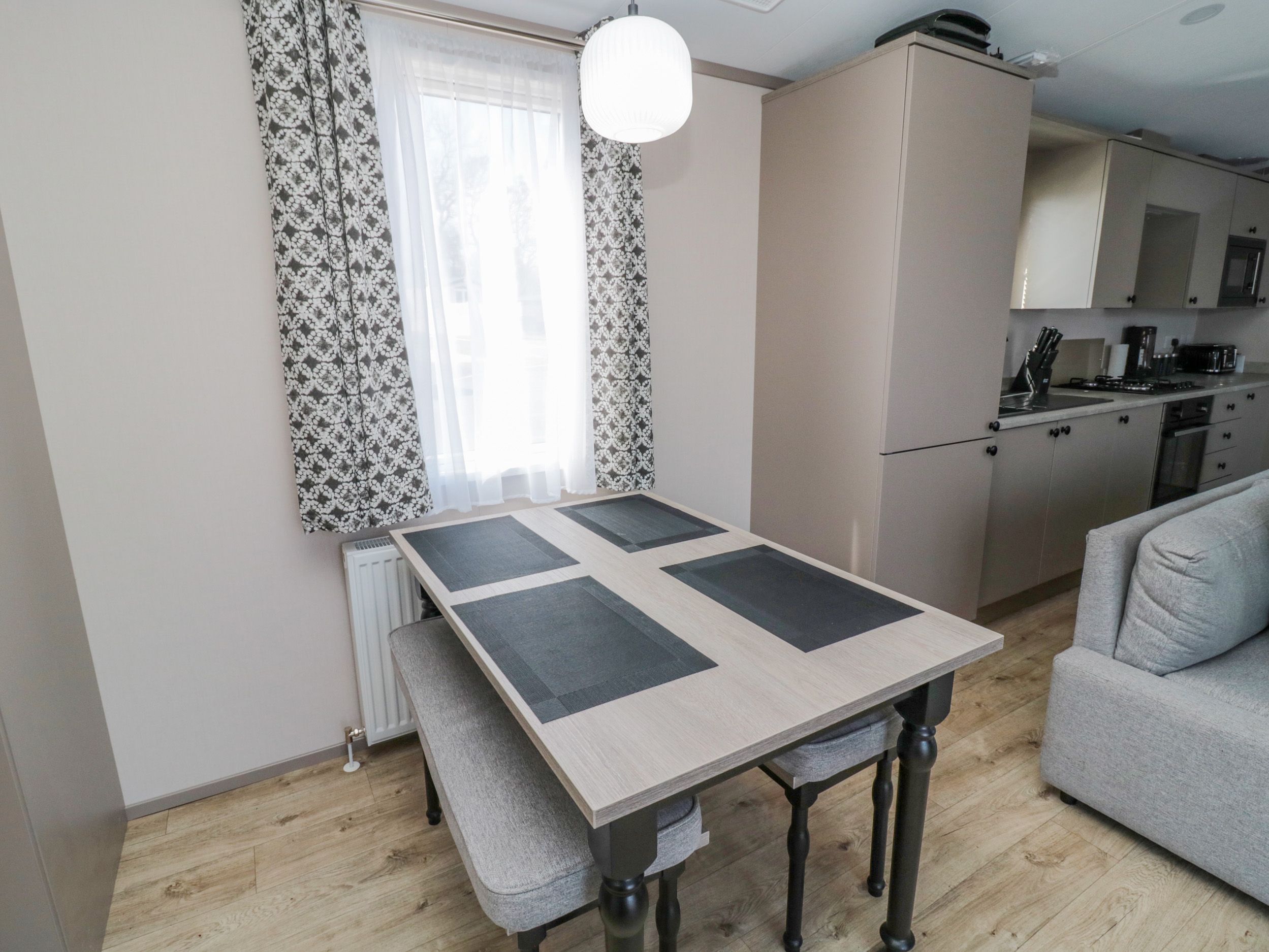Gas central heating. Gas oven and hob, microwave, fridge and freezer. Smart TV and WiFi. Fuel and power inc. in rent. Bed linen and towels inc. in rent. Off-road parking for 2 cars. Veranda with furniture and private patio with hot tub and furniture. Two well-behaved pets welcome. Sorry, no smoking. Shop 2.3 miles pub 0.1 miles. Note: There is also a bar and play area on-site. Note: This property does not accept stag/hen parties or similar. Note: The site observes quiet time from 10pm to 8am. Note: No barbecues are allowed at the property or anywhere on the holiday park.