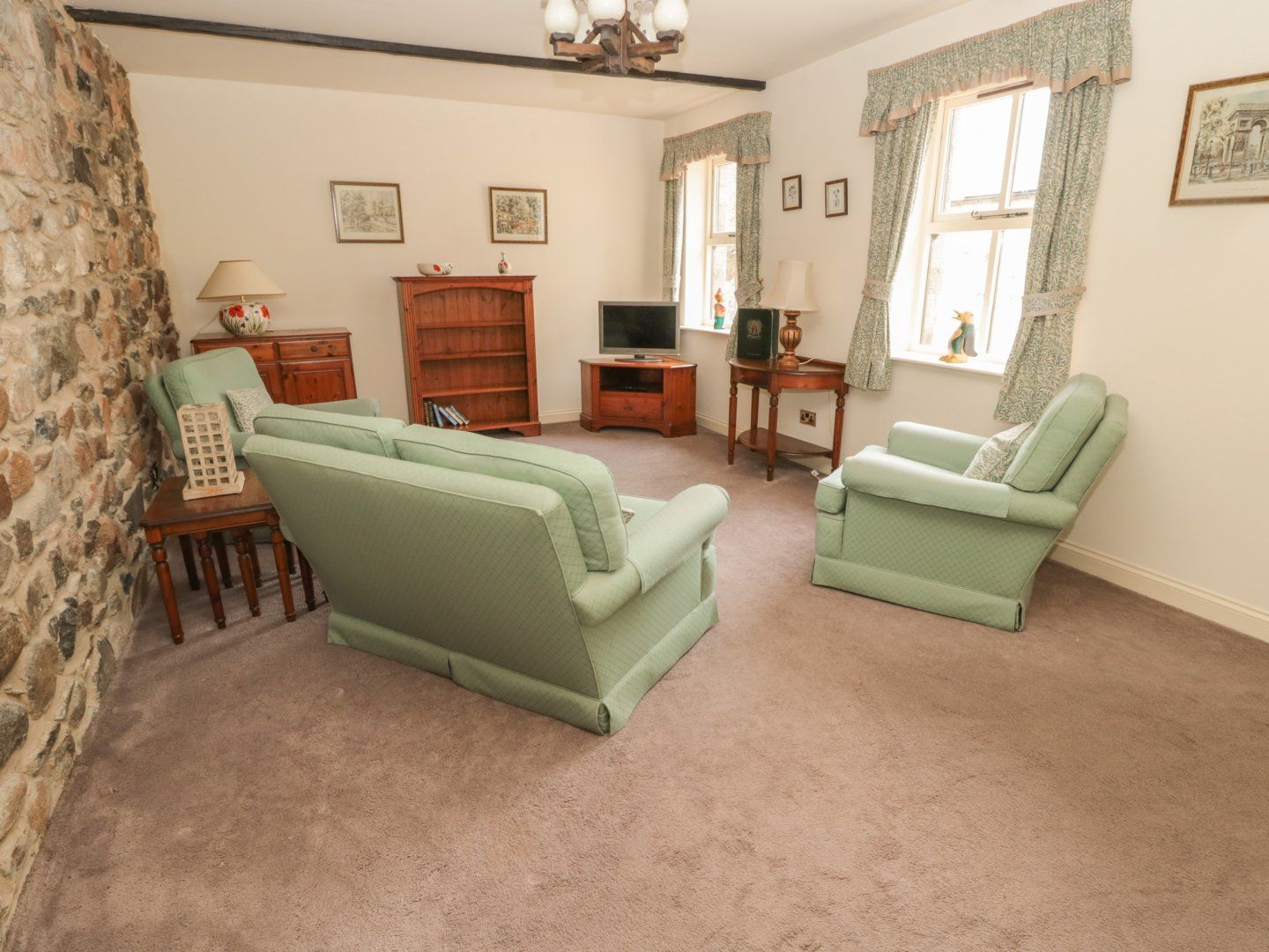 Electric storage heaters. Electric oven and hob, microwave, fridge/freezer, washing machine. WIFI, 50inch Smart TV. Fuel and power inc. in rent. Bed linen inc. in rent. Travel cot and highchair available on request. Off-road parking available. Front courtyard. Sorry, no pets and no smoking. Shop 2.6 miles, pub 2.3 miles. Note: Minimum 3 night stay's. Note: Guests must provide their own towels.