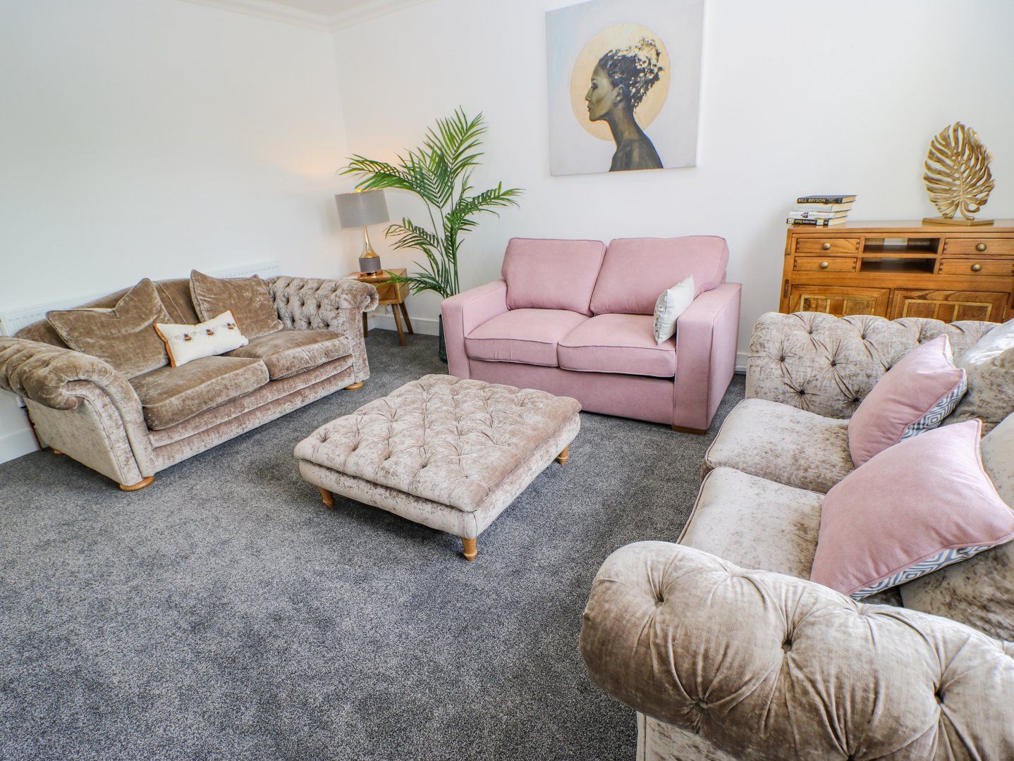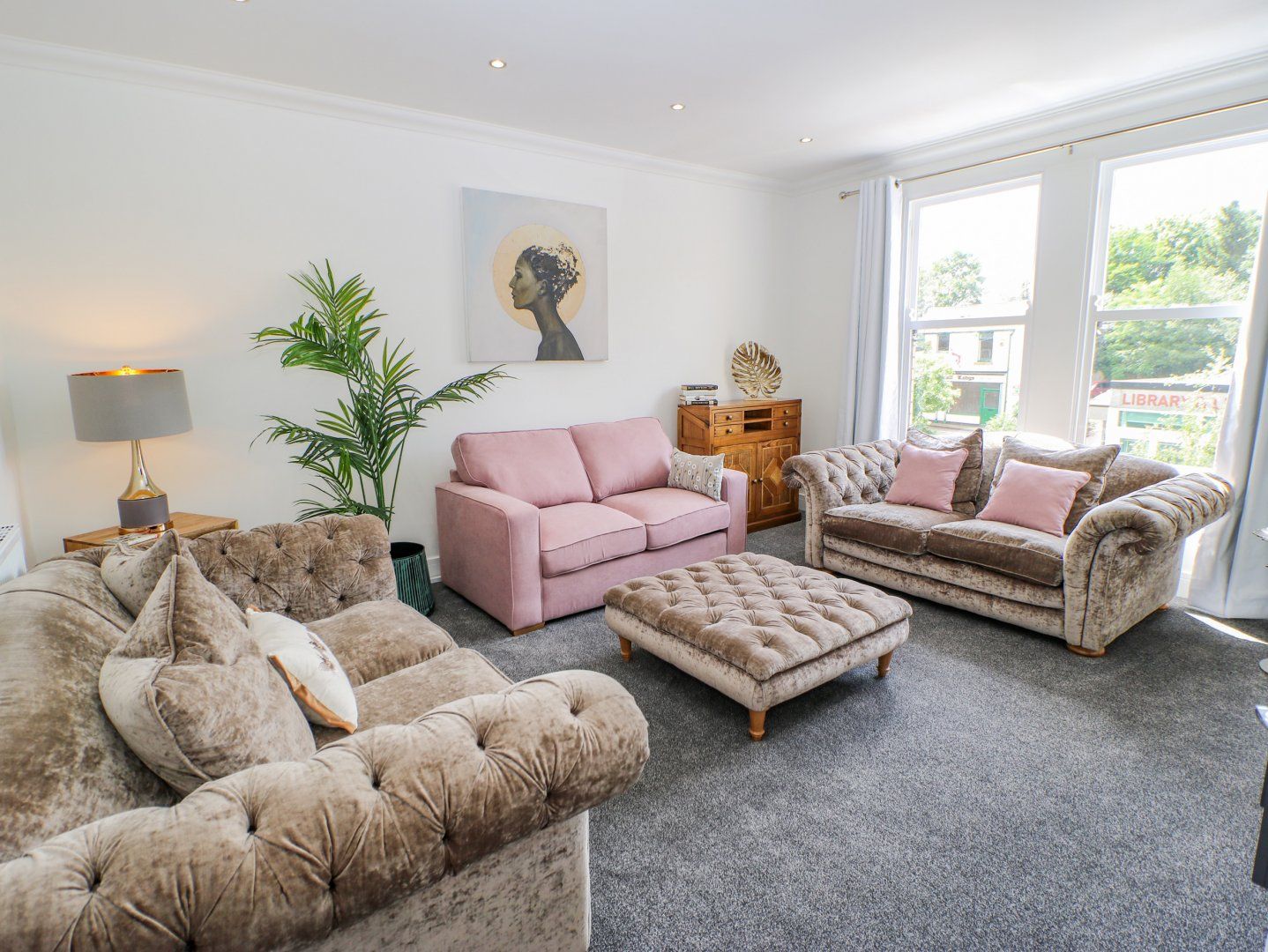 Accomodation Details First-floor apartment. Two bedrooms: 1 x king-size with Smart TV, 1 x twin. Shower room with walk-in shower, basin and WC. Kitchen. Dining room. Sitting room with sofa bed and electric fire