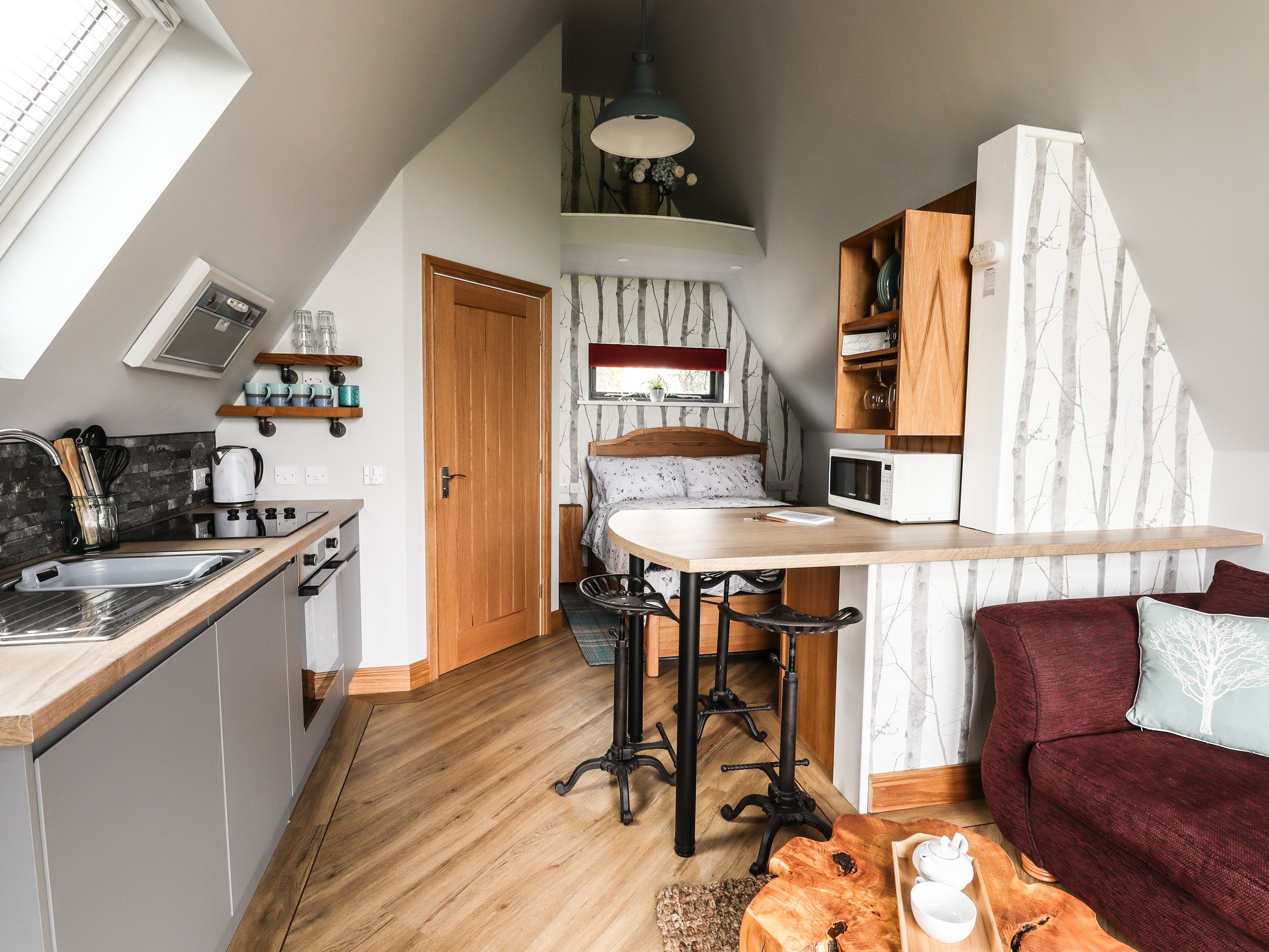 Accomodation Details All-ground-floor. One double bedroom. Shower room with walk-in shower, basin, heated towel rail and WC. Open-plan living space with kitchen, dining area and sitting area with woodburning stove.