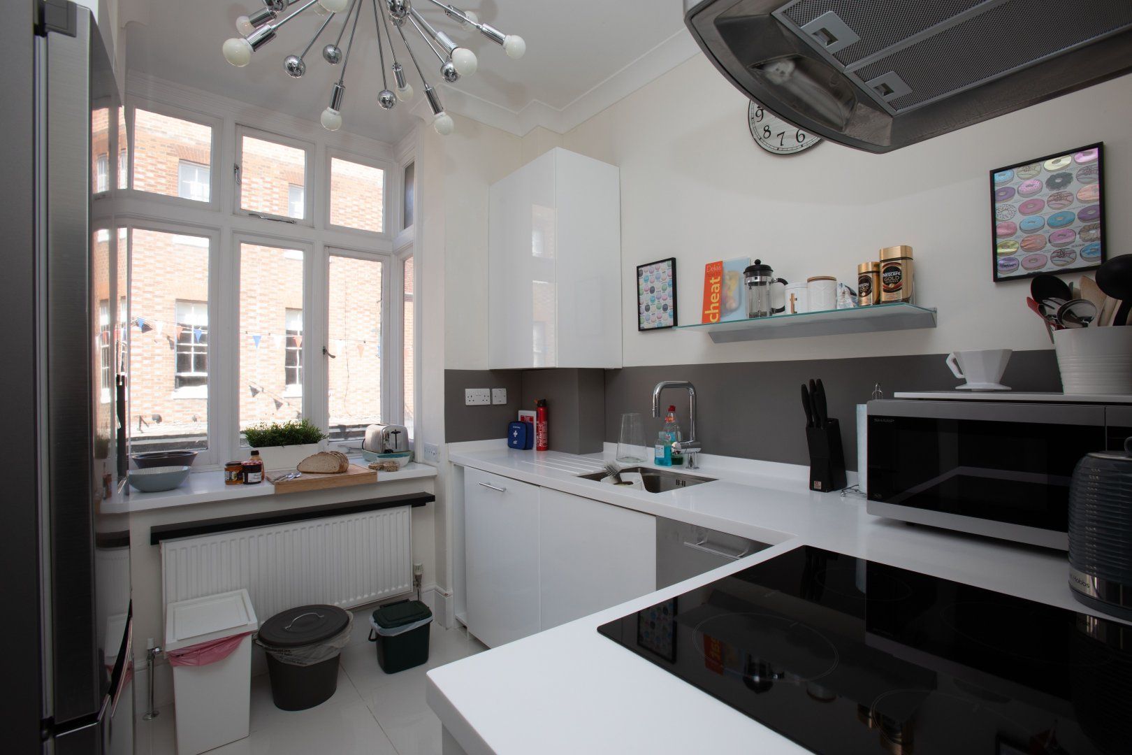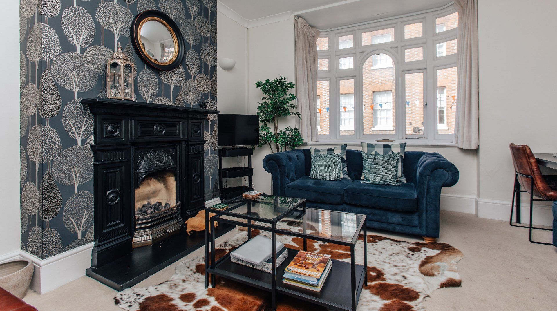 Aside from the excellent location, we love the comfortable and cosy interiors here, too. A big bay window bathes the living room in natural light and comfy leather and velvet sofas await weary legs at the end of the day. The original fireplace and small book library add a homely touch to the place, while quirky pieces like the cowhide rug and printed wallpaper add a contemporary feel. When you grow peckish, the kitchen is a vision of modern convenience, with all the bits and pieces you need to cook every meal of the day. Or, head out to the restaurants and pubs of Henley – you’re right in the heart of town after all.