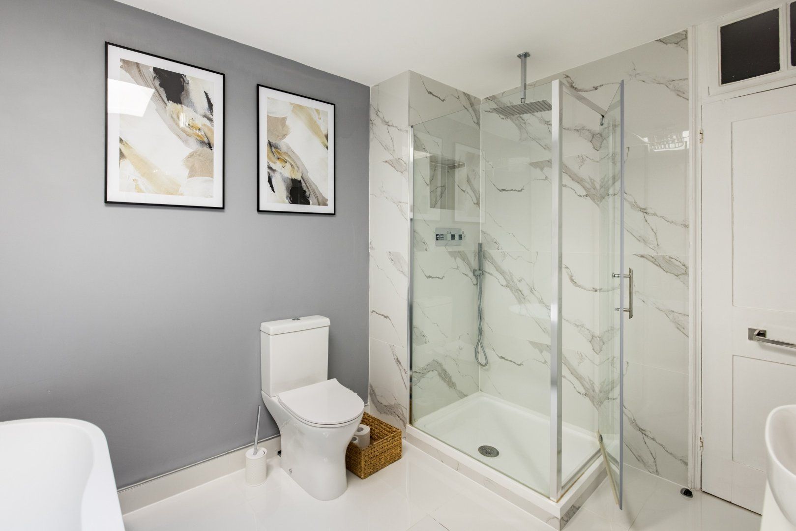 Right in the heart of the pretty town of Henley-on-Thames, this period home has been given a modern and fresh facelift. Just a minute from the river and set on one of its most attractive streets, this perfect little piece of history was built as a chapel in 1850. Set over three floors, and with many of its character features preserved, it's now a rather swish place for a family get-together or a reunion of friends. White, grey and pink tones make for a relaxing feel and the home is filled with natural light. There's a sleek new kitchen, with all the mod cons should you decide to cook at home, but this town is also known for its great bars and restaurants – which are conveniently within walking distance. We especially love this home’s back garden, with its plush seating, greenery and charming glass shed. And the luxury bathroom, complete with a big, freestanding tub and double sink unit, is the stuff of dreams. In the evenings, sit outside on the patio set with a bottle of wine or stroll two minutes down to the river for a G&T at one of the waterside pubs. Oh, and if you happen to be staying during the Henley Regatta, it's practically outside your front door.