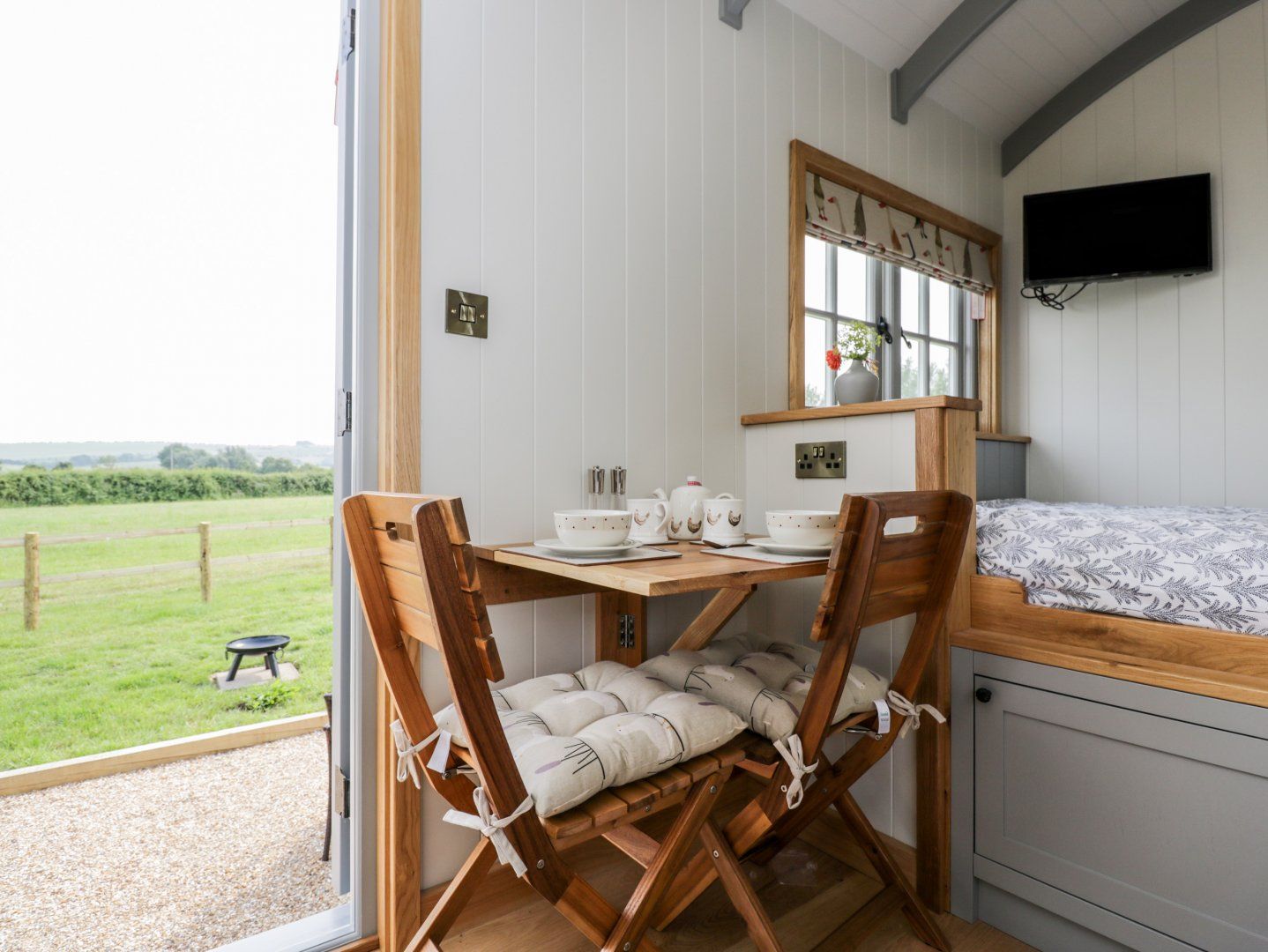Ridgeway is a quaint detached single-storey shepherds hut resting in Uffington, Oxfordshire. Hosting a studio-style layout featuring a double bed alongside an open-plan kitchen, dining area and sitting area with woodburning stove, this property can sleep up to two guests. Outside there is off-road parking and a garden with lawn, graveled area and furniture. Treat your significant other to a romantic retreat to the countryside with a stay at Ridgeway.
