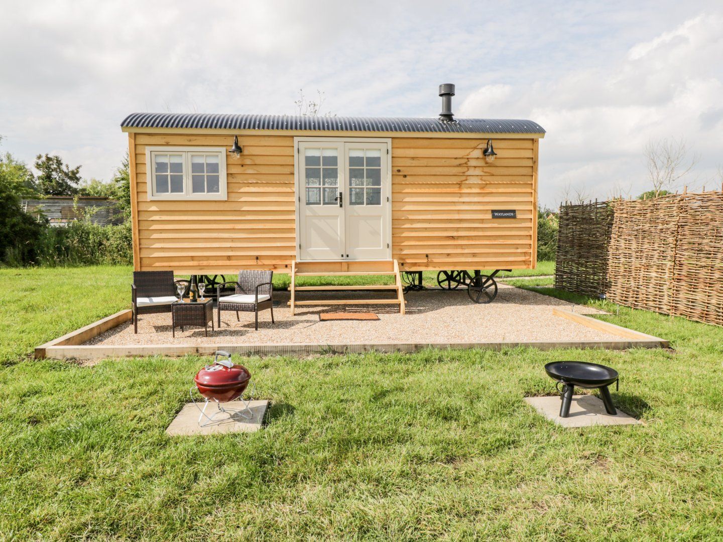Waylands is a quirky detached single-storey shepherds hut resting in Uffington, Oxfordshire. Hosting a studio-style layout featuring a double bed alongside an open-plan kitchen, dining area and sitting area with woodburning stove, this property can sleep up to two guests. Outside there is off-road parking and a garden with lawn, graveled area and furniture. Waylands is an idyllic base for a romantic retreat to the countryside.