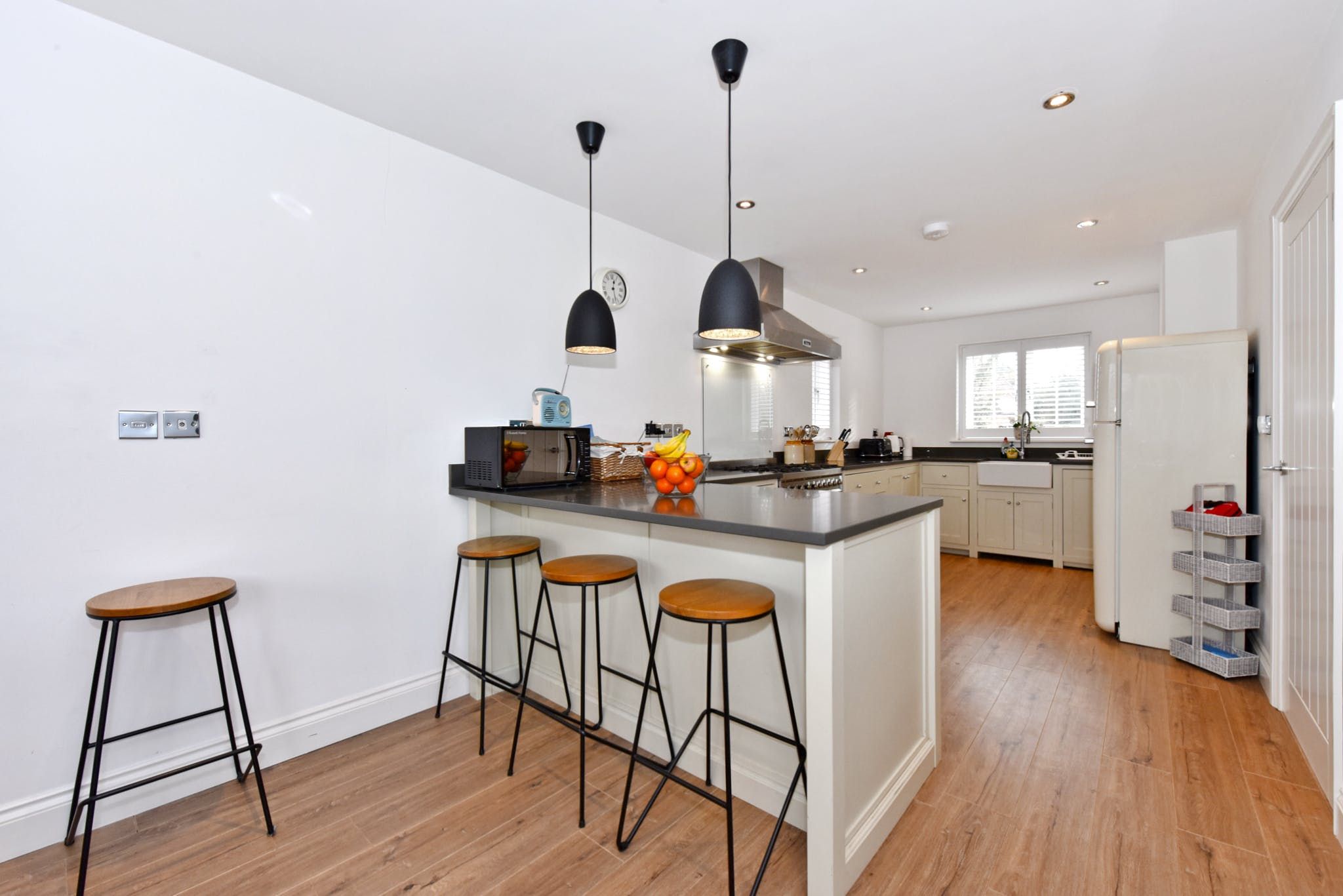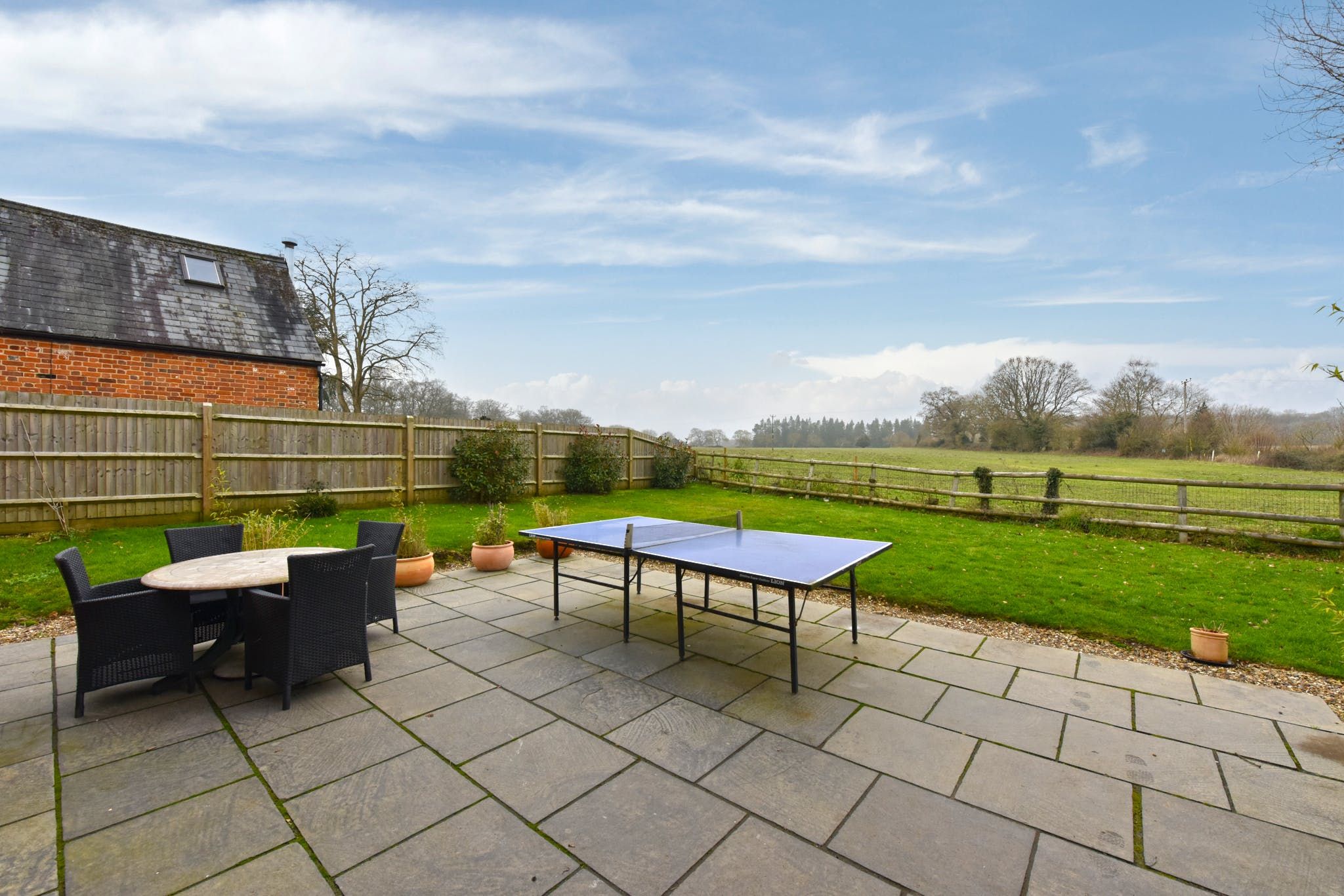Speaking of which, the address benefits from a large garden with a view of local farmland, as well as a terrace with seating from which to appreciate the tranquillity. If the weather's particularly good, you can fire up the barbecue for an alfresco banquet, but if the forecast isn't playing ball, you can make the minute's walk over to the local pub for a roast dinner.