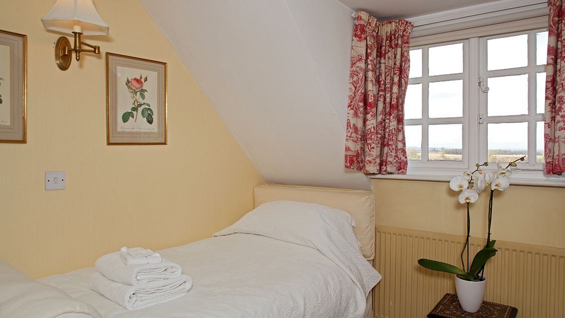 Best suited to families with older children, Cheltenham Cottage is reached via a spiral staircase from its entrance in the centre of Bruern's courtyard. It is formed from the first and second floors of the estate's former carriage house and benefits from a large airy living space, flooded with light from three windows on each side. There are lovely views both sides, over the courtyard to the front and over the gardens to Stow on the Wold to the rear.