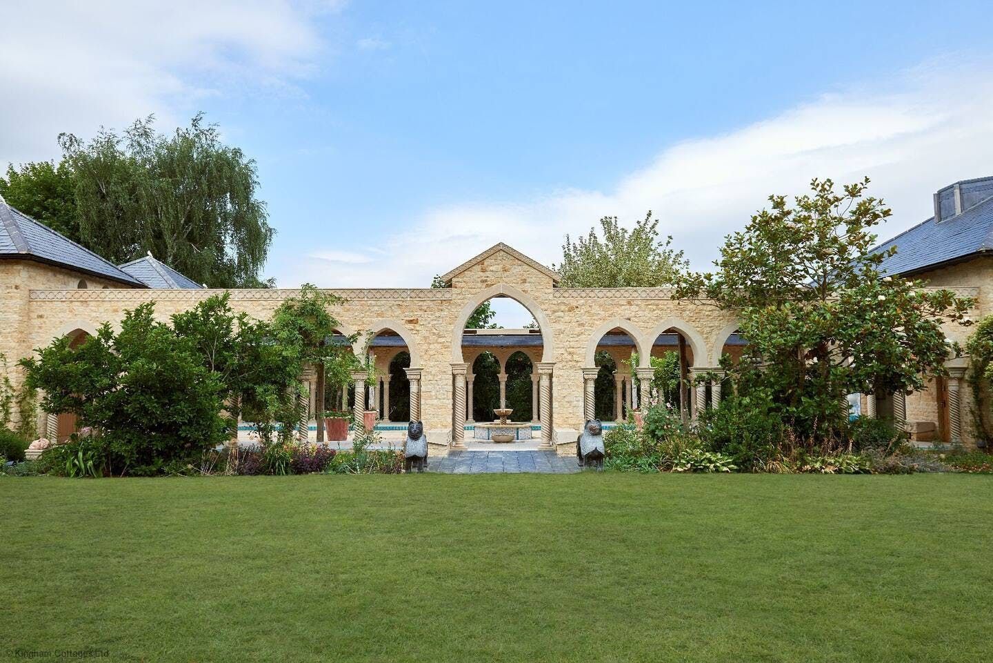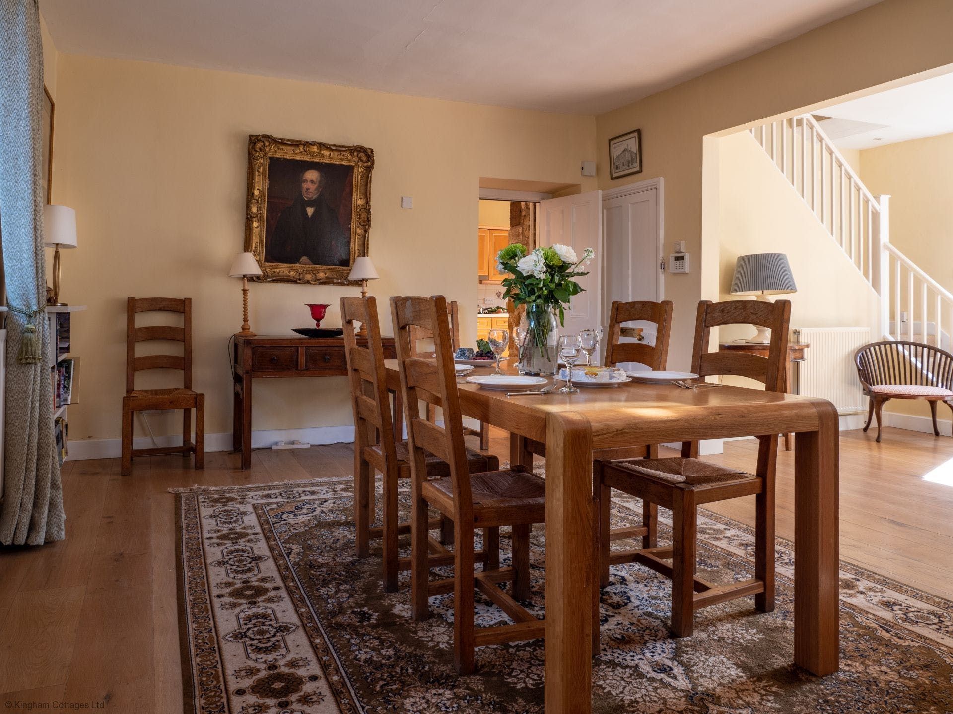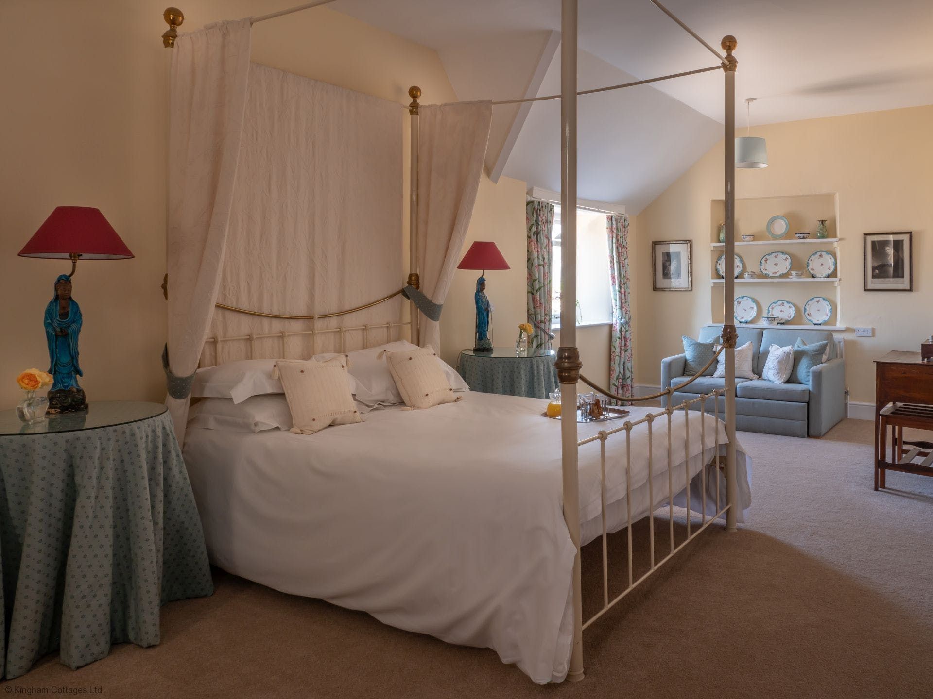 Take the most quintessential English cottage you ever did see, set amidst the rolling Cotswold countryside. Add to your doorstep five acres of sprawling shared gardens (think topiaries and a Moorish-inspired pavilion) complete with a shared indoor heated pool, Turkish hammam, and a hard tennis court. All tied up in the neat little bow that is Kingham, one of the Cotswold’s prettiest villages just moments away. And you’ve got yourself the perfect countryside retreat. Inside this eighteenth-century cottage, you’ll find a crackling fire for cosying up on colder nights. A light-filled living space with French doors opening out onto a south-facing private garden for summer evening barbecues. A suntrap conservatory overlooking the garden, that’s the perfect spot for your breakfast. And elegant, spacious bedrooms upstairs (a four-poster bed to boot) with picture-perfect window views. When you do decide to venture further afield from this quiet countryside idyll, you’re just a five-minute walk to the village centre with its award-winning gastropubs for an evening meal. Or head to Daylesford Spa and Farm Shop, just a five-minute drive away or twenty minutes on foot, where you’ll find the best organic food around and plenty of dining options. It’s all for the taking here.