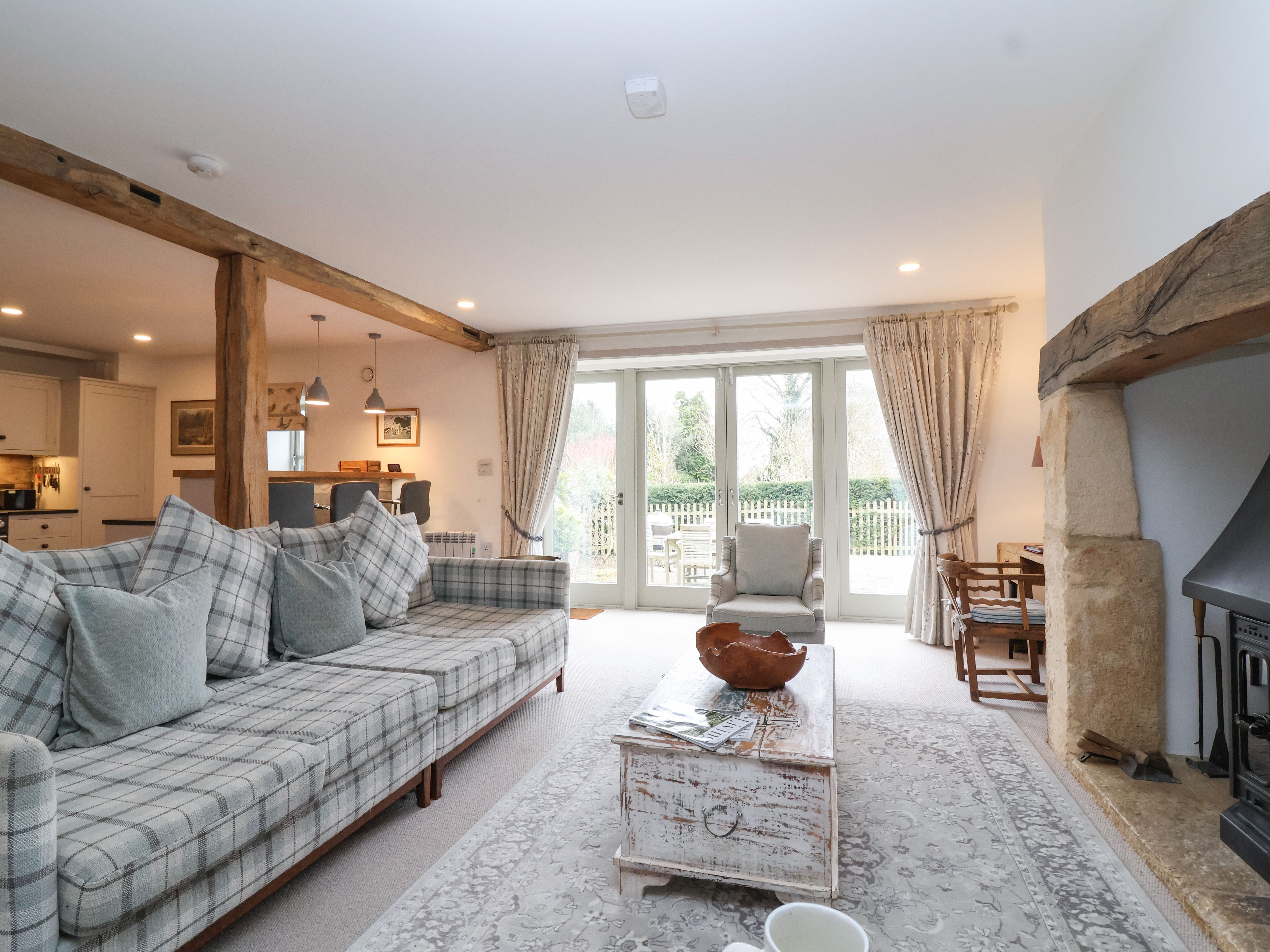 Holiday home One super-king-size (zip/link, can be twin on request) bedroom with single sofa bed, Smart TV and en-suite bath, walk-in shower, basin, heated towel rail, and WC, and one second-floor super-king-size (zip/link, can be twin on request) bedroom with en-suite bath, shower over, basin, heated towel rail, and WC. Cloakroom with WC and basin. Open-plan living area with a kitchen, dining area, and seating area with a woodburning stove. There is electric central heating. The kitchen has a microwave, fridge, dishwasher, and coffee maker. There is a utility cupboard with washing machine, tumble dryer. For entertainment, there is WiFi and a second Smart TV. Fuel, electricity, and a starter kit for a wood-burning stove are included in the rent. Bed linen and towels are included in the rent. There is a highchair, a travel cot, and a stairgate available. There's plenty of off-road parking. Private fenced-in garden with gravel, furniture, and a grill. One small, well-behaved dog is permitted (no bigger than a cocker spaniel). Please note any bookings with 2 infants must be authorised in advance by the owner. Sorry, no smoking allowed. The nearest shop is 2.5 miles away, and the nearest pub is 0.3 miles away. Please keep in mind that check-in begins at 5p.m. and ends at 10a.m. Please bring your own bed linen if you are using the travel cot. Dogs are not permitted upstairs and will be charged £25 per week. Stow Cottage Barn is the perfect dwelling for an escape to the Cotswolds with loved ones.