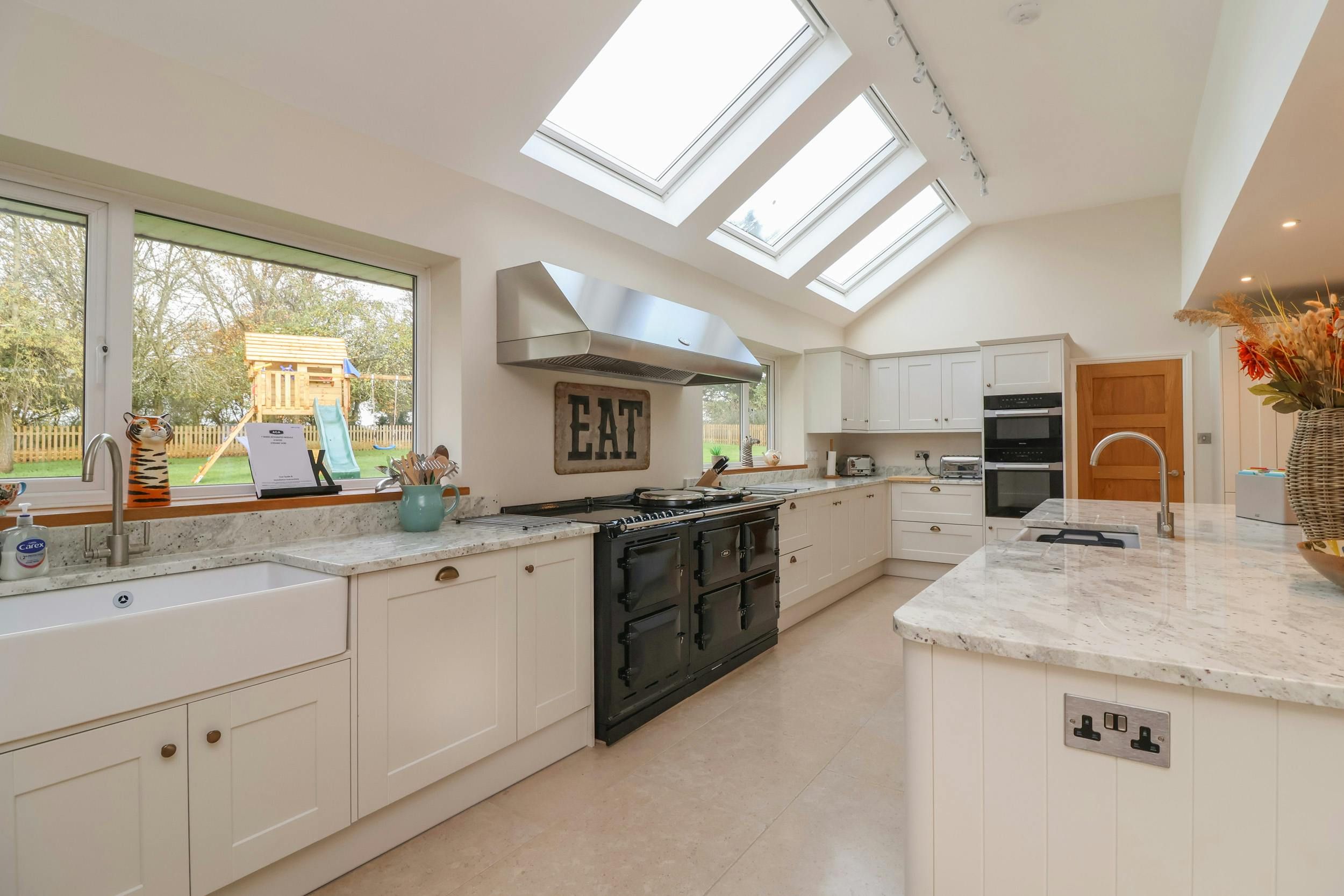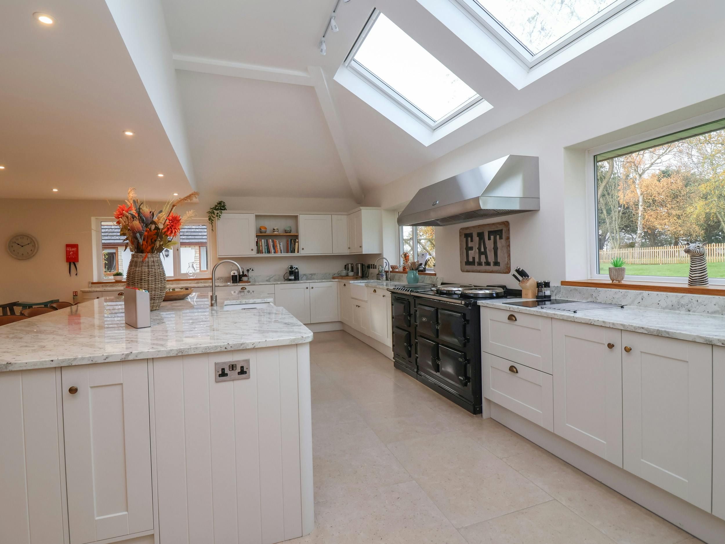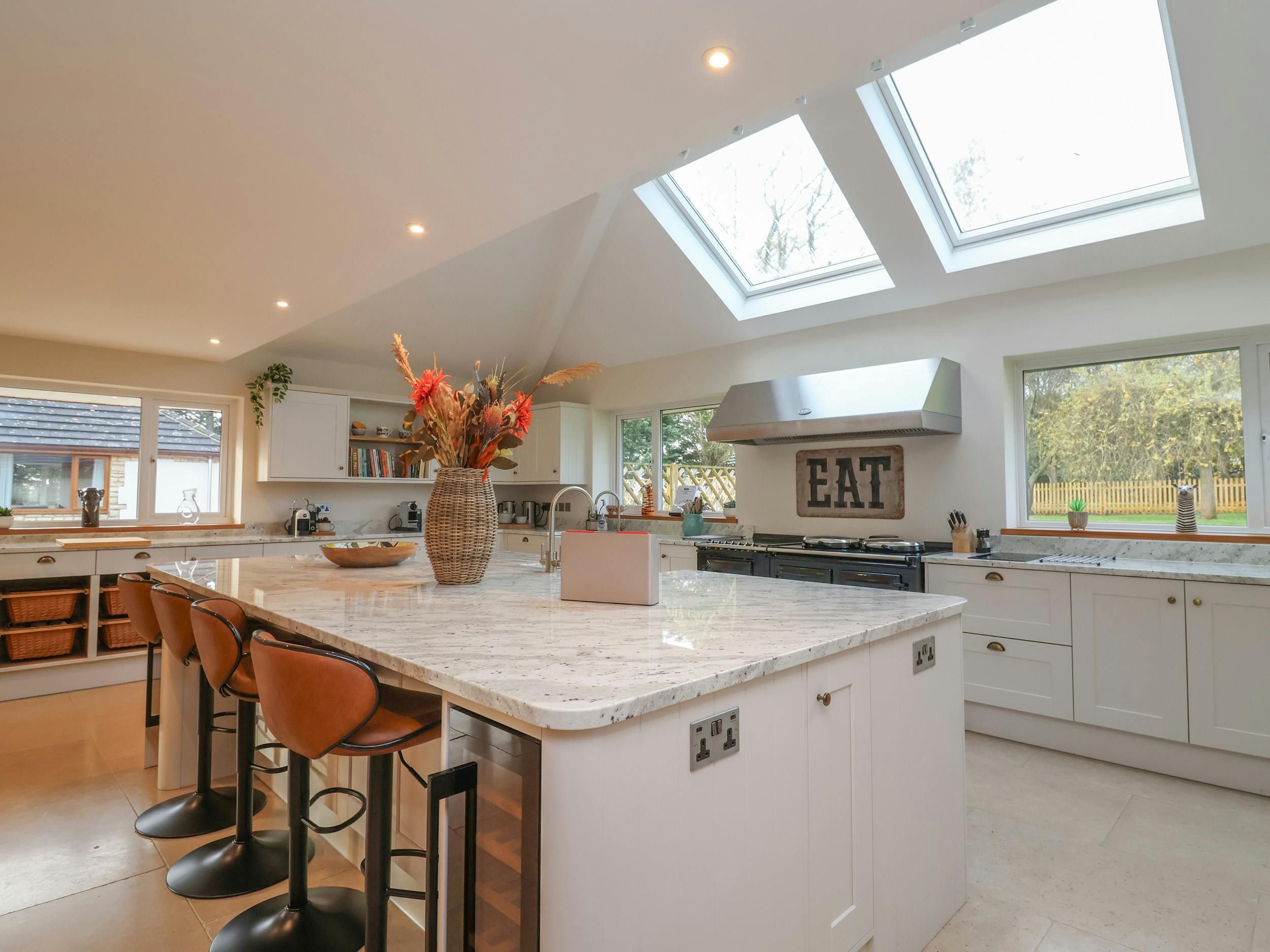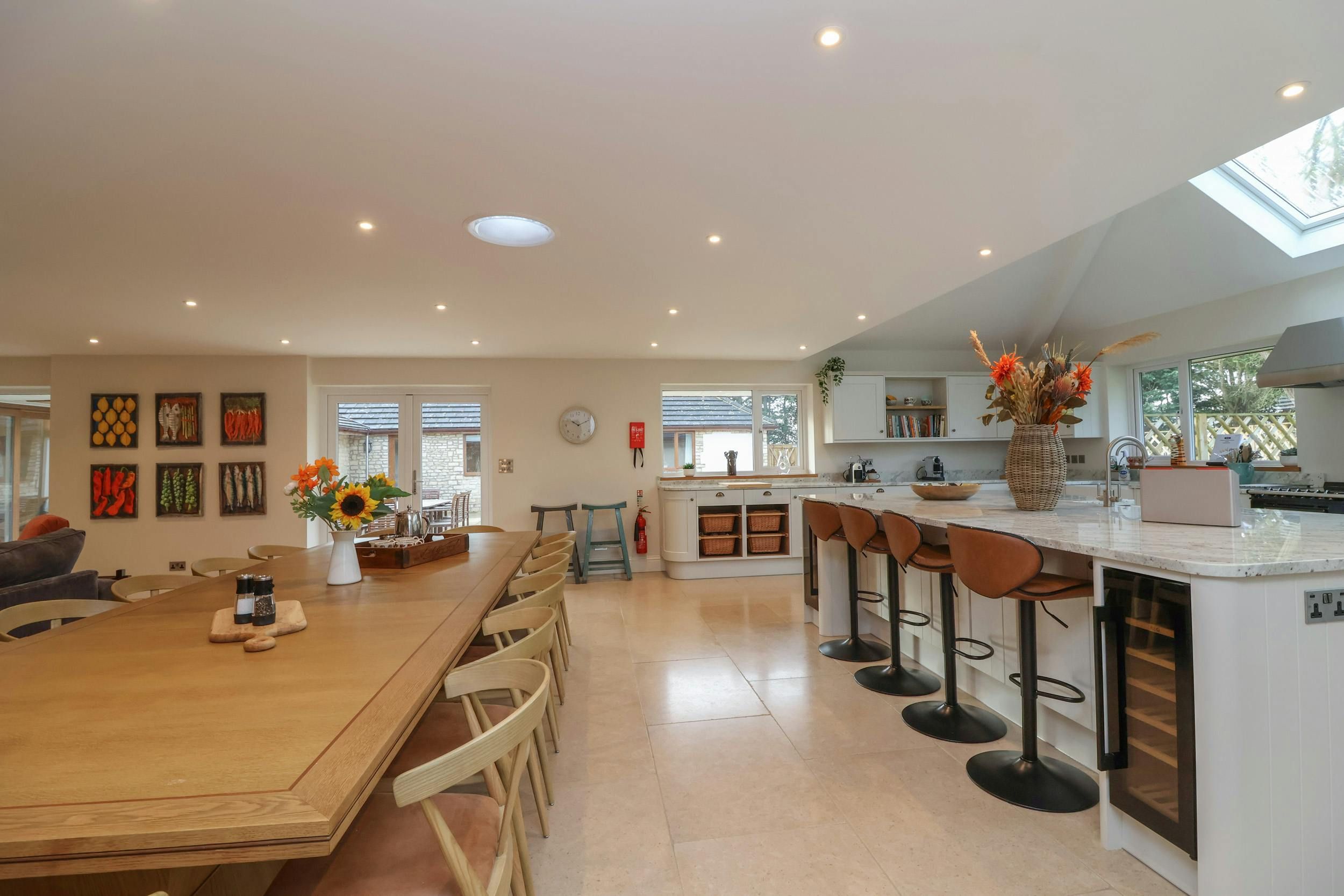 Families and large groups will feel right at home in this sprawling abode. With a character-packed sitting area, a kid's snug, and a games room, there won't be a lack of space here. That said, the heart of this place is undoubtedly the kitchen. There's ample room to cook, dine, and chill out together. On sunny days, you can pad straight out to the garden – the countryside view makes the perfect backdrop for alfresco dining – or watch as little ones and four-legged friends run free on the lawn. Fancy a change of pace? Head into the Cotswolds and explore the chocolate-box villages, or drive 14 miles east to Oxford for a bit more buzz.