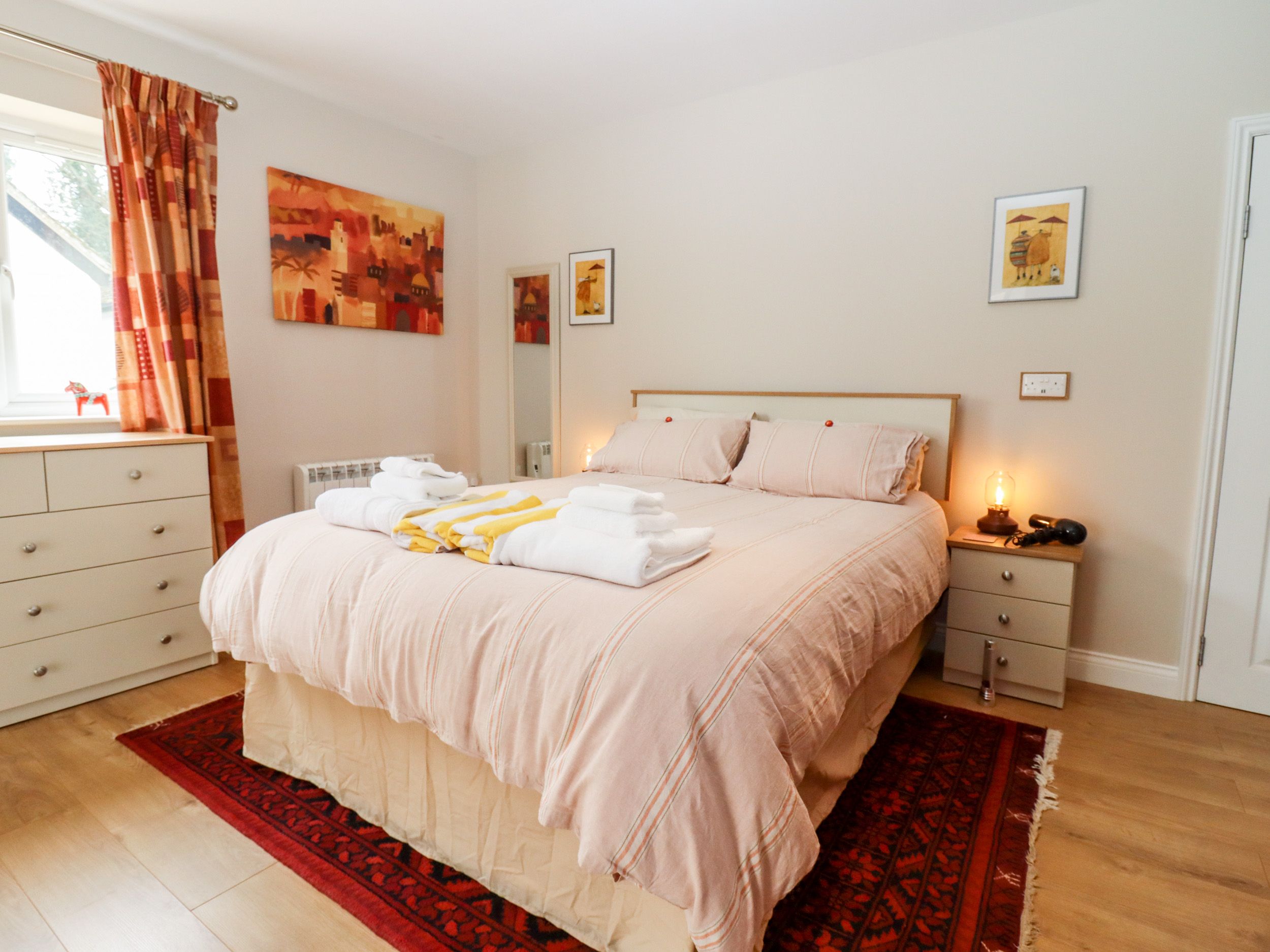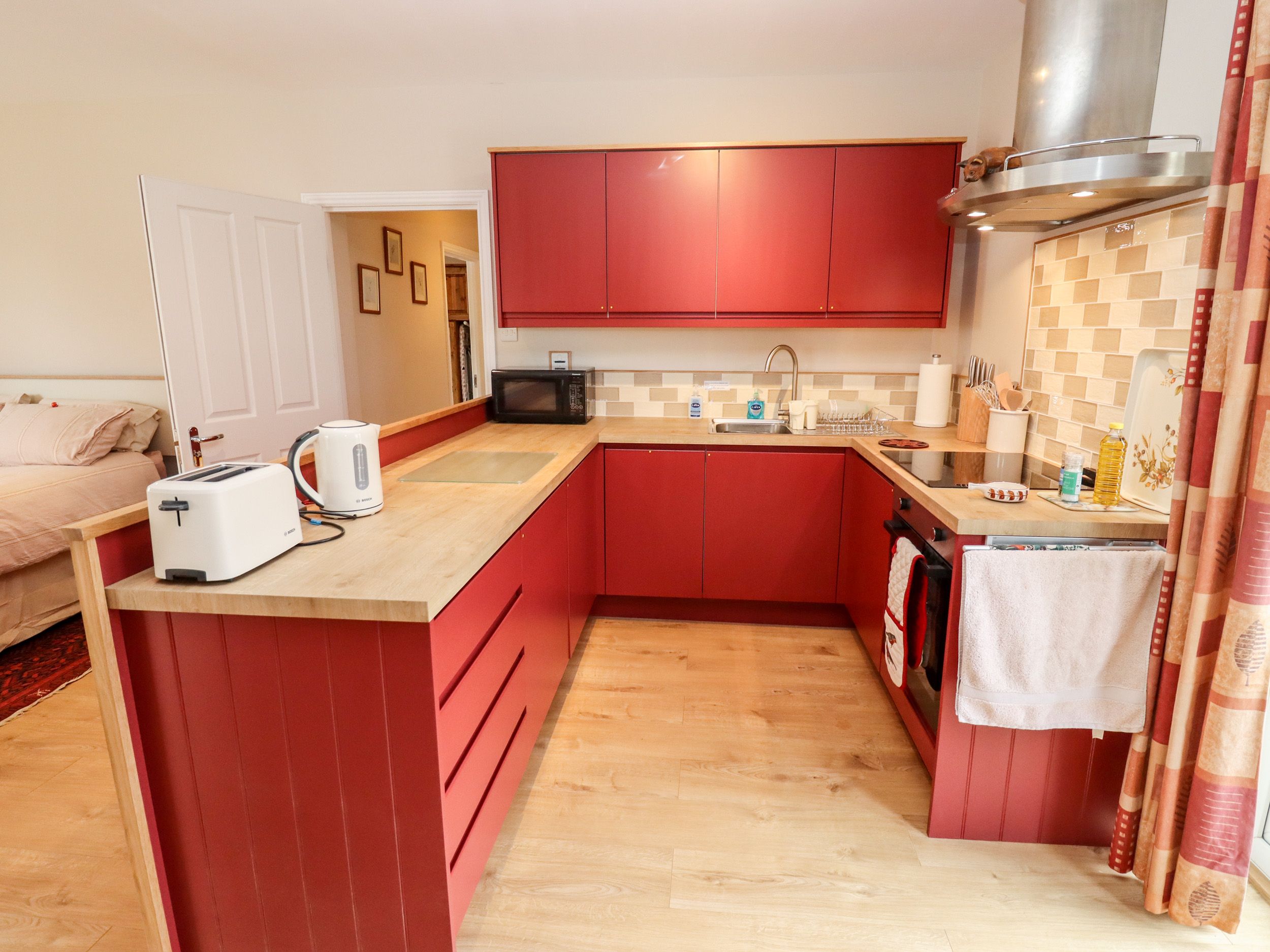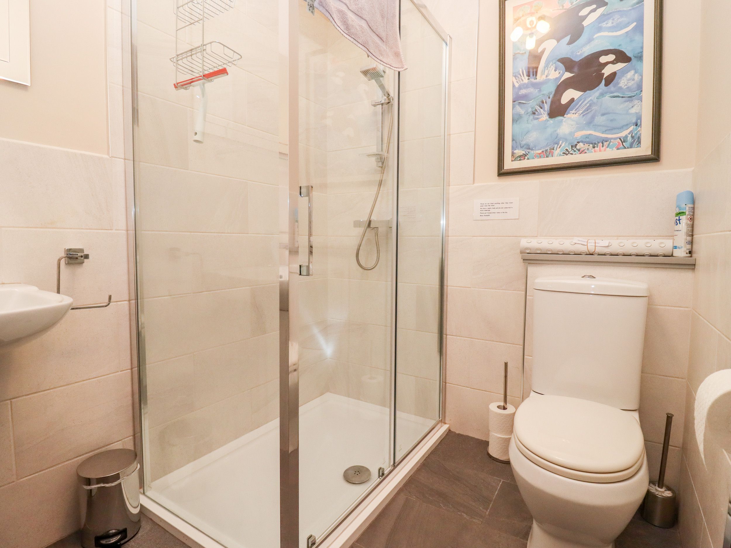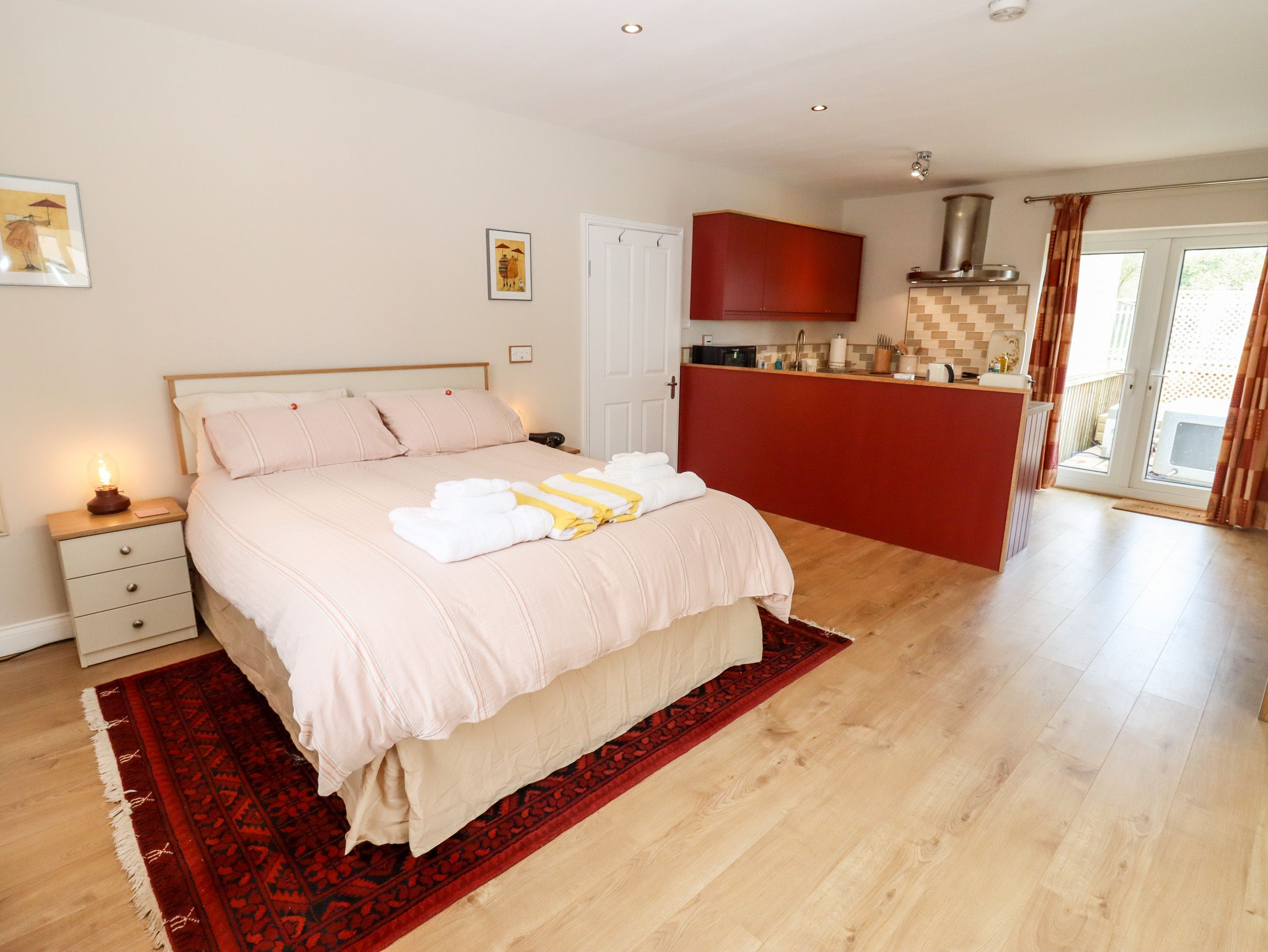 Accomodation Details Ground floor apartment. Studio-style layout with king-size bed, kitchen, dining area and conservatory. Utility room. Fridge-freezer is available and switched on if pre-ordered. Shower room with shower, hand basin, heated towel rail and WC. Patio with dining area and hot tub