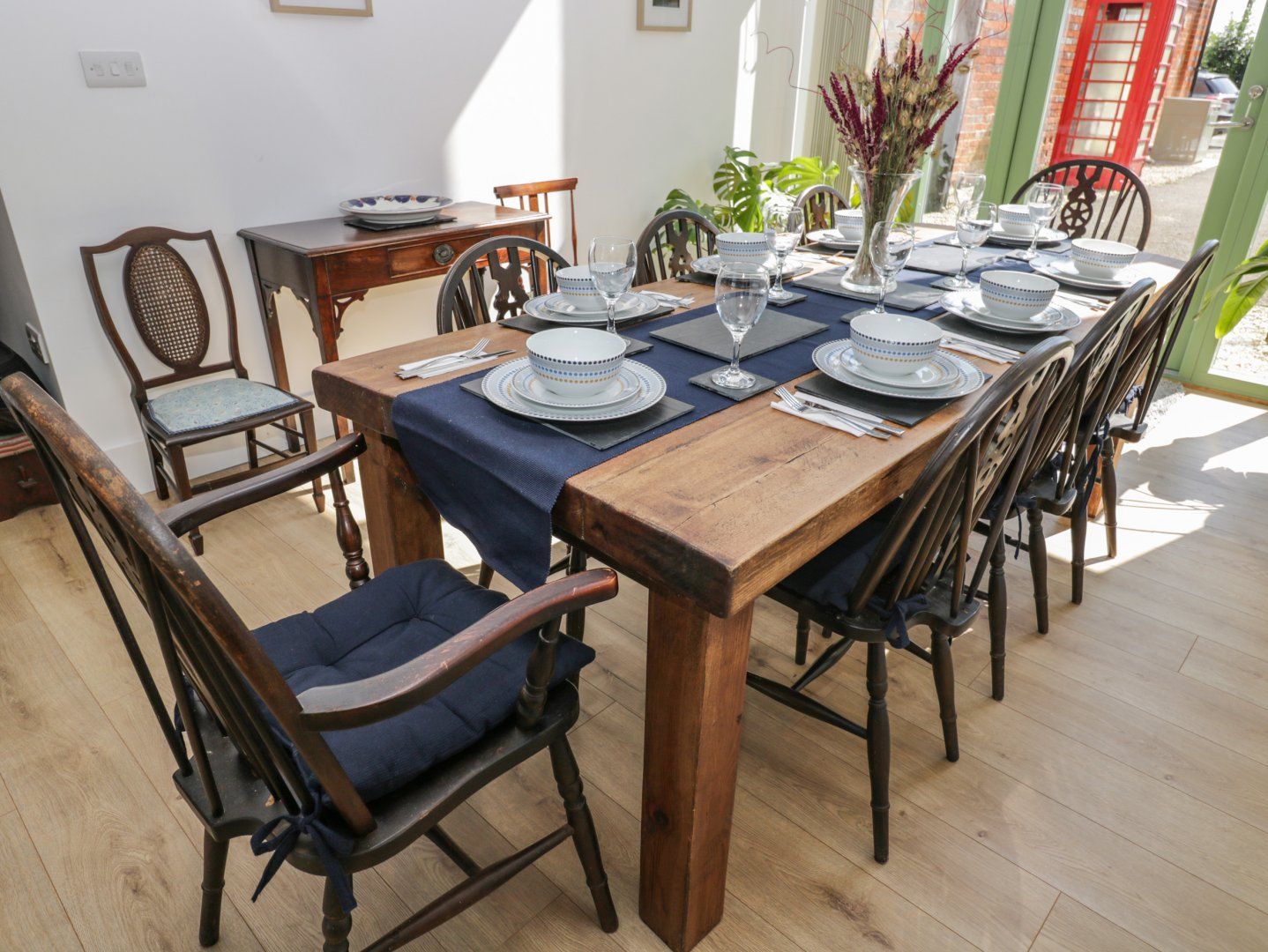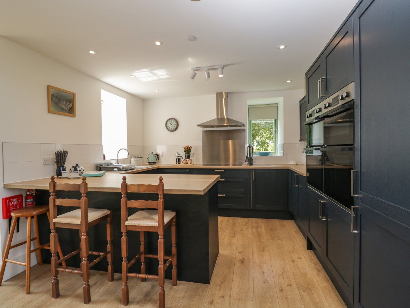 Amenities Underfloor heating with woodburning stove. Two double electric ovens, hob, microwave, fridge/freezer, washing machine, dishwasher. Smart TV and WiFi. Fuel, power and starter for woodburning stove inc. in rent. Bed linen and towels inc. in rent. Off-road parking for 3 cars. Front patio with furniture and barbecue, a small football pitch and further seating area with barbecue. Sorry, no pets and no smoking. Shop 1.5 miles and pub 1.3 miles. This property can be booking in conjunction to 1114677 and 1114678 to sleep a total of 14.