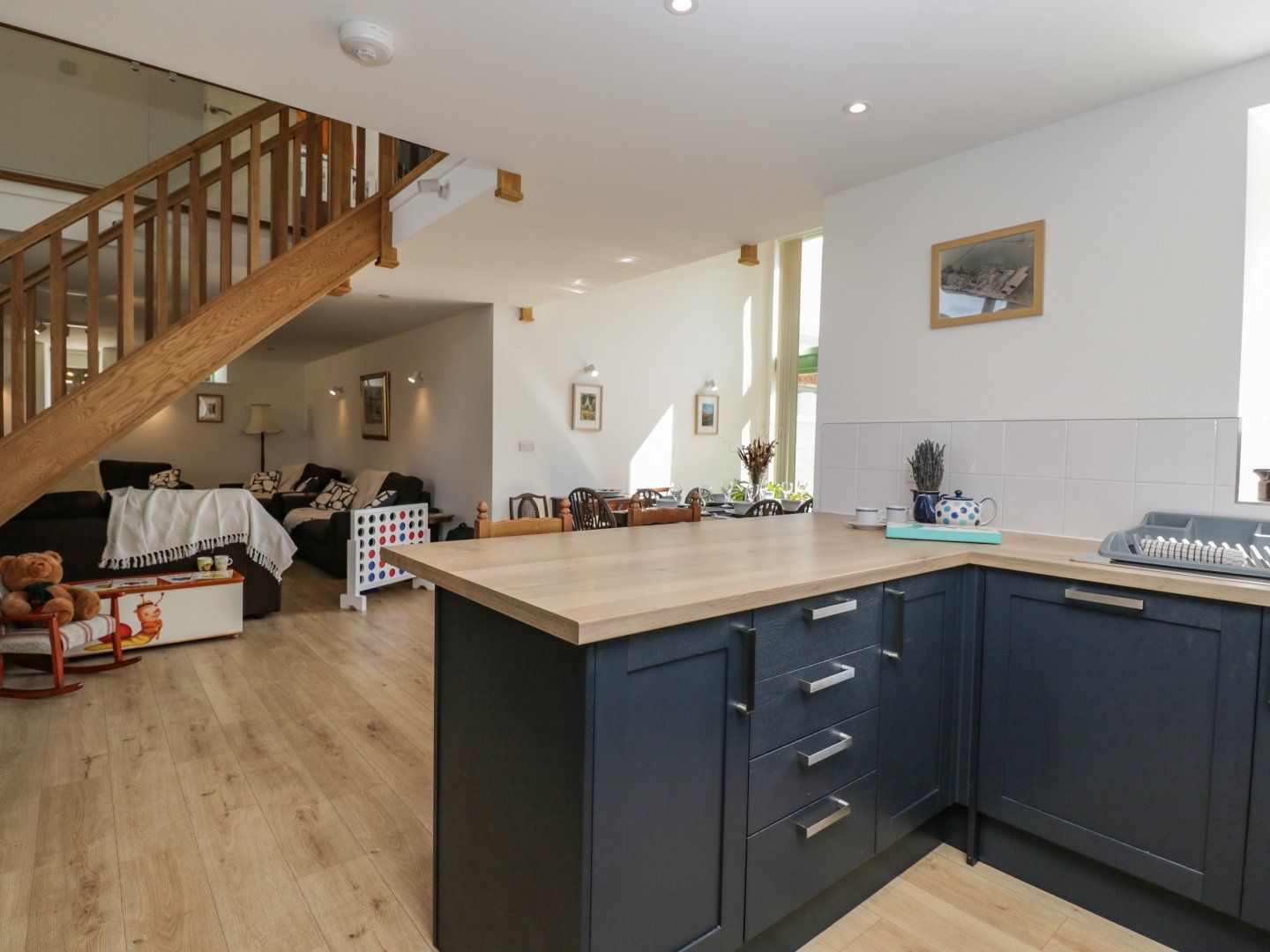 Accomodation Details Sykes Gem Awards 2024 Silver winner for Best Farm Stay. Three bedrooms: 2 x king-size with en-suite walk-in shower, basin and WC, 1 x family room with two adult bunks beds with en-suite walk-in shower, basin and WC. Cloakroom with basin and WC. Open-plan living space with kitchen, dining area and sitting area with woodburning stove. Utility