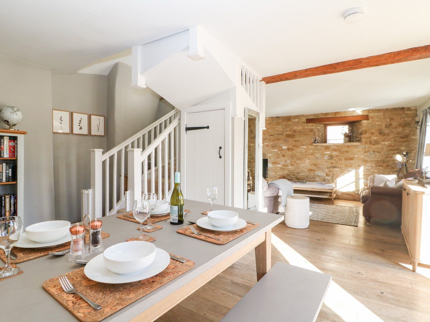 Holiday home The Tap Room is a beautiful Grade II listed holiday retreat in the picturesque village of Kingham. Dating back to the 17th century and formerly the village cider store, this quaint cottage is surrounded by stunning countryside and is the ideal base for a group of friends or small family who are looking to explore the region. Upon arrival, drive to the rear of the property where you can park your car within the open carport and make your way to the back door which opens directly into the dining area, that is flooded with light from the two floor-to-ceiling windows which frame the back door, offering delightful views of the garden. Moving through to the adjoining sitting room, that is surrounded by Cotswold stone feature wall, exposed wooden beams and attractive wooden floors, you can relax with your loved ones on the sofa’s as you enjoy a games night with the selection of games and cards available. The kitchen is well-equipped for rustling up and delicious meal before you and your loved ones retreat to the wooden dining table to catch up and plan your itinerary for the wonderful days that lie ahead. Enjoy a relaxing bath in the contemporary bathroom complete with underfloor heating and a quaint exposed Cotswold stone windowsill, before heading up the stairs where you have a choice from two elegant bedrooms; the master has an eye-catching exposed Cotswold stone feature wall, exposed wooden beams, a Velux window that bathes the room in natural light and an inviting king-size divan bed, the second bedroom is in the eaves of the property and also boasts an exposed Cotswold stone wall, with Velux windows overlooking the garden, with twin divan beds. Catch the sunrise in the early hours in the stunning, enclosed, wrap-around garden with a little patio area with ample seating and a barbecue available for guests to use in summer, and a sizeable lawn area, perfect for your furry friend to stretch their legs, which is bordered by attractive leafy shrubs and lavender plants.
