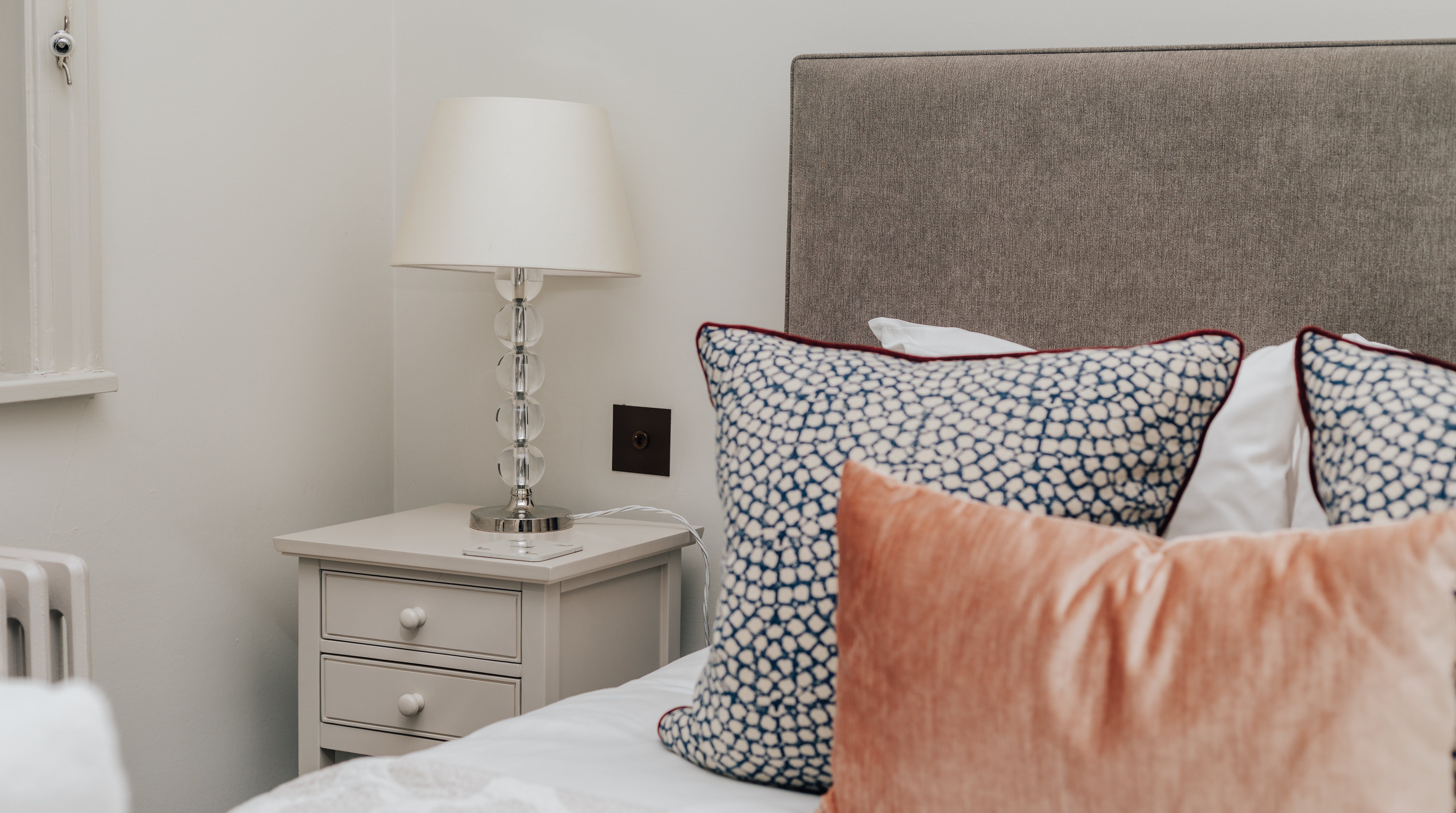In a city as historic as Oxford, famous buildings and heritage sites are around every corner. You'll find this cosy apartment on one of the city's most iconic and picturesque residential streets – noted figures like Harriet Shaw Weaver, John Edward Campbell and Sir Richard Doll all called this road home. It's the perfect spot for exploring this scholarly area, as Oxford's bustling centre and its array of pubs, landmarks and colleges are just a few minutes away by bus (or a twenty-minute walk if you want to stretch your legs). After a long day filled with sightseeing, book browsing and delicious eats, come home and unwind in this stylish apartment. Sink into the sumptuous sofas with a glass of wine and a good book, whip up a meal in the sleek kitchen or, when the weather is nice, retreat to the private garden for alfresco drinks in the evening sun. We love the traditional, sophisticated style inside – features like the original fireplace have been lovingly preserved, but white walls, gold accents and a stylish contemporary kitchen keep things modern. Whether you're snoozing in the comfortable bedrooms, relaxing under the rainfall shower or working remotely at the desk, this Oxford flat is sure to have you feeling right at home in no time.