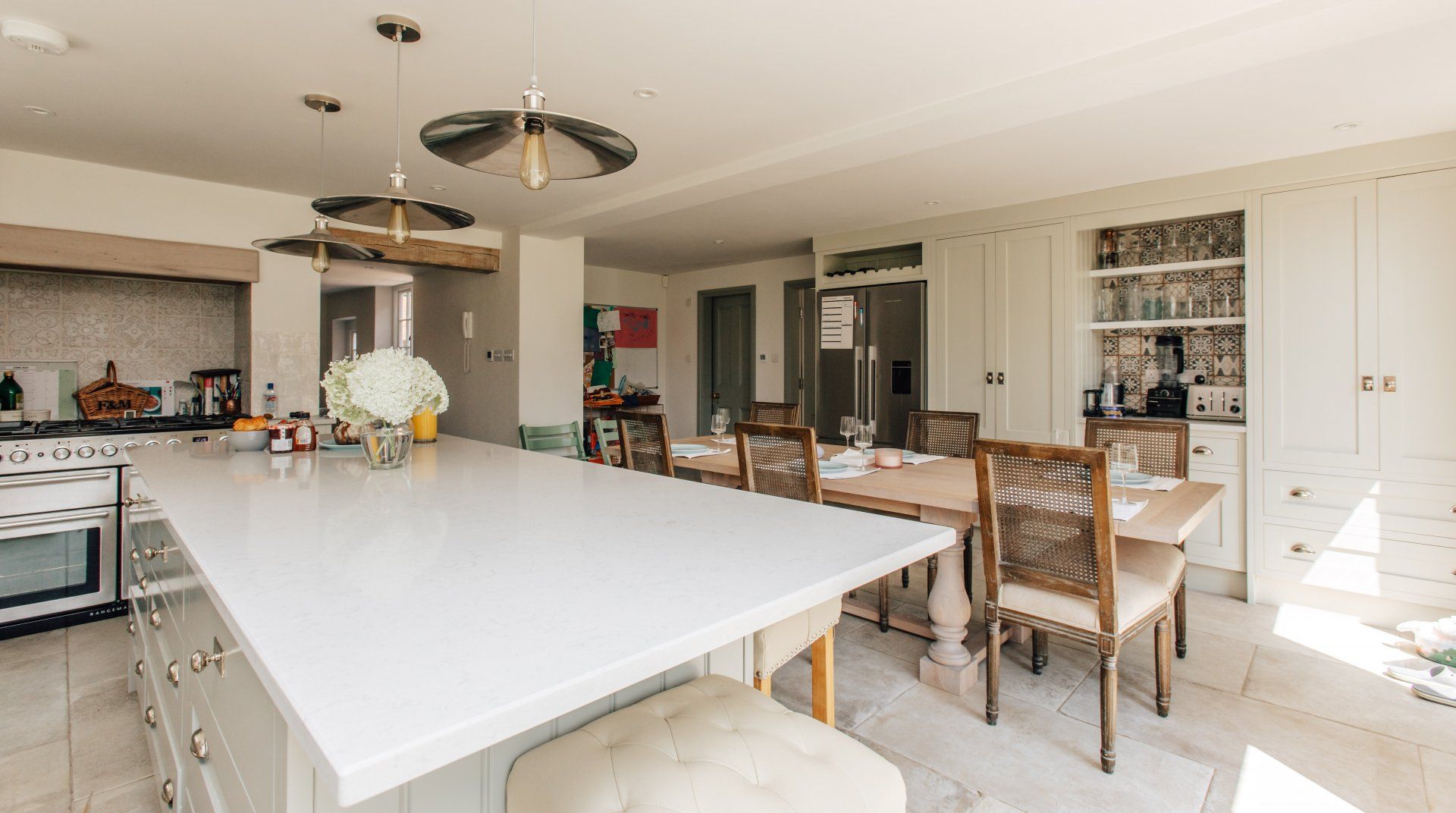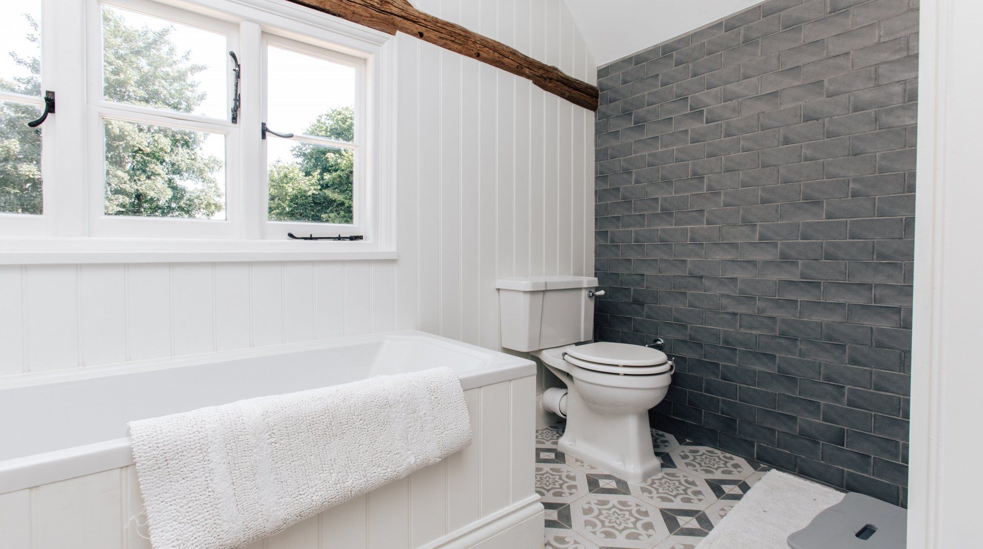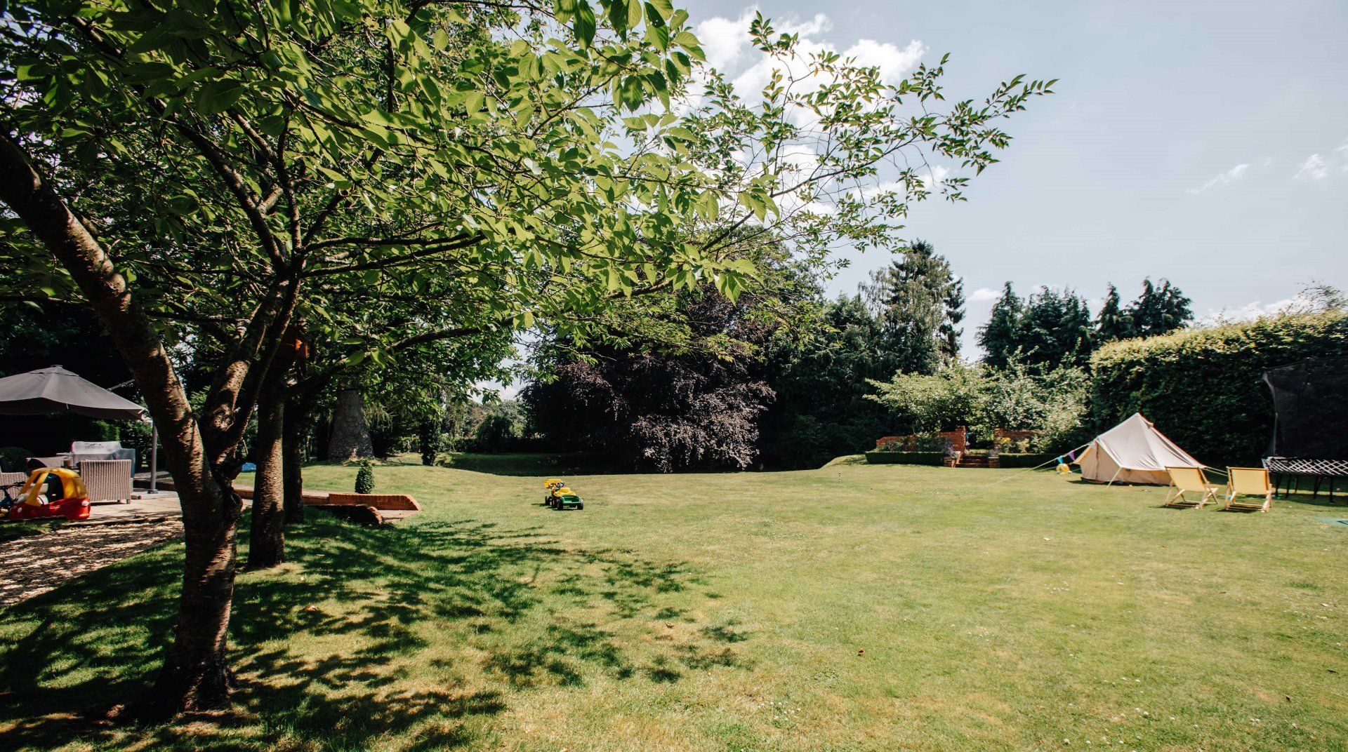 Picture a quiet village in the Chiltern Hills, with a gorgeous redbrick house, clematis scaling its exterior and a bloom of white hydrangea to greet you upon entry. Fortunately, it’s not too good to be true, you’ll find this idyllic escape on the cusp of Sonning Common. Inside, it’s a sophisticated blend of modern touches and traditional country style, with carefully restored original timber beams for added charm. A light, bright kitchen gives way to the acre of gardens—the real star of the show. While the little ones are enthralled by the play area and the big kids are practicing their swings at the golf net, start up the wood-fired pizza oven or go apple picking in the fruit orchard. On balmy Thursday evenings during the summer, there’s a tractor trailer pub crawl but if you fancy staying closer to home, you’ll find a cosy inn just across the road.