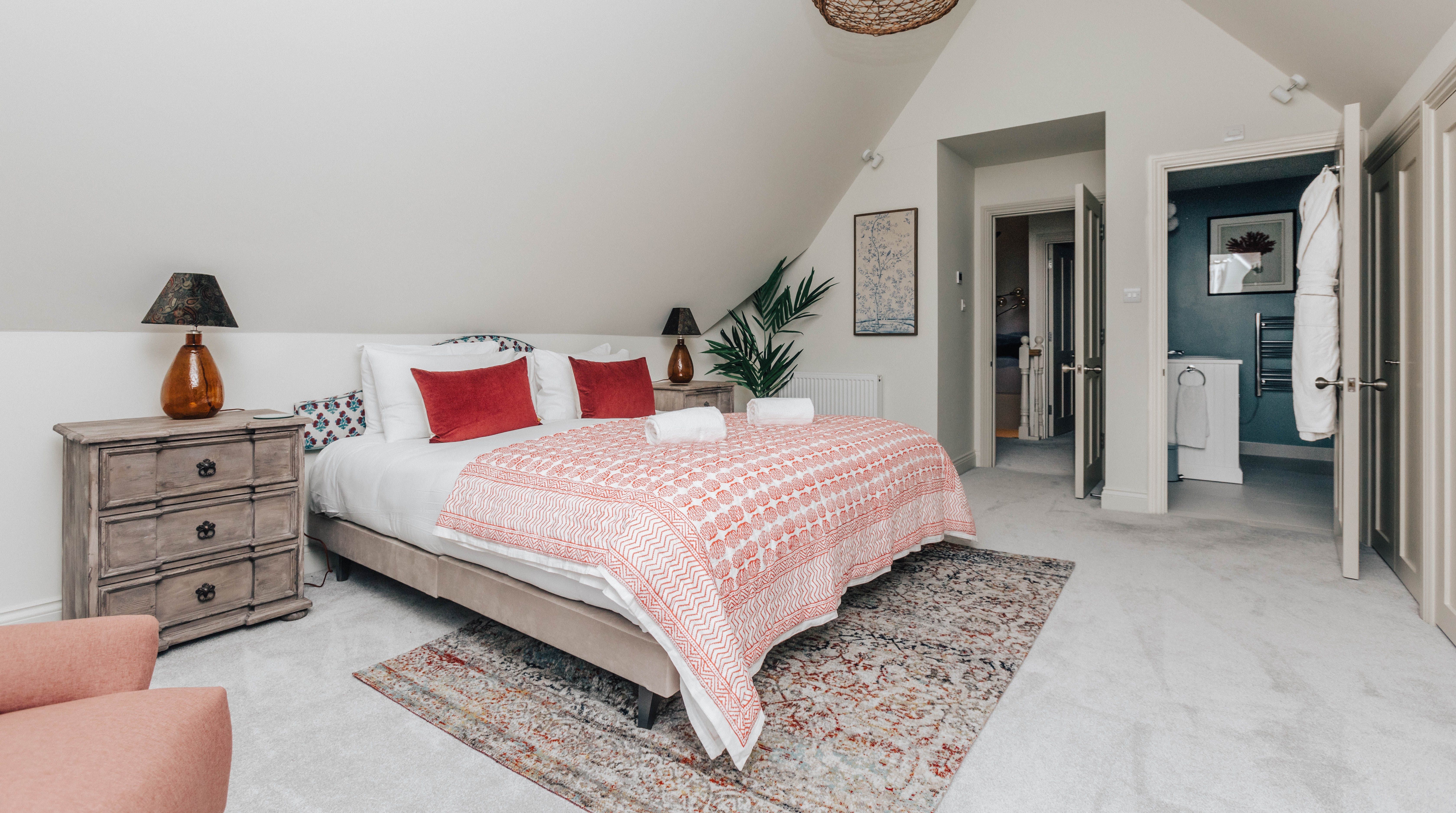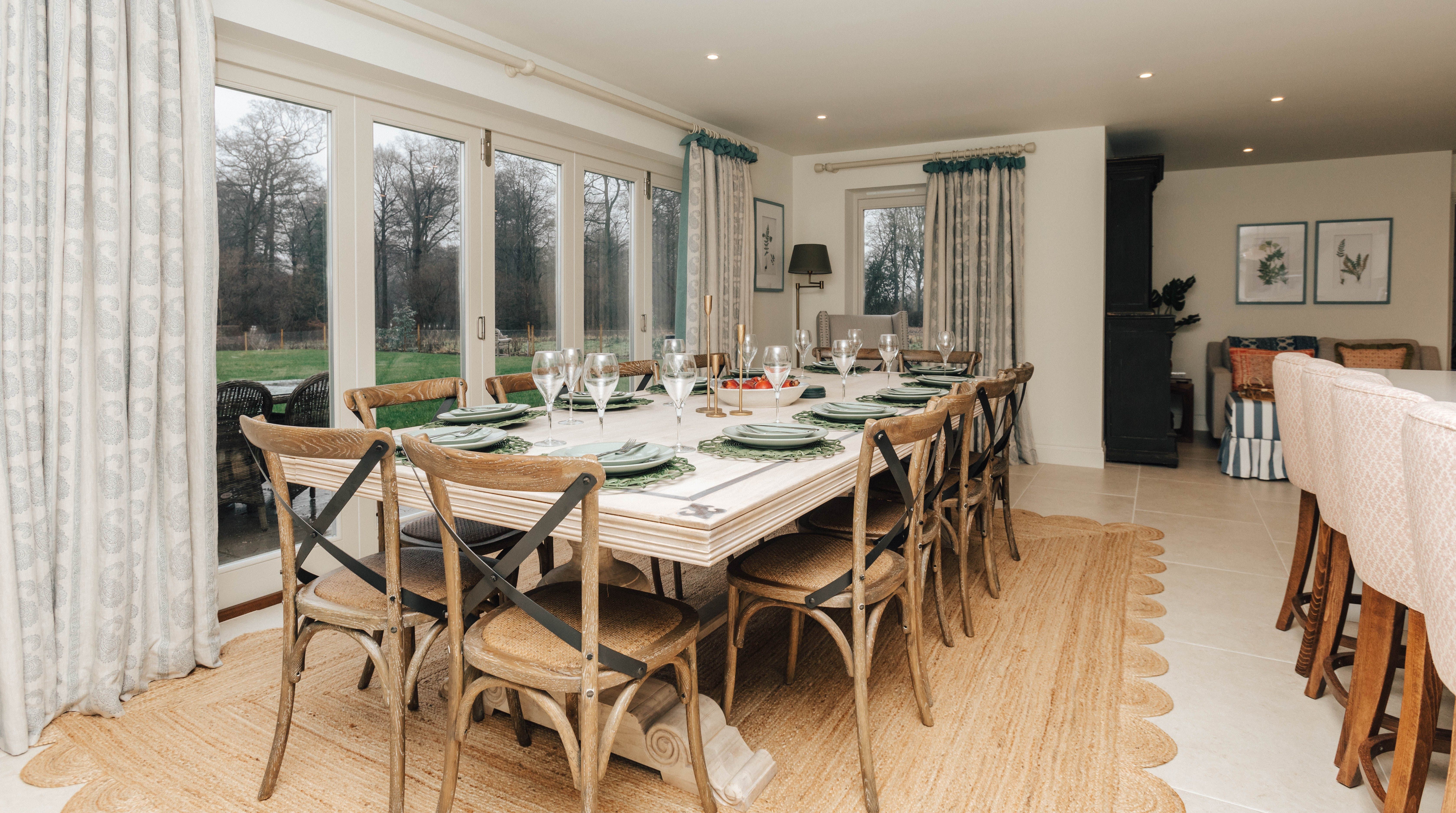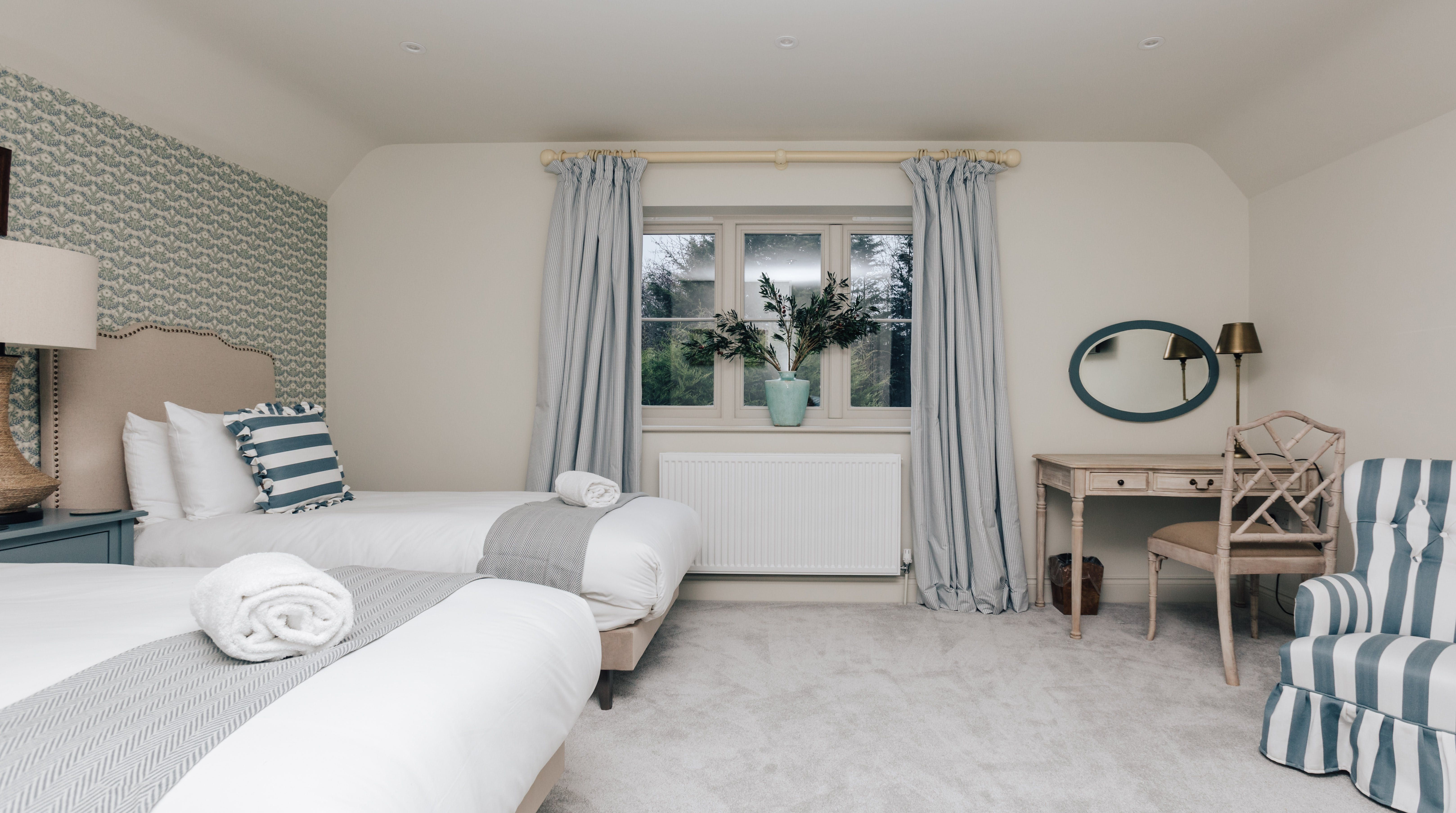 Nestled away in rural Oxfordshire, you'll find this modern manor home that's sure to make any family get-together an unforgettable one. Everything feels super-sized here, from the generous bedrooms and sleek white kitchen complete with an island to the two separate living rooms. The design is rustic-inspired without feeling dated in any way, especially the bold print wallpaper and natural-themed artwork. Out through the glass doors, there's a large lawn, alfresco seating and even a hot tub, so you can truly soak up the tranquillity of these parts. There are two National Trust sites that can be reached in under ten minutes' drive, while the Warburg Nature Reserve takes sixteen minutes in the car. For a change of pace at any time, the town of Henley-on-Thames is fourteen minutes' drive away, where you'll find independent shops and riverside pubs.