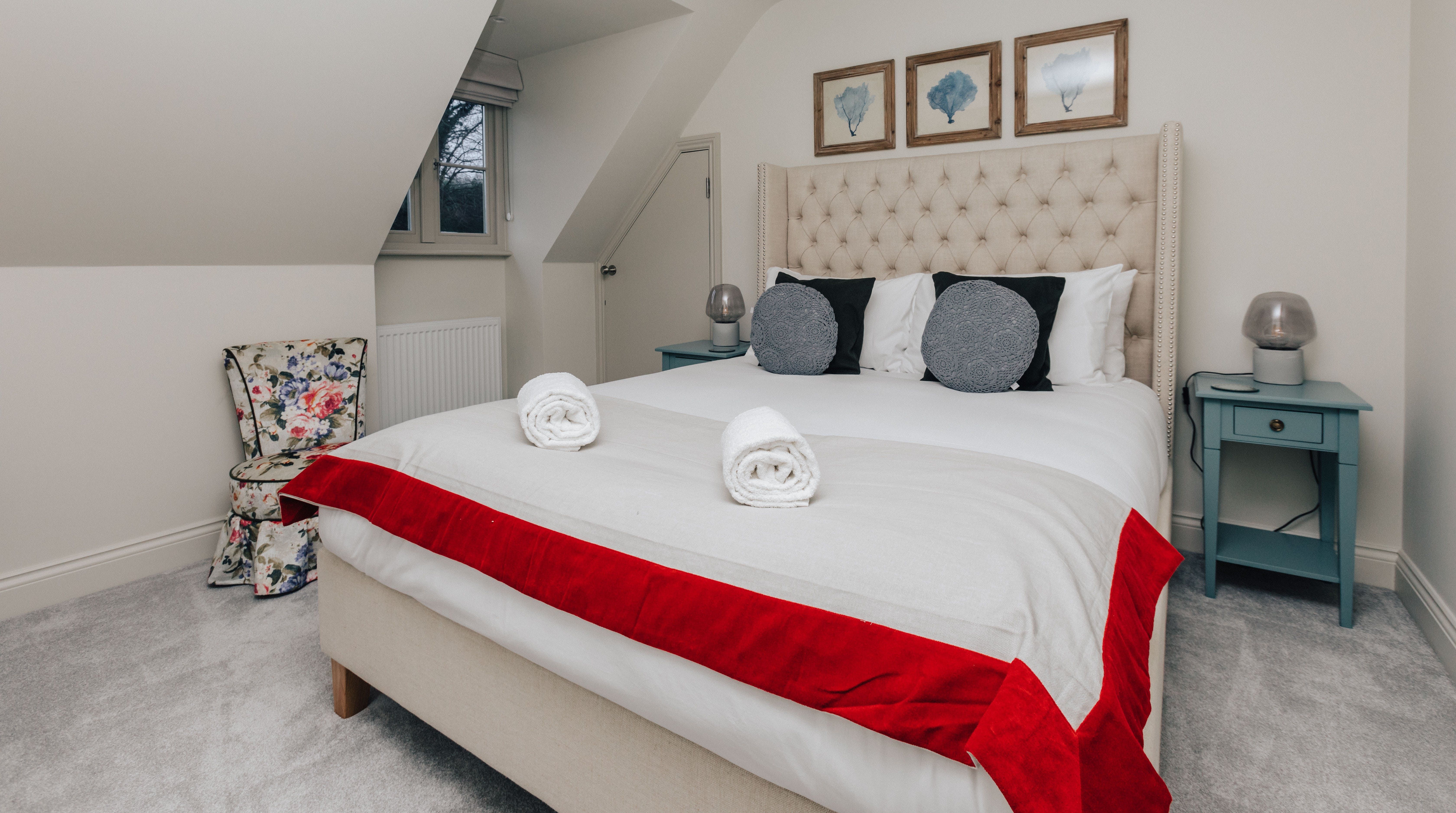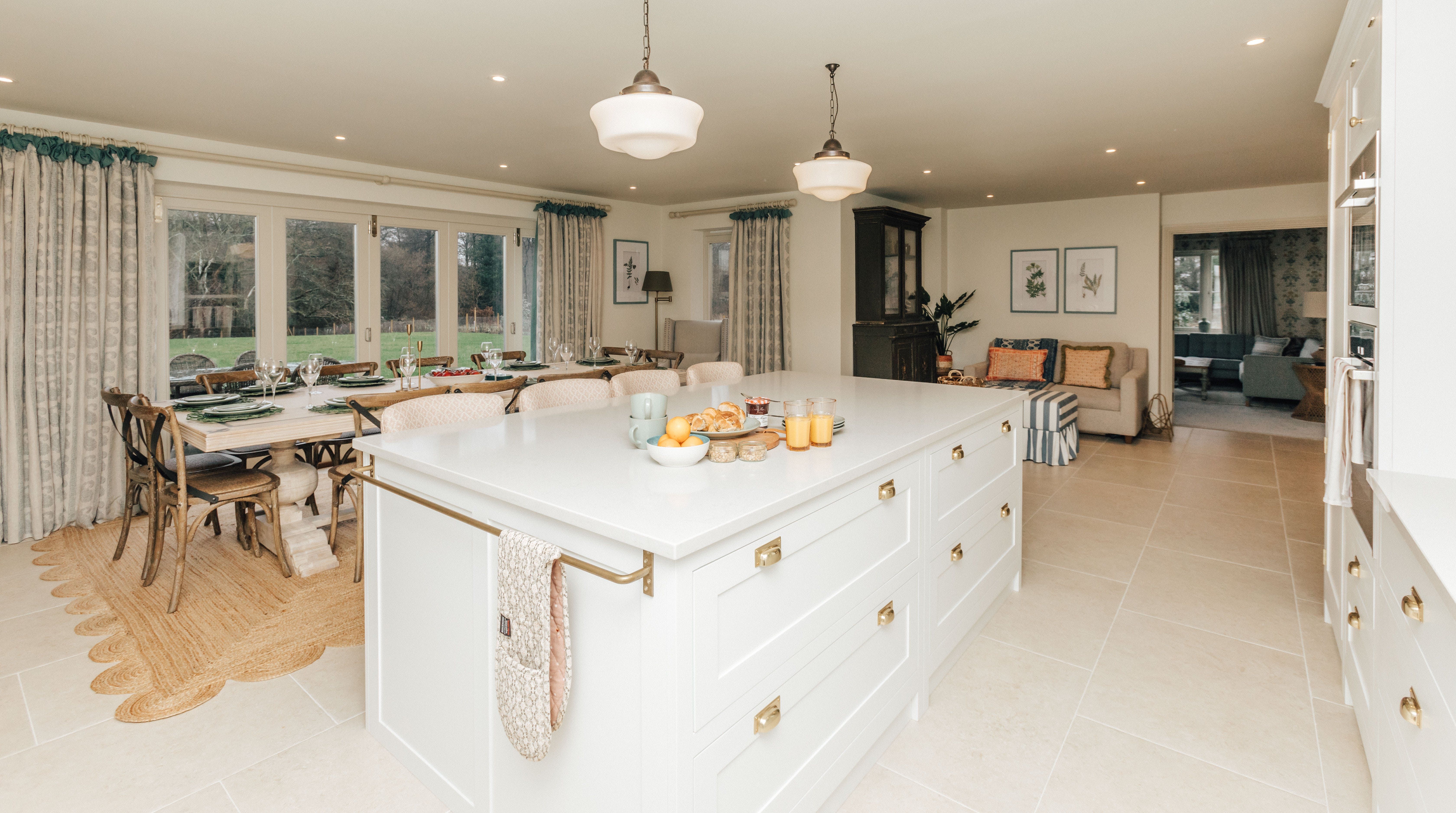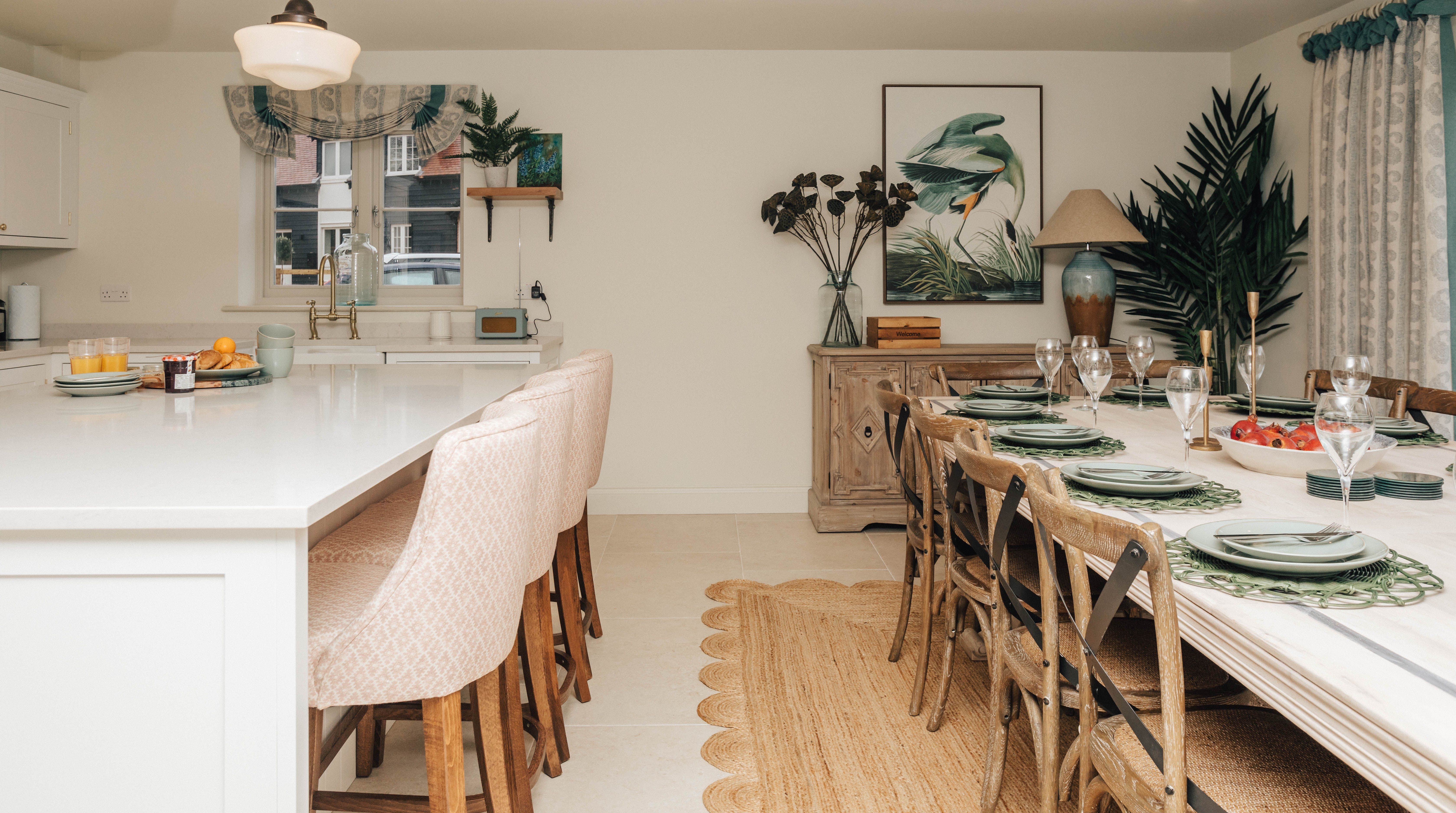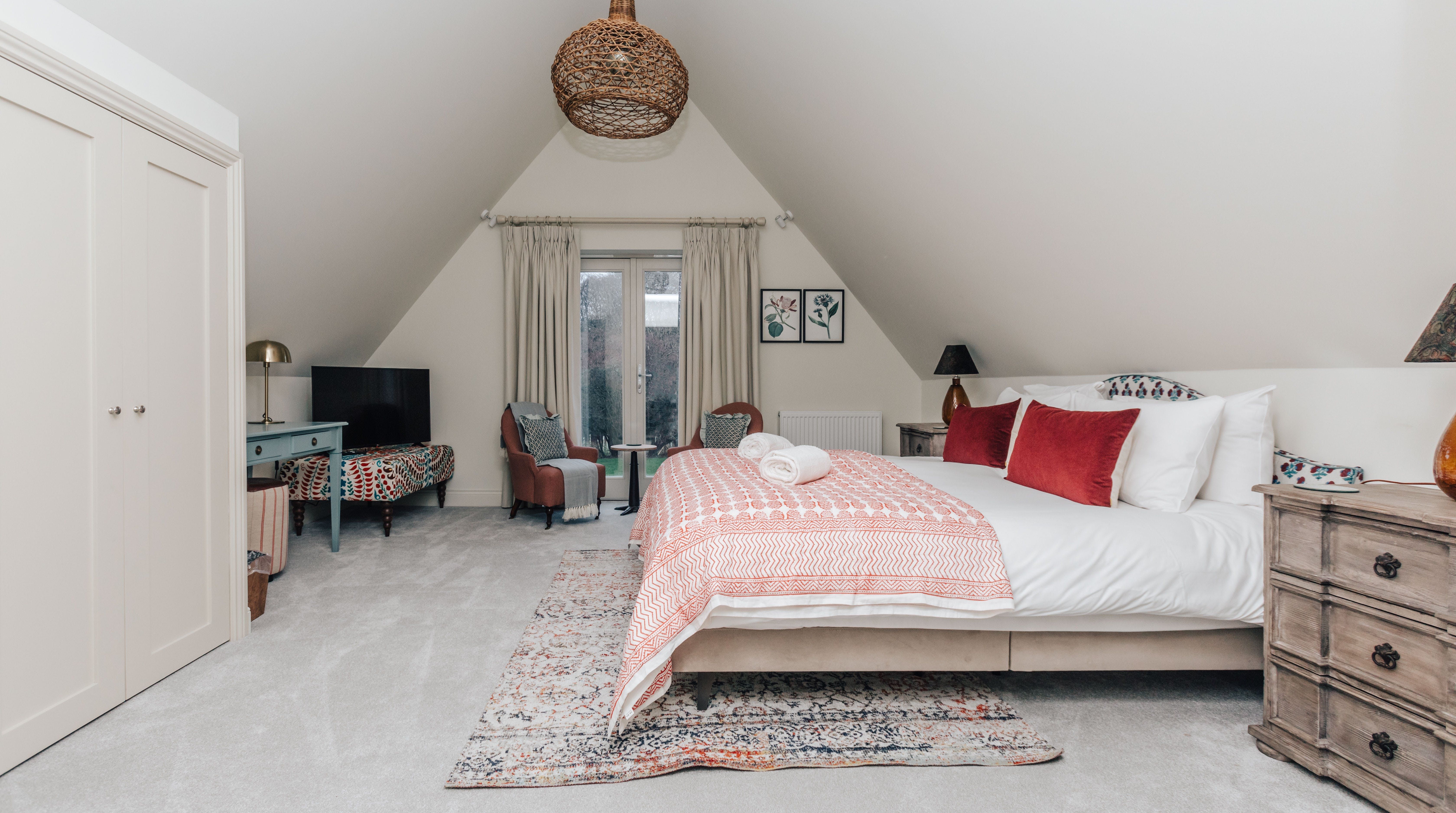 Nestled away in rural Oxfordshire, you'll find this modern manor home that's sure to make any family get-together an unforgettable one. Everything feels super-sized here, from the generous bedrooms and sleek white kitchen complete with an island to the two separate living rooms. The design is rustic-inspired without feeling dated in any way, especially the bold print wallpaper and natural-themed artwork. Out through the glass doors, there's a large lawn, alfresco seating and even a hot tub, so you can truly soak up the tranquillity of these parts. There are two National Trust sites that can be reached in under ten minutes' drive, while the Warburg Nature Reserve takes sixteen minutes in the car. For a change of pace at any time, the town of Henley-on-Thames is fourteen minutes' drive away, where you'll find independent shops and riverside pubs.