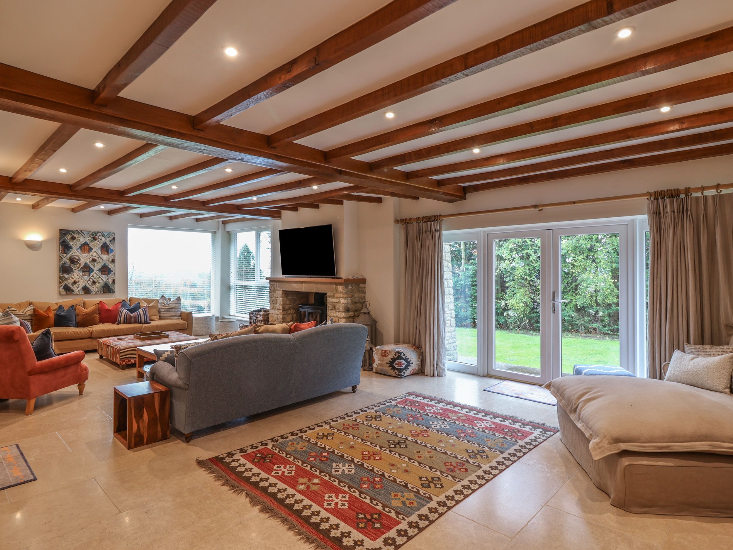 Accomodation Details Single-storey. Eight bedrooms: 1 x king-size, 2 x double, 2 x super-king-size (zip/link can be twin on request) with lounge area, TV, and en-suite bath, walk-in shower, basin, heated towel rail and WC, 3 x twin bedrooms that can be super-king on request (zip/link). Bathroom with bath, walk-in shower, basin, heated towel rail and WC. 2 x shower room with walk-in shower, basin, heated towel rail and WC. Cloakroom with basin and WC. Open-plan living space with kitchen, dining area, and sitting area. Utility. Sitting room with woodburning stove. Snug with TV. Games room