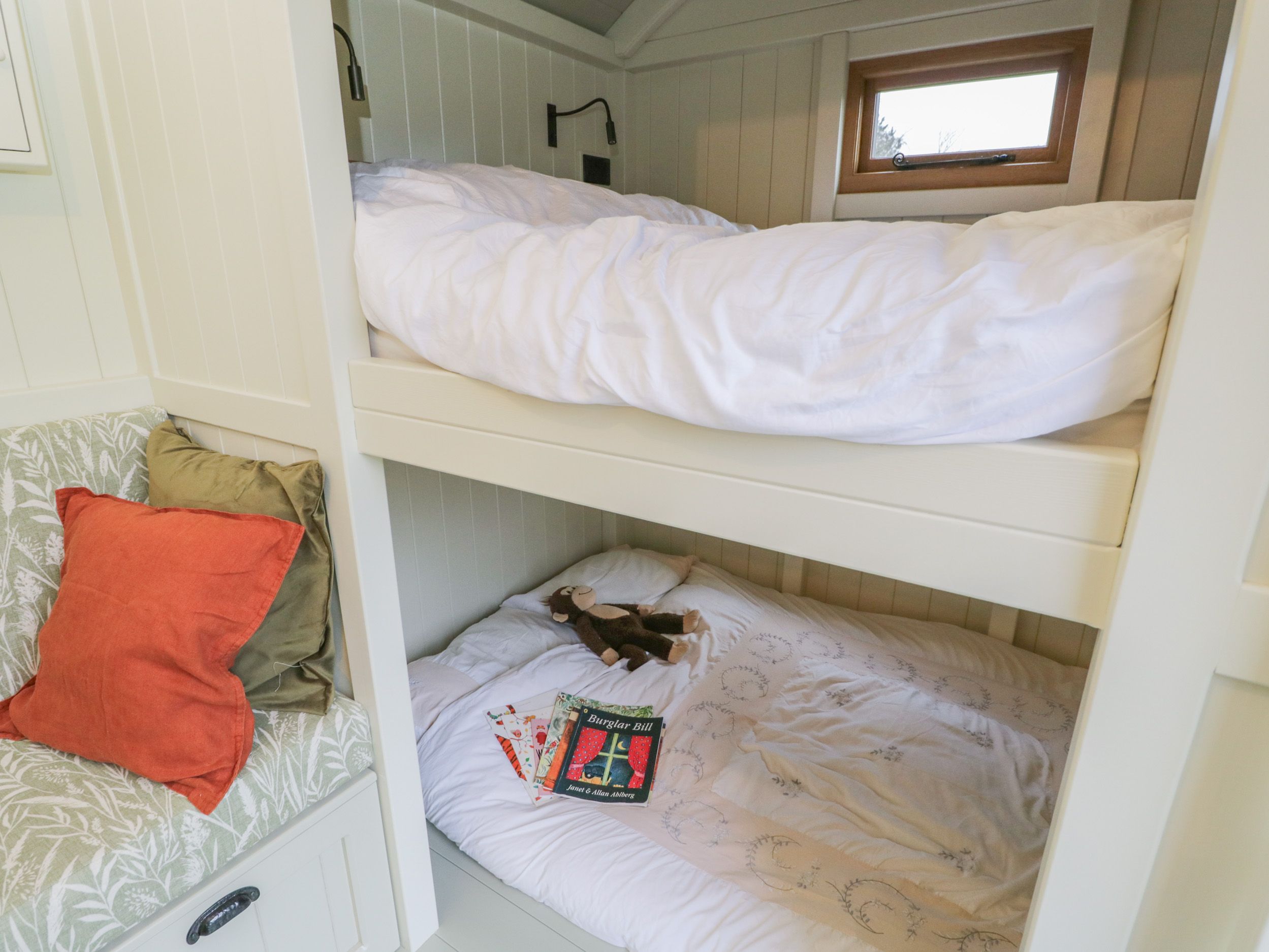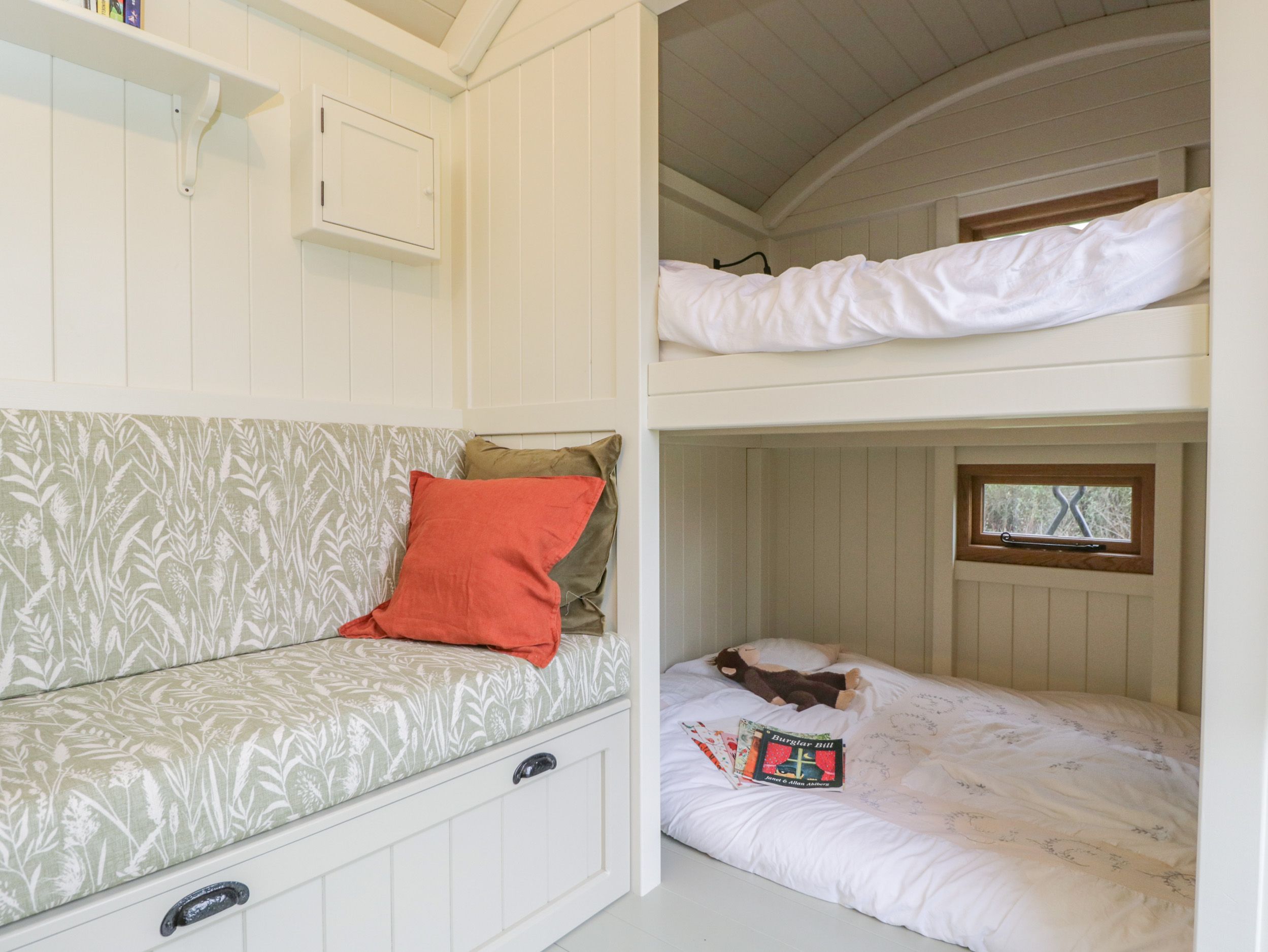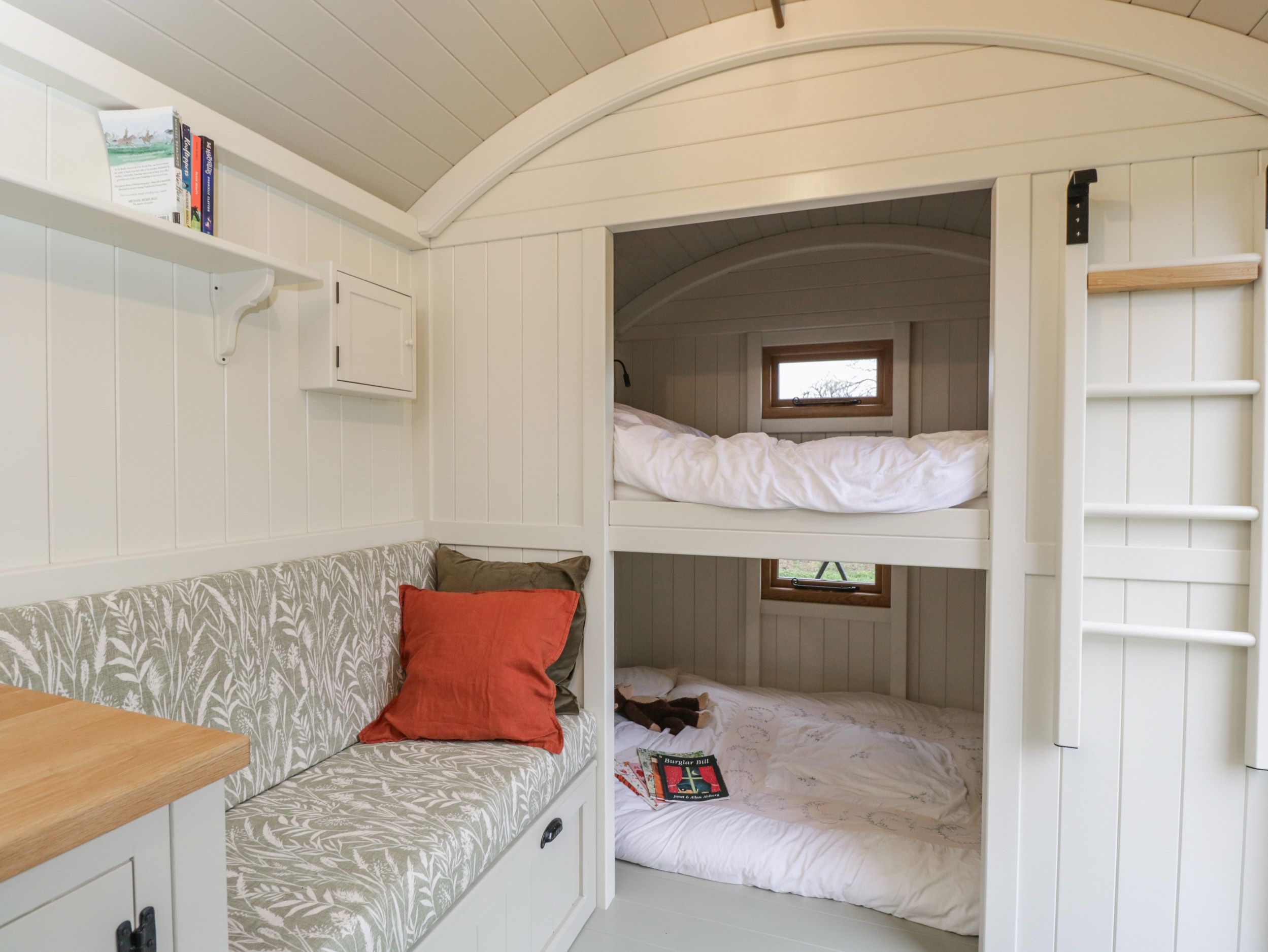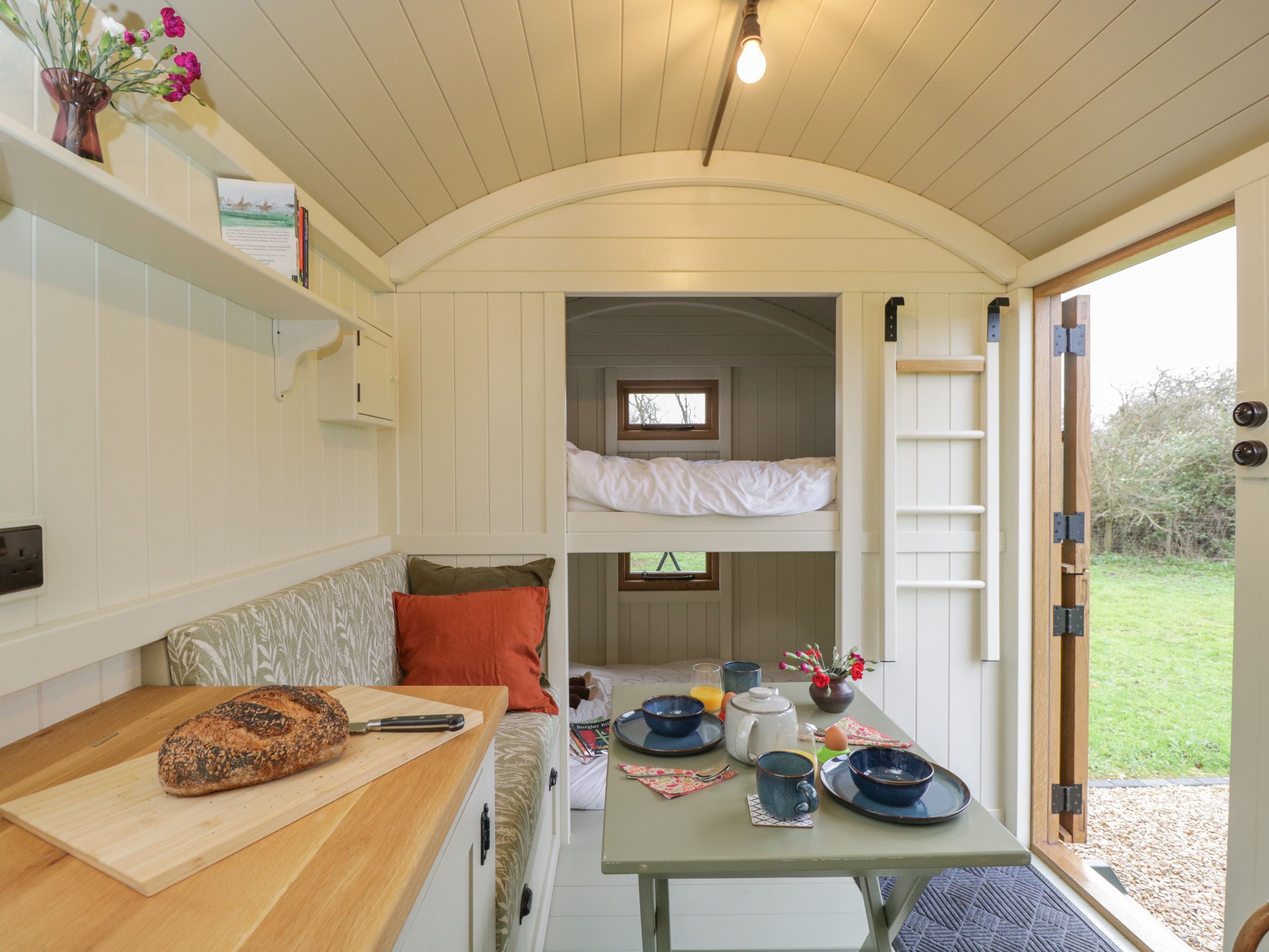 Accomodation Details This property can only sleep 2 Adults and 2 Children. Single-storey. Studio-style layout with bunk bed, kitchen, dining area, and sitting area with woodburning stove. Shower room with walk-in shower, basin, and WC. Apologies we only accommodate holidaymakers, commercial bookings are not accepted.