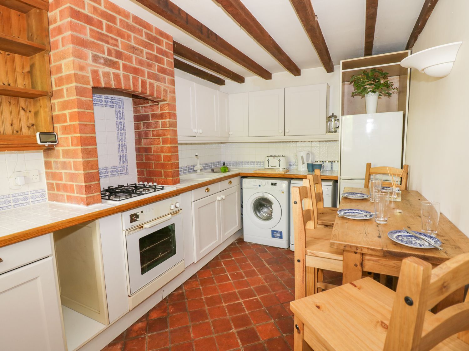 The kitchen has a tiled work surface with grouting , so impossible to keep clean . The double bedroom , not photographed I notice, is the smaller less attractive one.Why? We worked out it would be perfectly a possible to fit the two somewhat chunky single beds in the smaller room & allow couples to enjoy the extra room , wardrobes & pretty fireplace.