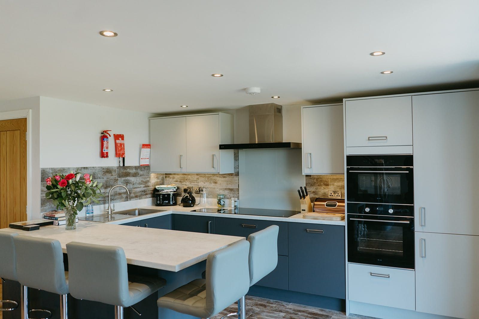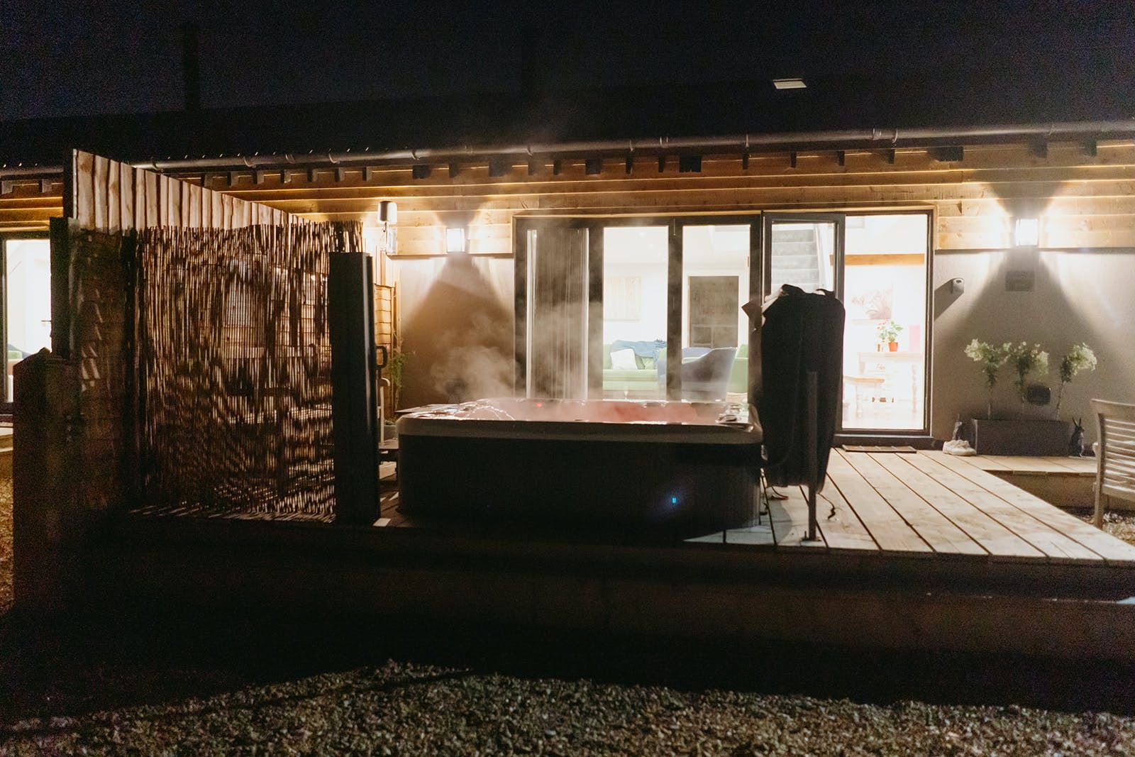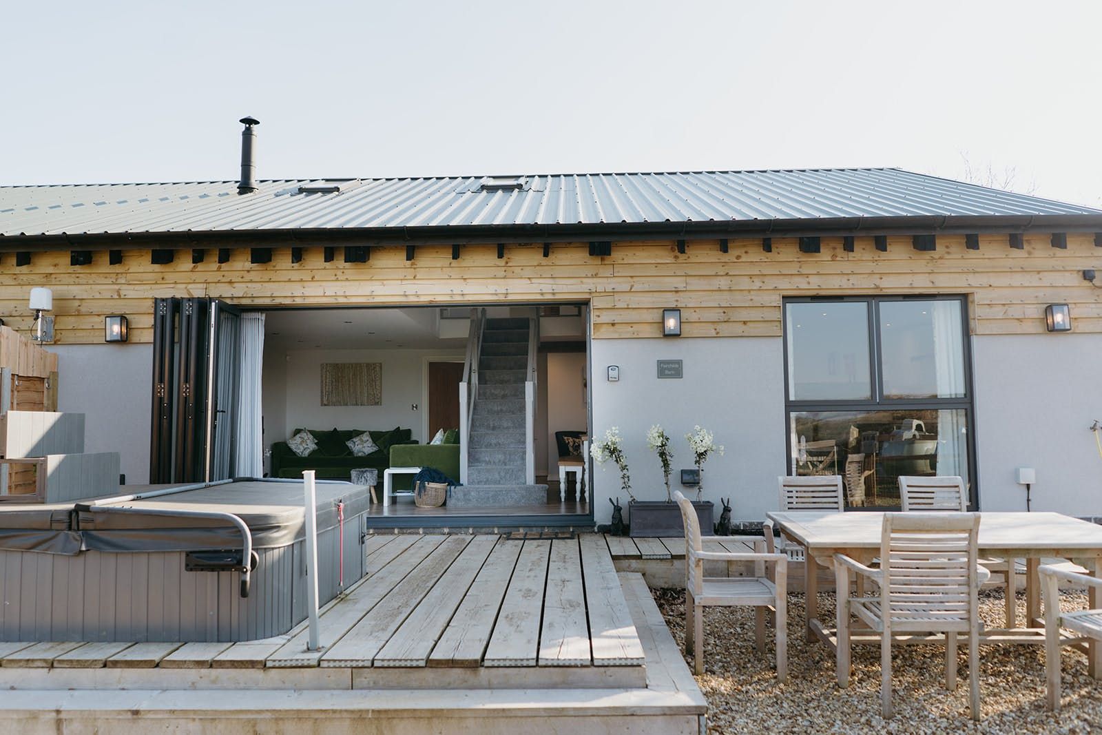 The fact that you’re looking directly onto a meadow filled with sheep might tip you off that this home used to be a barn, but that’s about the only hint you’ll get. Through renovating this space, it’s become more of a modern cabin that just so happens to be in close proximity to livestock. The home is an alluring blend of rustic elements like the wood-burning stove and wooden beams, and modern fixtures like the sleek kitchen. Even though inside is where you’d want to be when there’s a bite in the air – how else would you warm yourself if not curled up with a good book next to the fire? – you’ll be hoping for agreeable weather so you can spend all your time outside. Not only is there a hot tub with your name on it, but dining, drinking, and snacking should be done alfresco whenever possible, in our opinion. For a compromise, you can always open the bi-fold doors whilst building puzzles at the bench-style dining table inside.