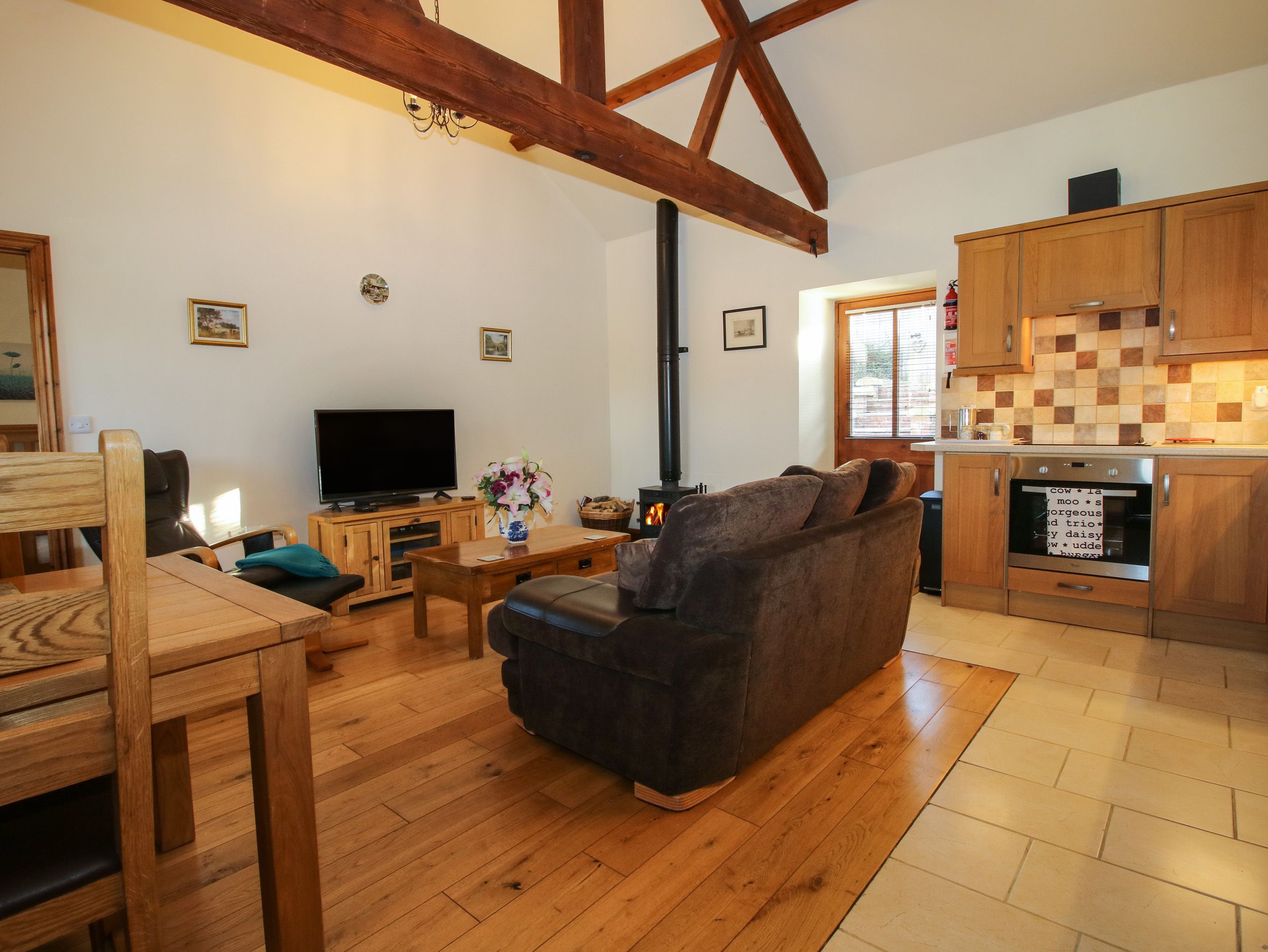 Holiday home The Cart House consists of an open-plan living space with dining seating for two, Smart TV, woodburning stove, and a kitchen with an electric oven, ceramic hob, fridge/freezer, washer/dryer, microwave, dishwasher, kettle, and toaster. The bedroom is a king-size with a Smart TV and en-suite shower room. WiFi, fuel, power, starter pack for woodburning stove, bed linen, and towels are included. Outside, there is an enclosed rear courtyard with patio, furniture, hot tub, and off-road parking for one car. EV charging available. Sorry, no pets and no smoking. Guests can find the closest shop within 5.8 miles, and a pub and restaurant in 1.4 miles. All of this and so much more with a stay at the welcoming The Cart House. Note: There is a small shop on-site which offers various essentials i.e. toothbrushes, crisps, ice cream etc. Note: There is a shared games barn (wheelchair accessible) with pool table, hand football, air hockey, toddler ball-pit and drinks machine. Note: There is a minimum 2 night stay. Please Note the property only accepts a Mon or Fri check in.