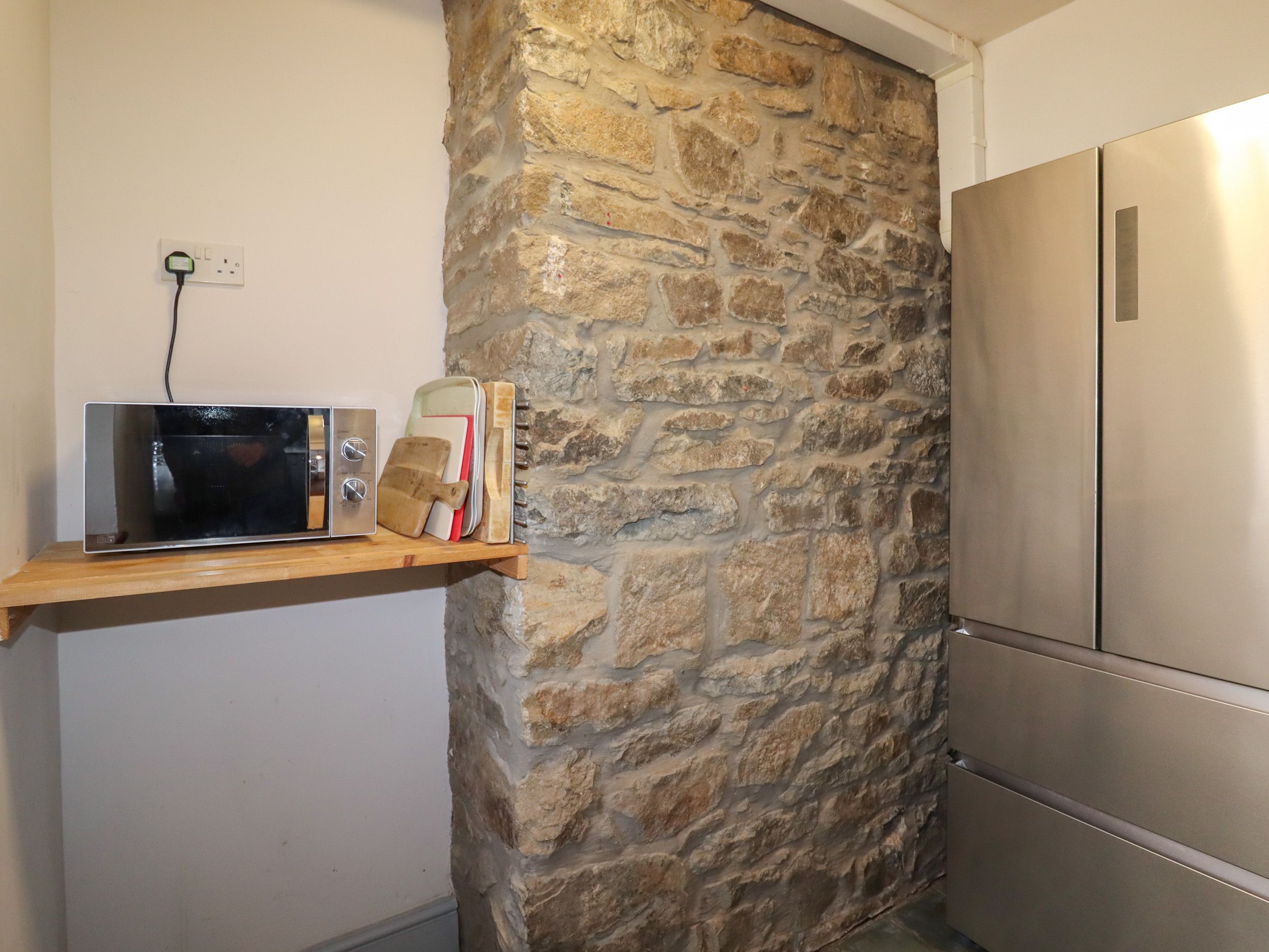 Amenities Central heating and underfloor heating in upstairs bathroom and en-suite. Electric oven and hob, fridge/freezer, microwave, kettle, toaster. Flat-screen TV, Smart TV, WiFi, selection of books. Fuel and power inc. in rent. Bed linen and towels inc. in rent. Off-road parking for 2 cars. Rear garden with lawn, patio, furniture, and hot tub. One well-behaved pet welcome. Sorry, no smoking. Shop and pub 0.4 miles. Note: On-site barn and games room serving hot drinks, alcohol and food