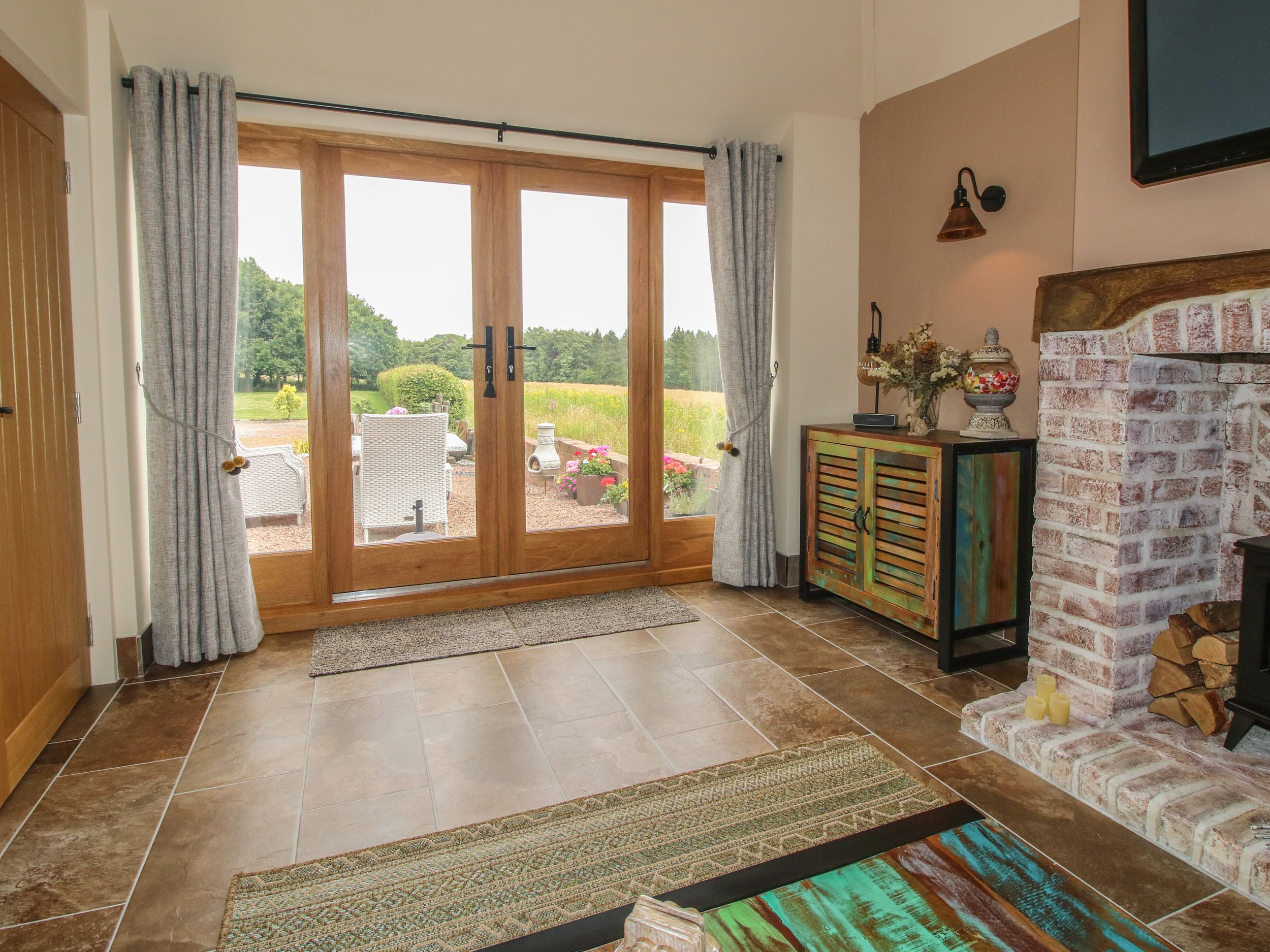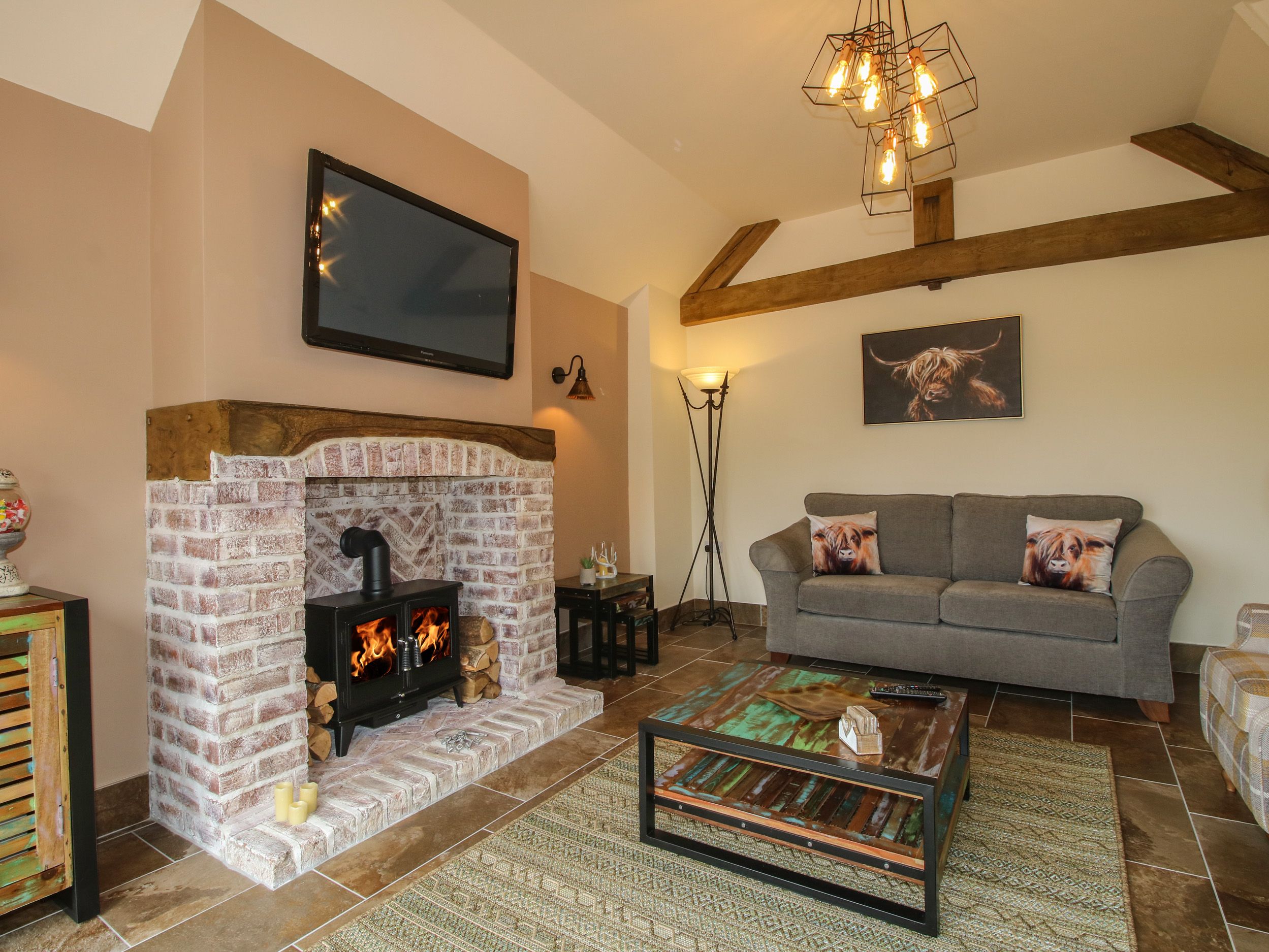 The Hay Loft has a double bedroom with an en-suite walk-in shower, basin, heated towel rail and WC. There's a kitchen/diner equipped with an electric oven and ceramic hob, fridge/freezer and toaster. There's a sitting room with a flame-effect electric fire and Smart TV. Electric heating, WiFi, fuel and power, bed linen and towels are included in the rent. Outside there's a private driveway with ample parking space, a front patio with furniture, hot tub and access to the surrounding fields and woods.. Sorry, smoking permitted outside only. Shop 2.7 miles, pub 2 mile, lake 0.9 miles. Note: Check-in is from 3pm, check-out by 11am. Note: There's underfloor heating in the bathroom. Note: The property is attached to the owner's residence. Note: There's a step up into the bedroom. Note: This property has a Good Housekeeping bond of £200. Please note: There is a multi-camera system at the property, including a Ring camera, for security purposes.