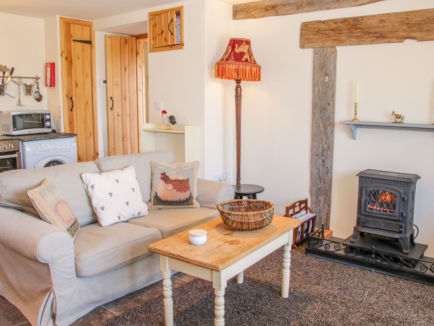 Accomodation Details One bedroom: 1 x king-size. Ground-floor shower room with shower, basin and WC. Open-plan living room with a kitchen, dining area and sitting area with electric woodburning stove.