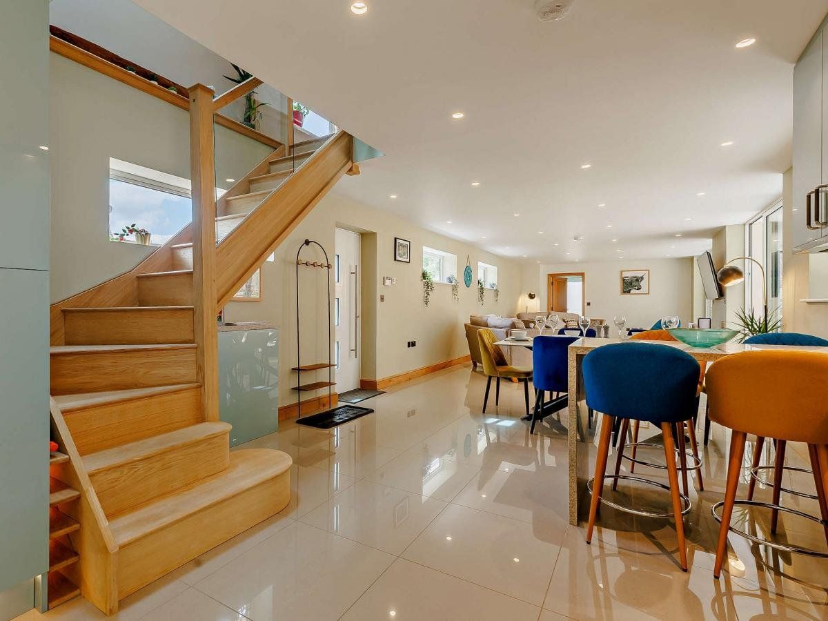 This luxurious six-person property, which used to be a swimming pool, is spacious, bright and stylish, with a large open-plan living space for entertaining guests.