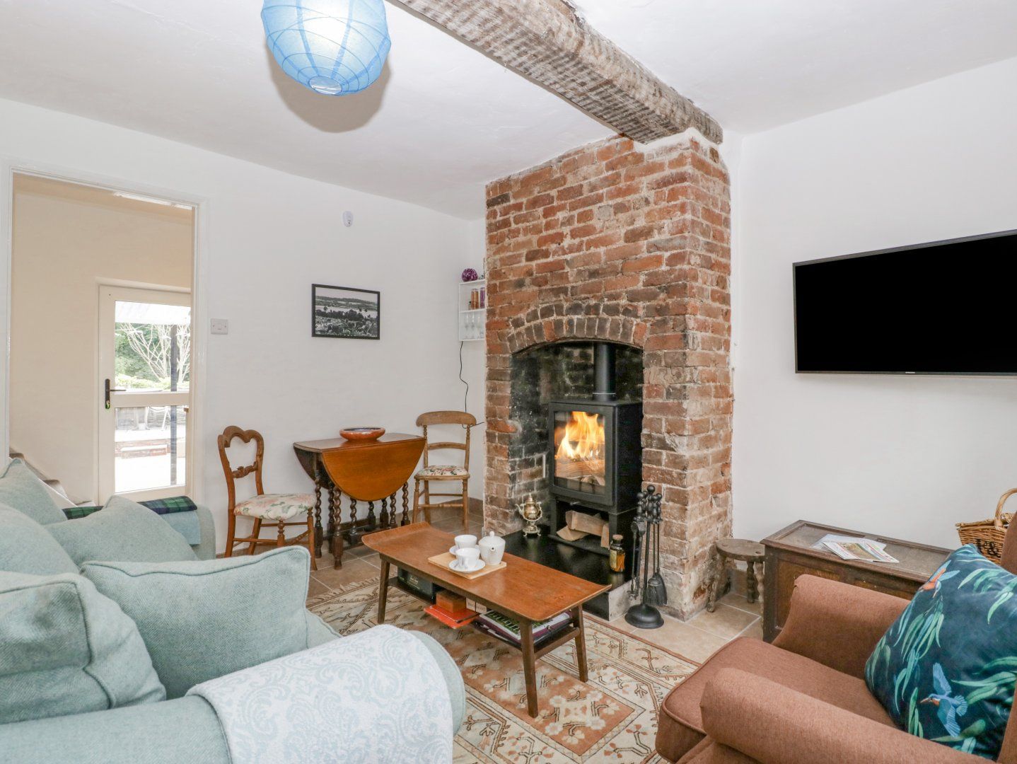 Central heating. Oven and hob, fridge/freezer. WiFi. Fuel and power and starter pack for woodburner inc. in rent. Bed linen and towels inc in rent. Permit parking available less than 0.1 miles over the road. Enclosed rear courtyard with furniture. One well-behaved dog welcome. Sorry, no smoking. Shop 0.4 miles, pub and River Teme 0.1 miles. Please note: This property isn't suitable for those with mobility issues due to the stairs.