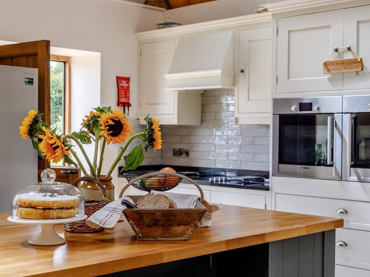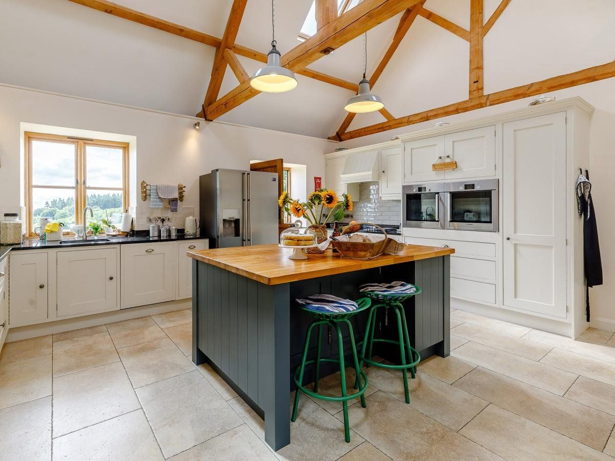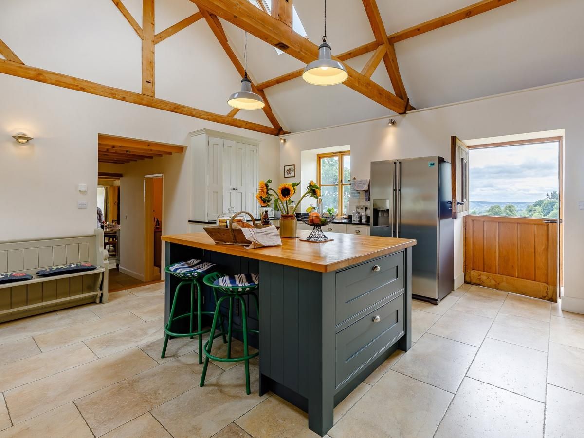 Each of the rooms in this barn has beamed ceilings, and throughout the downstairs is stone-flagged flooring with underfloor heating.