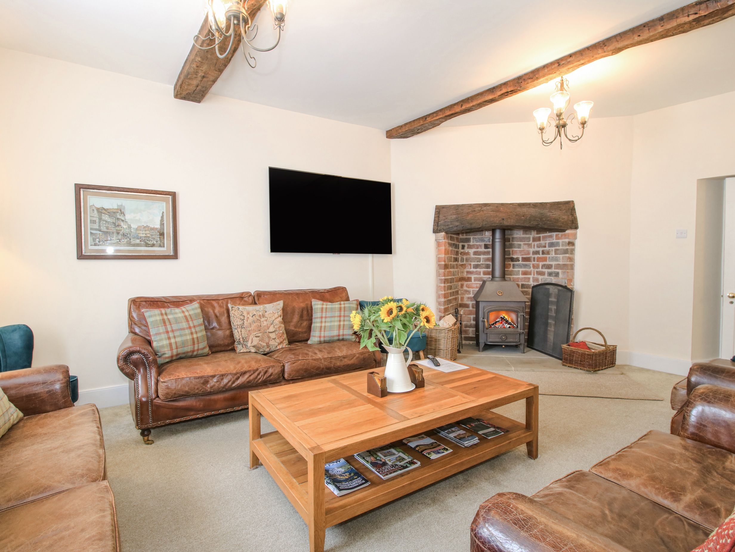 Gas central heating. Electric oven, ceramic hob, microwave, fridge, freezer, washing machine, tumble dryer, dishwasher. 2 x TVs with FreeSat and Blu-ray DVD, WiFi. Fuel, power and starter pack for woodburning stove inc. in rent. Bed linen and towels inc. in rent. Travel cot and highchair. Permit parking provided for 1 car opposite the property, roadside parking available, 24-hour car park is also available. Enclosed rear courtyard garden with furniture and barbecue. Sorry, no pets and no smoking. Shop and pub 0.2 miles. Town centre, castle and leisure centre with swimming pool and spa a short walk away. Commonwealth Alexander Stadium 56.2 miles away. Note: Check in time is 3pm and check out time is 10am. Note: There is a parking permit provided for one car opposite the property. Note: Roadside parking and 24-hour car park is a few minutes walk away from the property. Note: The preferred check-in day is a Friday and a Monday. Note: If you are looking to check in on a bank holiday, please call us to discuss before making the booking. Note: This property requires at least 7 days notice for new bookings, and cannot accept bookings for less than 3 nights