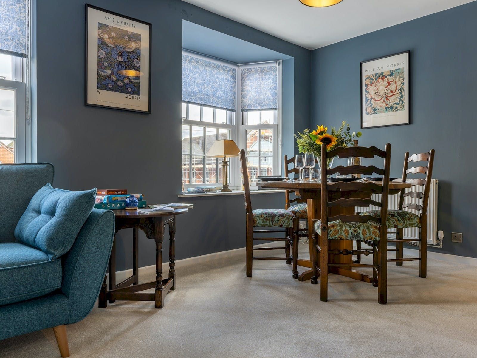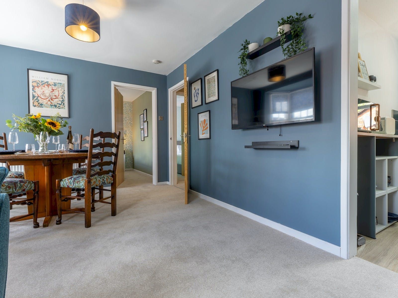 Welcome to our beautiful two-bedroom flat located within about 100 yards of Ludlow's historic town centre. This charming property is adorned with iconic William Morris designs, capturing the essence of art and history. As you enter, you'll be greeted by Morris's floral patterns in the living/dining area, featuring comfortable sofas and a smart TV for relaxation. The fully equipped kitchen, complete with modern appliances, leads to a beautiful dining table surrounded by Morris's striking wallpaper. Both bedrooms offer comfortable double beds adorned with Morris's eye-catching wallpaper. The bathroom boasts a spacious walk-in shower. To make your stay even more convenient, the flat comes with two designated off-road parking spaces—an invaluable asset in Ludlow. Explore the town's medieval architecture, picturesque streets, historic castle, and nearby attractions from this stylish home—a true tribute to William Morris's vision.