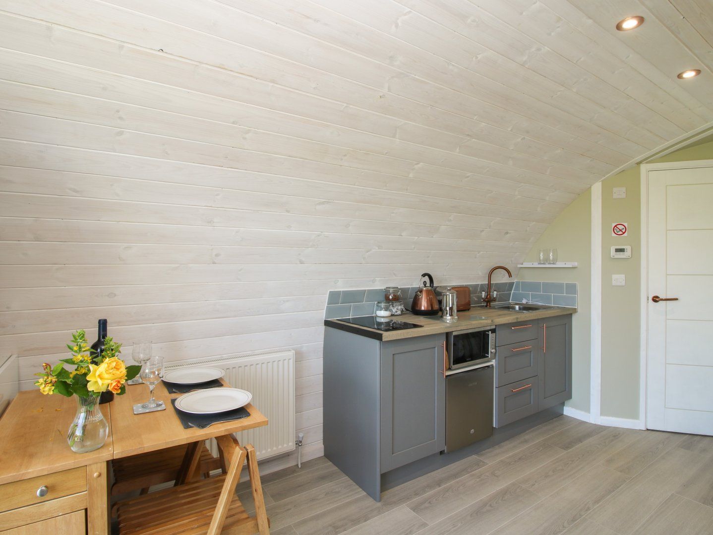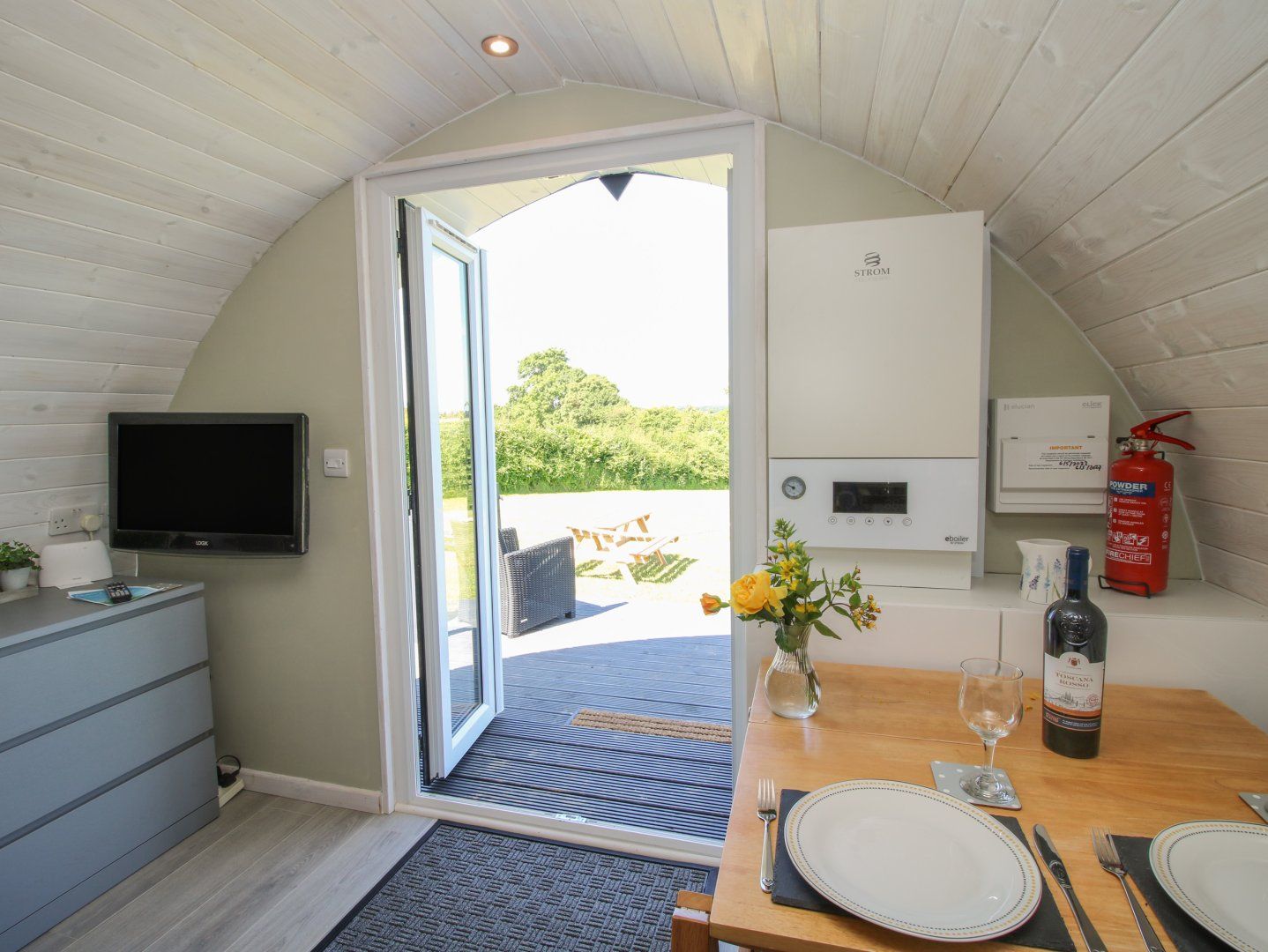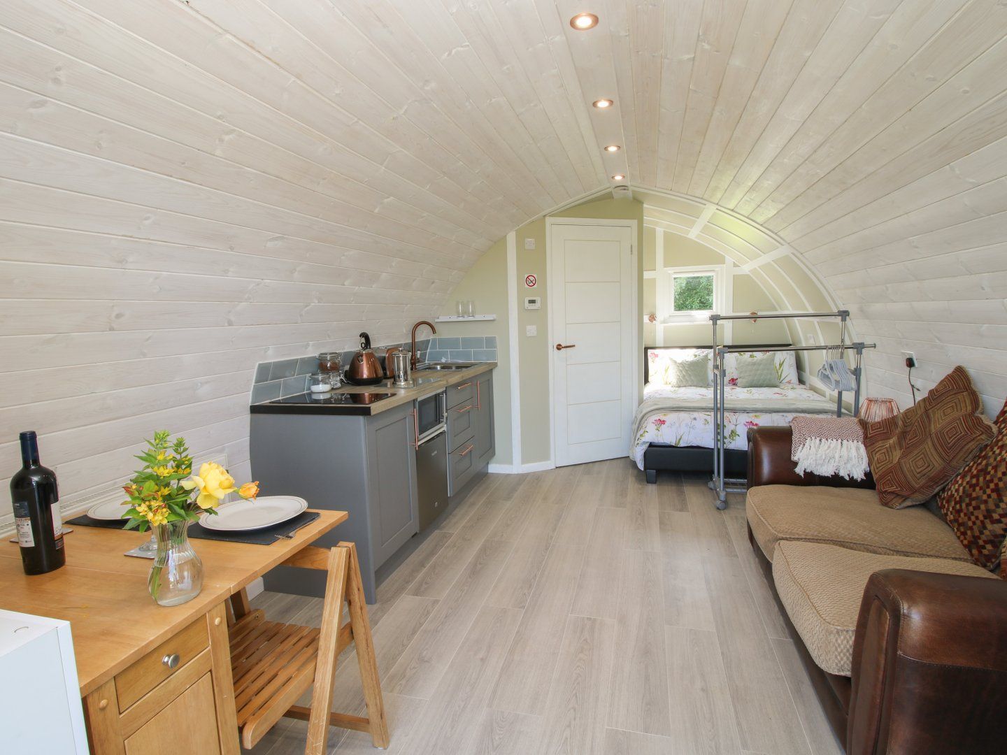 Holiday home The living areas in the property consist of an open-plan living area with a kitchen with two-ring hob, microwave, fridge with ice box, dining table for two, and a sitting area with sofa bed and TV. There is a double bed and a shower room. Outside, there is an enclosed paddock with furniture, fire pit, decking and barbecue, as well as off-road parking approx. 100 yards away. Within 1.5 miles, you will find a shop, and within 0.1 miles, a pub, and please note that this is a non-smoking property. WiFi, fuel, power, bed linen and towels are all included in the price. Two well-behaved dogs welcome. Note: The property is accessed via a rough track up a field, not suitable for cars and can become slippery in Winter, please take care. Whisk your loved one away on a romantic escape to Cherry Pod.